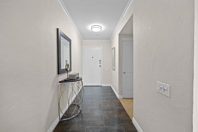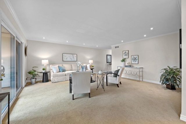 LEVEL IN! Step into a world of unparalleled elegance and vitality at Rossmoor, premier active adult oasis, where every day feels like a luxurious retreat. This meticulously customized condo is a masterpiece of sophistication, showcasing furniture-grade cabinetry that exudes timeless charm, paired with state-of-the-art Milgard dual-pane windows, flood the space with natural light and unveil panoramic vistas. Unleash your inner chef in the stunning gourmet kitchen, equipped with elite appliances designed for epicurean excellence: sizzle on the precision Electrolux induction cooktop, Fisher & Paykel refrigerator, rinse with ease using the innovative dual-drawer dishwasher, zap meals in the seamless Viking microwave drawer—and that's just the beginning of your culinary playground! Bathe in the glow of contemporary LED lighting as the open layout effortlessly transitions to your private slate-tiled covered patio, beckoning through dual sliding doors, surrounded by tranquil landscapes that soothe the soul. Seamless accessibility with zero stairs from your dedicated carport straight to the welcoming front door. Views: Ridge