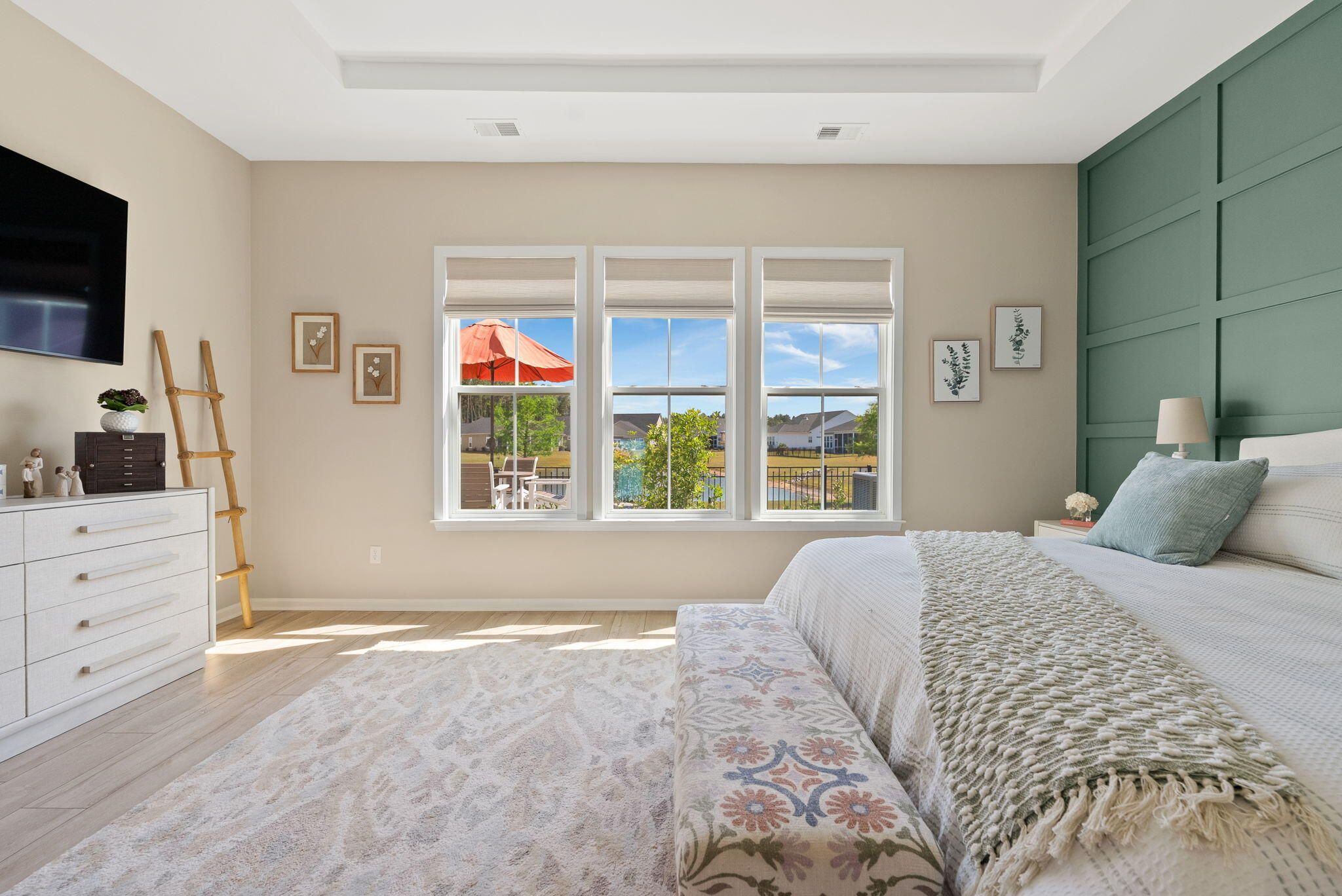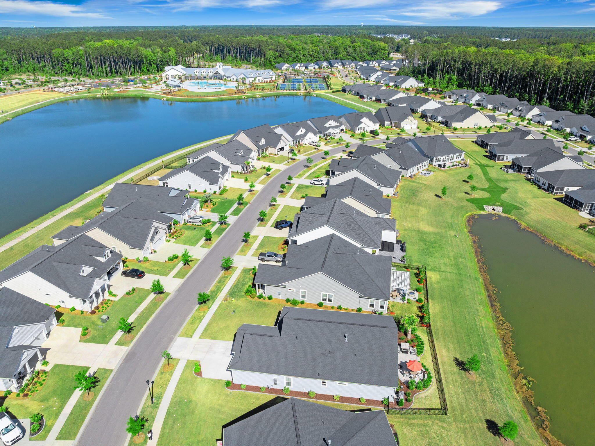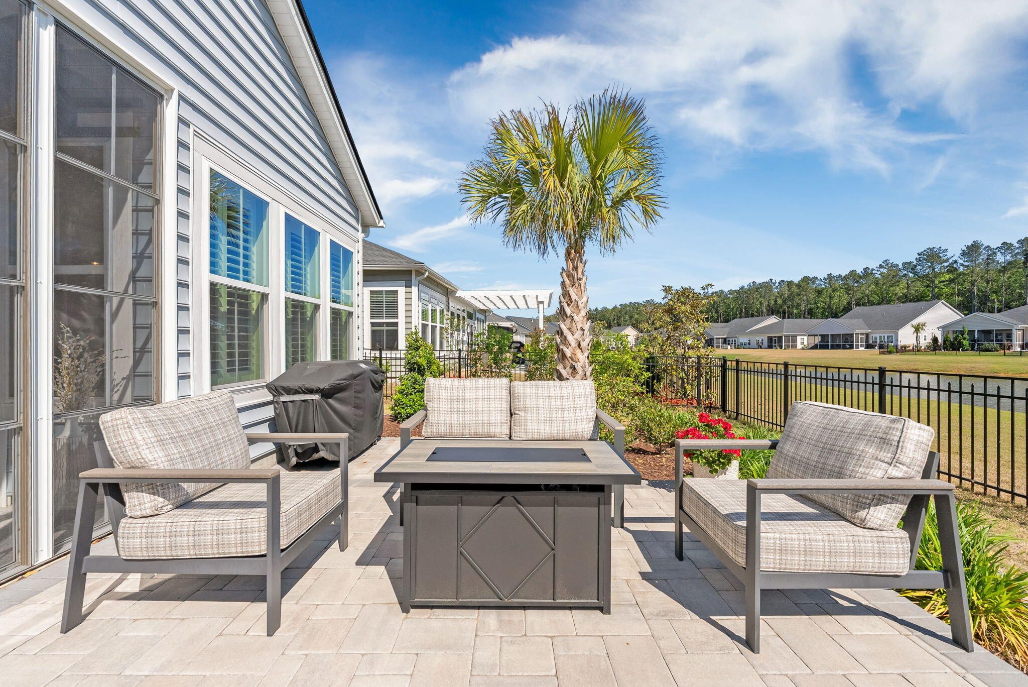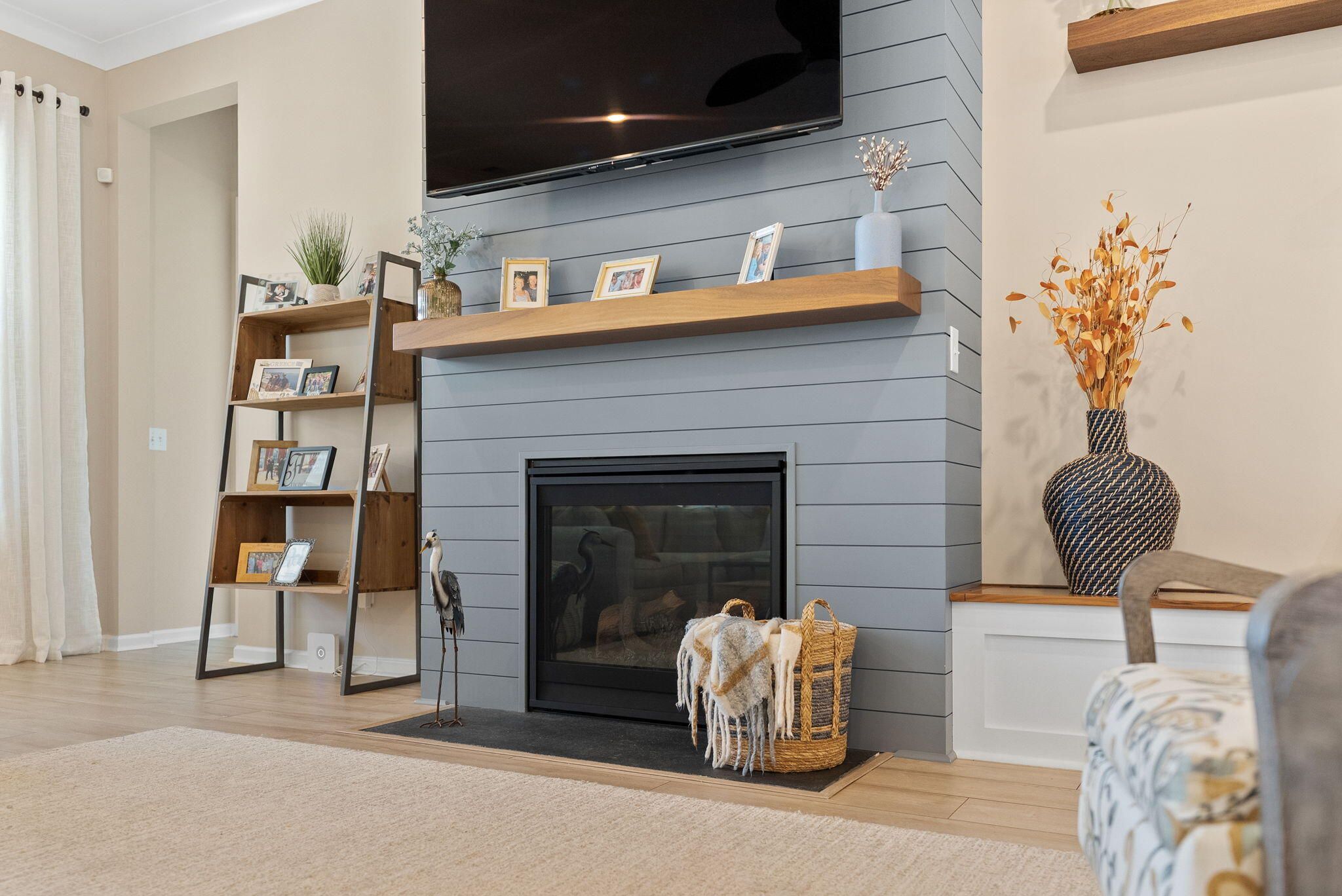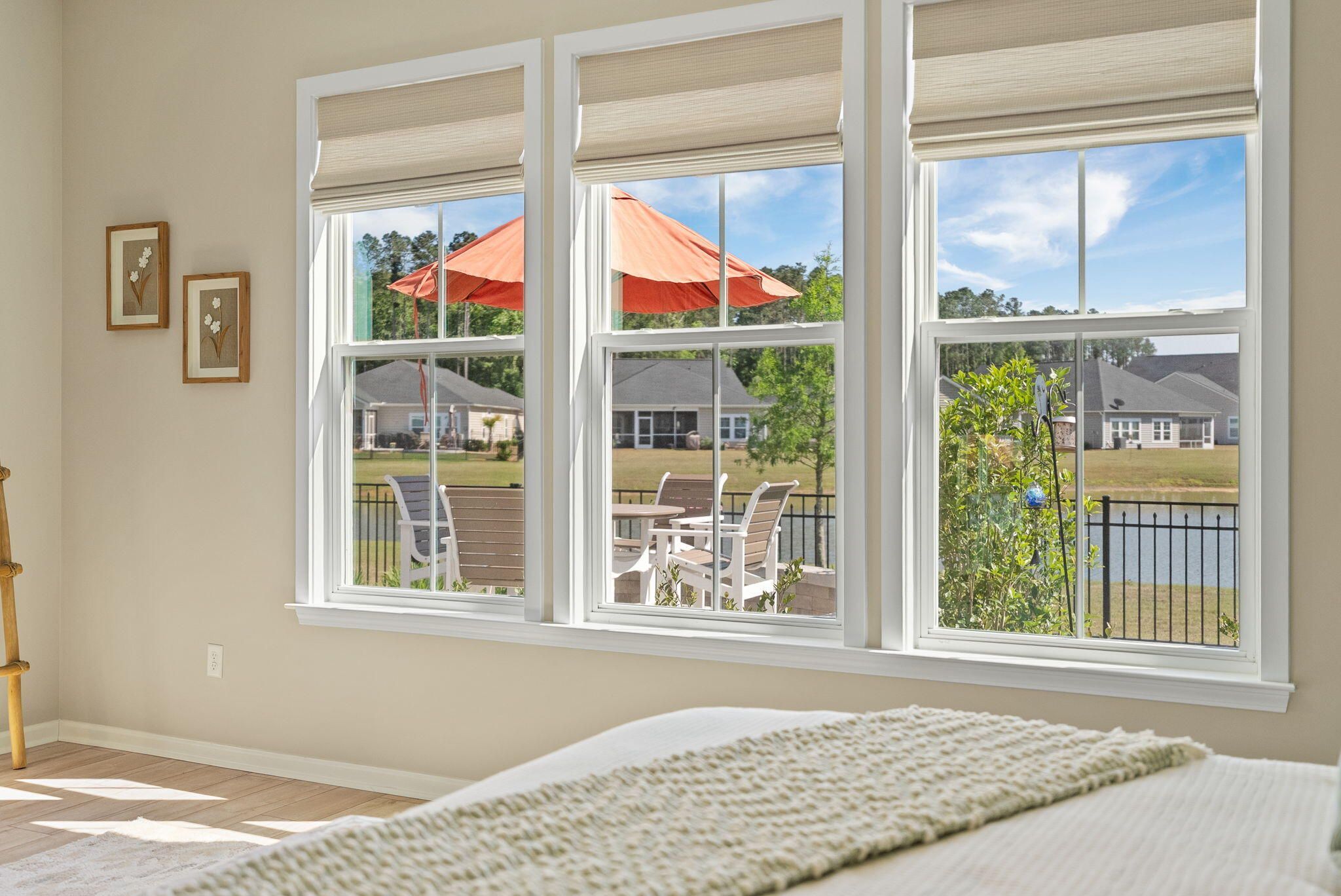 Welcome to 1129 Cane Creek Way, an immaculate and beautifully upgraded 3-bedroom, 2-bathroom home located in the sought-after Horizons active 55+ community within Summers Corner. From the moment you arrive, the spacious 3-car garage, inviting front porch, and beautifully maintained landscaping create a warm and welcoming first impression.Step inside to a bright entryway featuring custom board and batten trim that leads to a dedicated home office complete with custom French doors and a Murphy bed for extra guests. Throughout the home, elegant plantation shutters add timeless charm and sophistication while enhancing the abundance of natural light. Continue down the hall into a light-filled, open-concept living space designed for both everyday comfort and effortless entertaining.The stunning living room is filled with natural light and showcases peaceful views of your backyard oasis. Cozy up beside the beautiful shiplap fireplace with a custom mantel, creating a striking focal point for the space. Just off the fireplace is a custom built-in storage bench, perfect for added decoration, storage, and everyday functionality, adding both charm and practicality to the living space. The kitchen is truly the heart of the home, featuring crisp white cabinetry, white quartz countertops, and a classic subway tile backsplash. Stainless steel appliances, upgraded cabinet hardware, and designer gold light fixtures seamlessly tie the space together, while the large center island with matching shiplap accents makes this kitchen as functional as it is beautiful. Just off the kitchen, the spacious eat-in dining area provides additional space for gathering and everyday living. Step outside and enjoy your private Lowcountry retreat featuring a stunning four seasons room with finished flooring, vinyl windows, and a ceiling fan, creating the perfect year-round extension of your living space. Beyond the four seasons room, enjoy the extended paver patio, lush landscaping, and fenced pond lot with elegant wrought iron fencing, creating a peaceful outdoor oasis ideal for relaxing or entertaining. The primary suite offers a peaceful retreat at the end of the day with tranquil backyard views, a beautifully designed accent wall, tray ceiling, and ceiling fan. The luxurious en suite bathroom features dual vanities, a large tiled frameless glass shower with a bench seat, and direct access to the walk-in closet complete with a custom closet system. Conveniently connected to the closet, the laundry room adds thoughtful functionality to everyday living. Adding to the home's thoughtful functionality is a beautifully designed mudroom complete with extensive storage, a built-in bench, hooks, and cubby spaces perfect for baskets and everyday organization. Two additional bedrooms and a full guest bathroom provide comfortable accommodations for family, guests, or additional flex space. Residents of Horizons will enjoy access to brand-new resort-style amenities opening in Spring 2026, including pools, fitness centers, bocce ball courts, tennis and pickleball courts, fire pits, sidewalks, and open green spaces -- all within a vibrant golf cart-friendly 55+ community designed for active living and social connection.