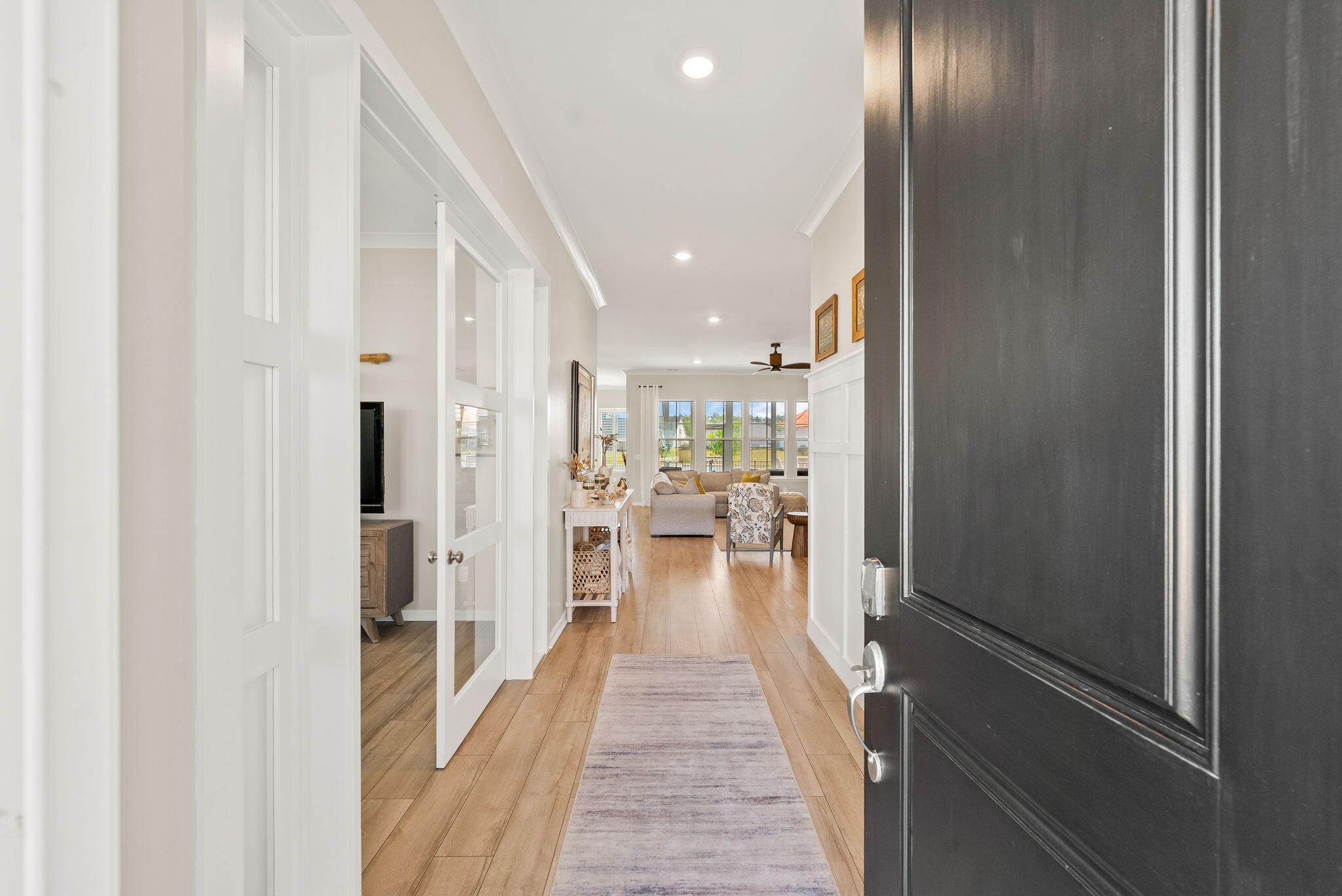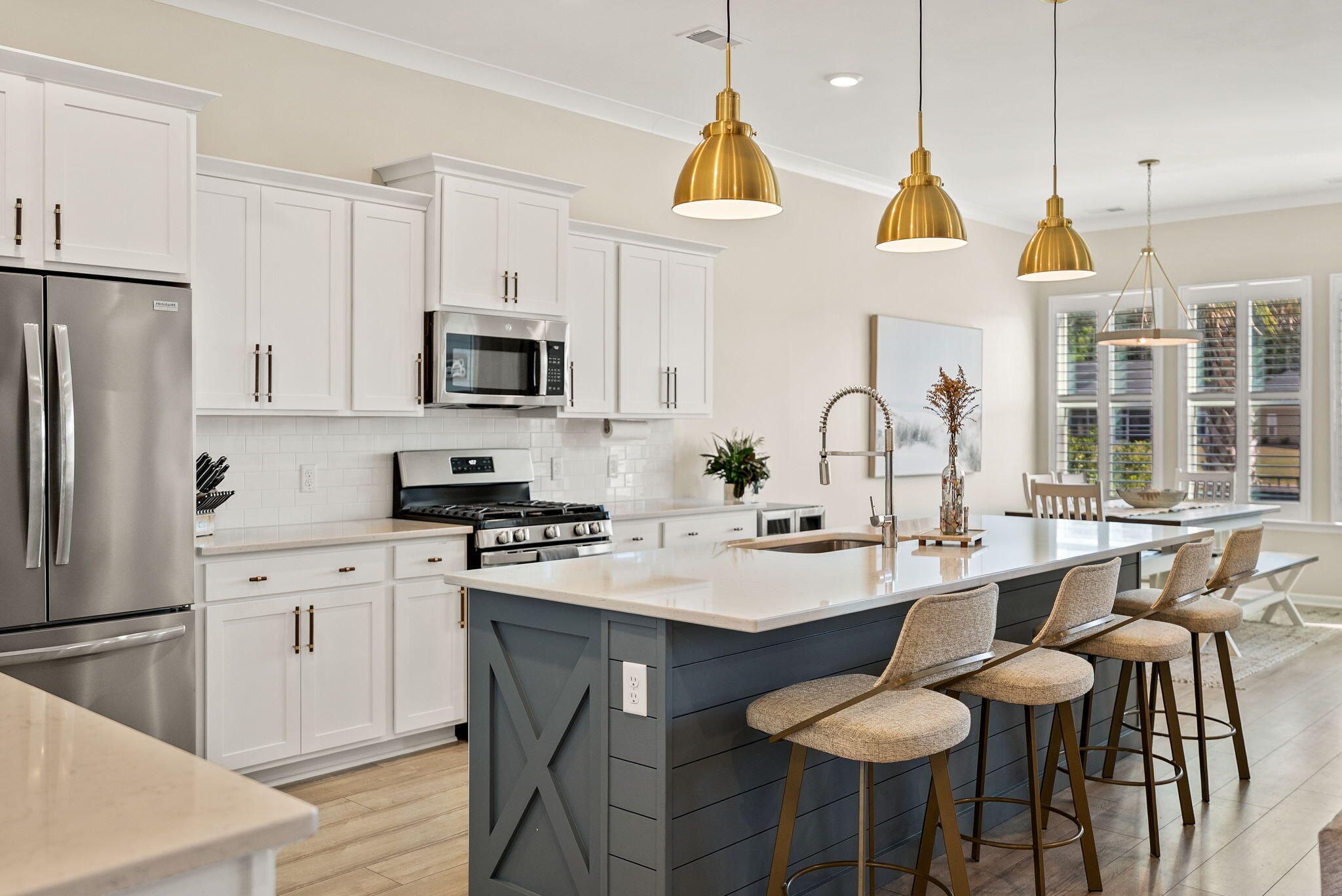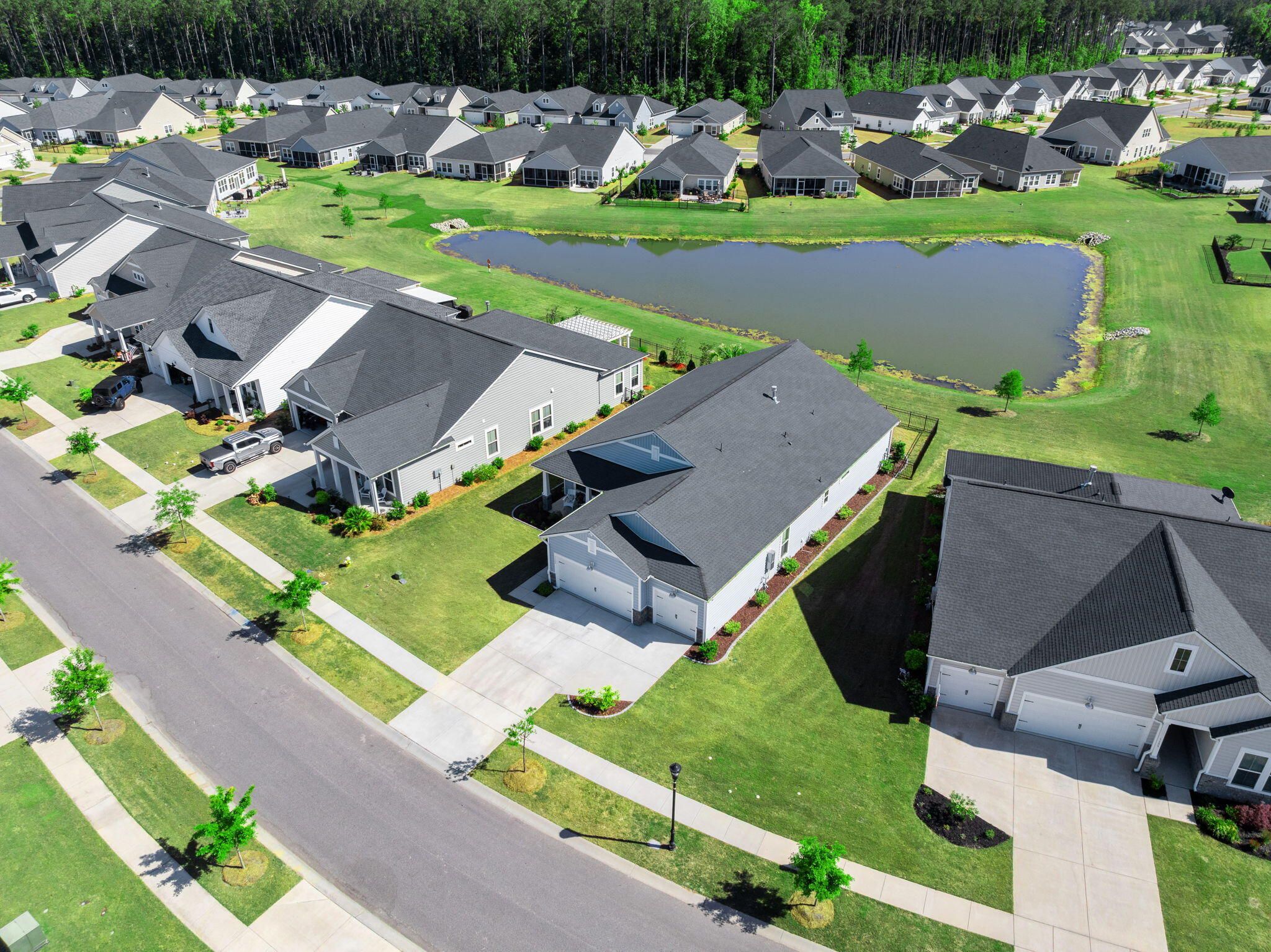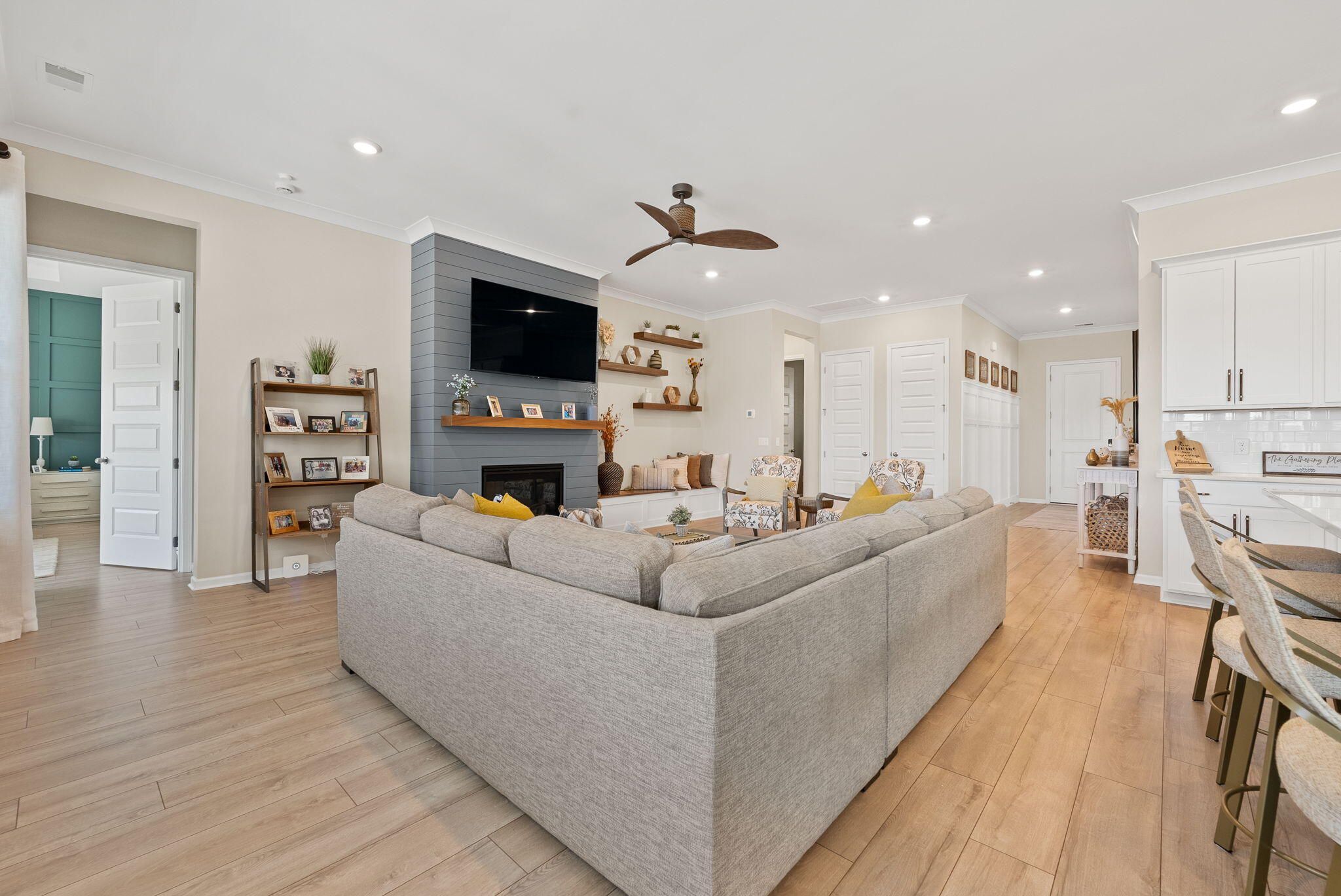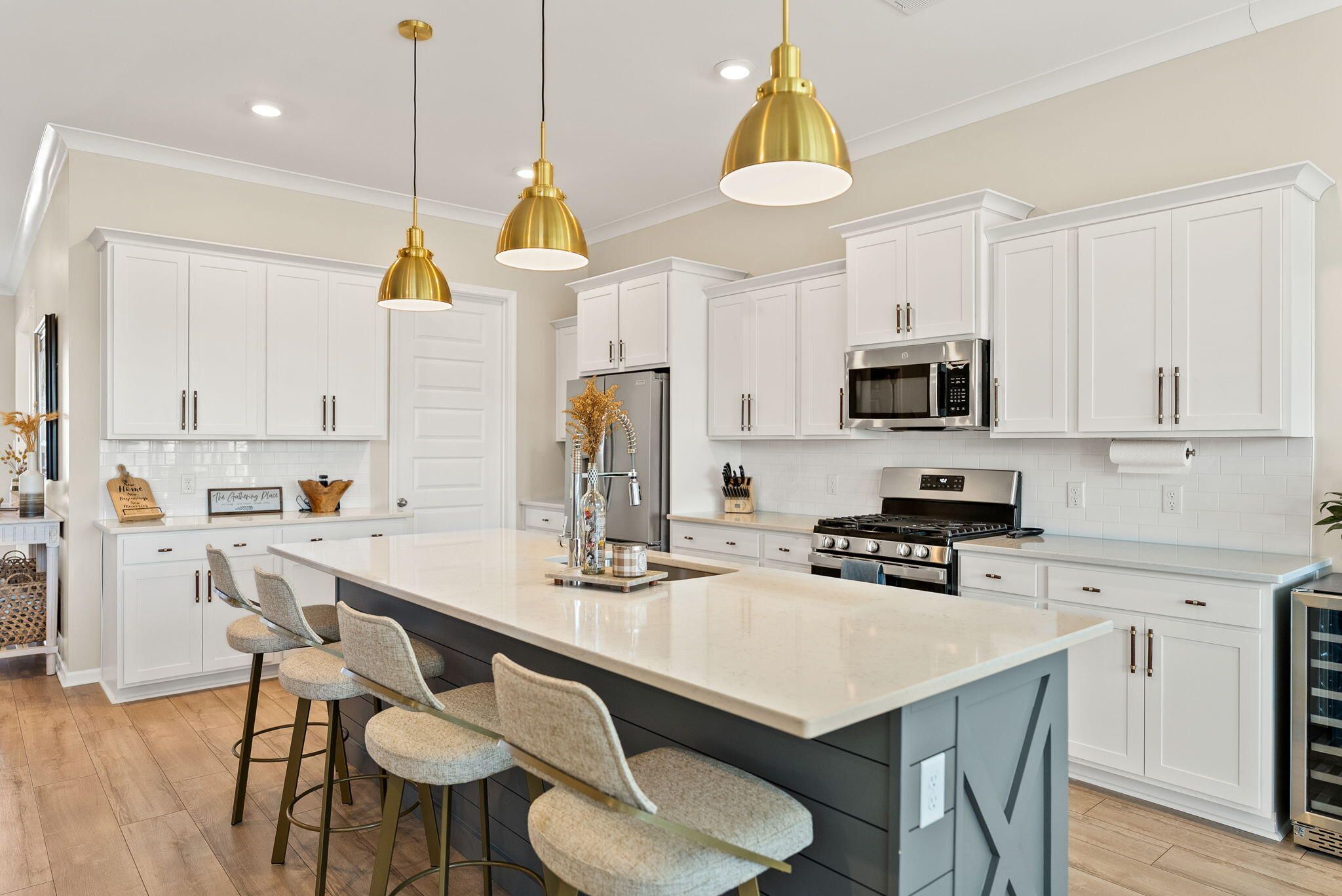 Welcome to 1129 Cane Creek Way, an immaculate and beautifully upgraded 3-bedroom, 2-bathroom home located in the sought-after Horizons active 55+ community within Summers Corner. From the moment you arrive, the spacious 3-car garage, inviting front porch, and beautifully maintained landscaping create a warm and welcoming first impression.Step inside to a bright entryway featuring custom board and batten trim that leads to a dedicated home office complete with custom French doors and a Murphy bed for extra guests. Throughout the home, elegant plantation shutters add timeless charm and sophistication while enhancing the abundance of natural light. Continue down the hall into a light-filled, open-concept living space designed for both everyday comfort and effortless entertaining.The stunning living room is filled with natural light and showcases peaceful views of your backyard oasis. Cozy up beside the beautiful shiplap fireplace with a custom mantel, creating a striking focal point for the space. Just off the fireplace is a custom built-in storage bench, perfect for added decoration, storage, and everyday functionality, adding both charm and practicality to the living space. The kitchen is truly the heart of the home, featuring crisp white cabinetry, white quartz countertops, and a classic subway tile backsplash. Stainless steel appliances, upgraded cabinet hardware, and designer gold light fixtures seamlessly tie the space together, while the large center island with matching shiplap accents makes this kitchen as functional as it is beautiful. Just off the kitchen, the spacious eat-in dining area provides additional space for gathering and everyday living. Step outside and enjoy your private Lowcountry retreat featuring a stunning four seasons room with finished flooring, vinyl windows, and a ceiling fan, creating the perfect year-round extension of your living space. Beyond the four seasons room, enjoy the extended paver patio, lush landscaping, and fenced pond lot with elegant wrought iron fencing, creating a peaceful outdoor oasis ideal for relaxing or entertaining. The primary suite offers a peaceful retreat at the end of the day with tranquil backyard views, a beautifully designed accent wall, tray ceiling, and ceiling fan. The luxurious en suite bathroom features dual vanities, a large tiled frameless glass shower with a bench seat, and direct access to the walk-in closet complete with a custom closet system. Conveniently connected to the closet, the laundry room adds thoughtful functionality to everyday living. Adding to the home's thoughtful functionality is a beautifully designed mudroom complete with extensive storage, a built-in bench, hooks, and cubby spaces perfect for baskets and everyday organization. Two additional bedrooms and a full guest bathroom provide comfortable accommodations for family, guests, or additional flex space. Residents of Horizons will enjoy access to brand-new resort-style amenities opening in Spring 2026, including pools, fitness centers, bocce ball courts, tennis and pickleball courts, fire pits, sidewalks, and open green spaces -- all within a vibrant golf cart-friendly 55+ community designed for active living and social connection.