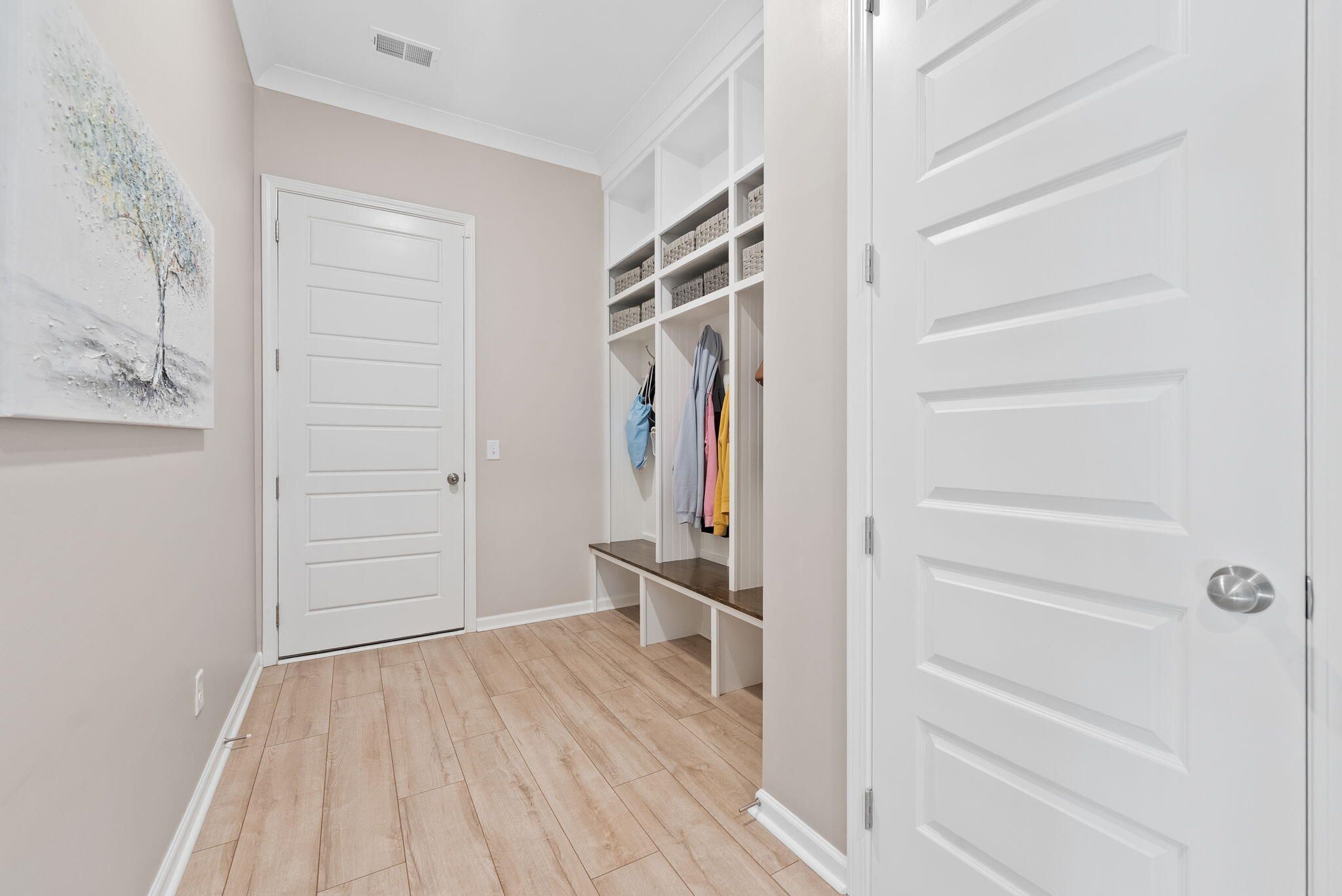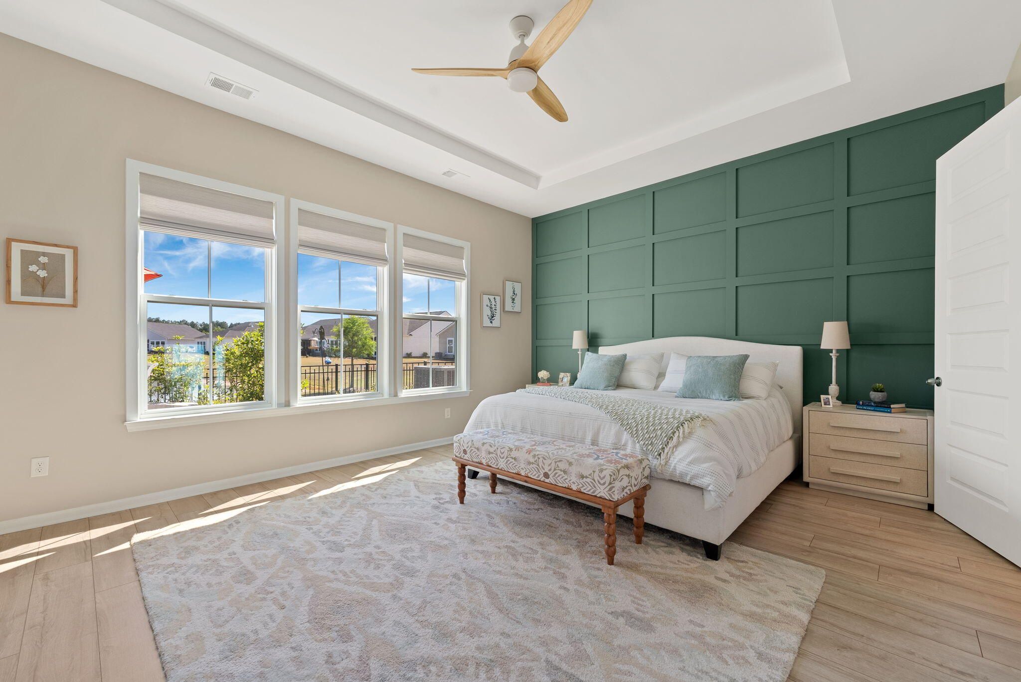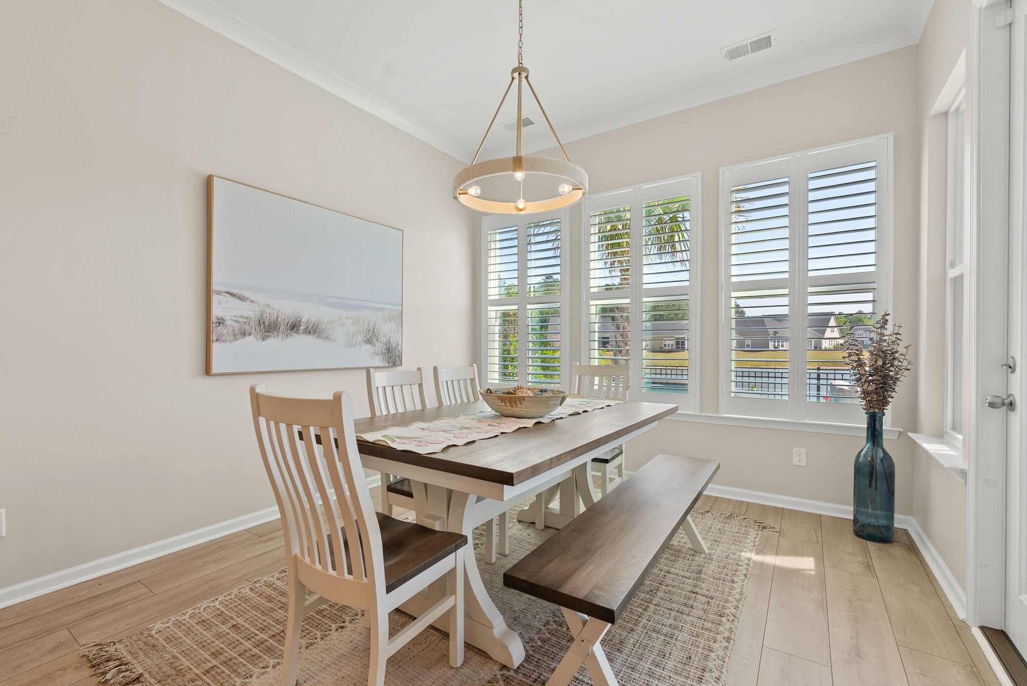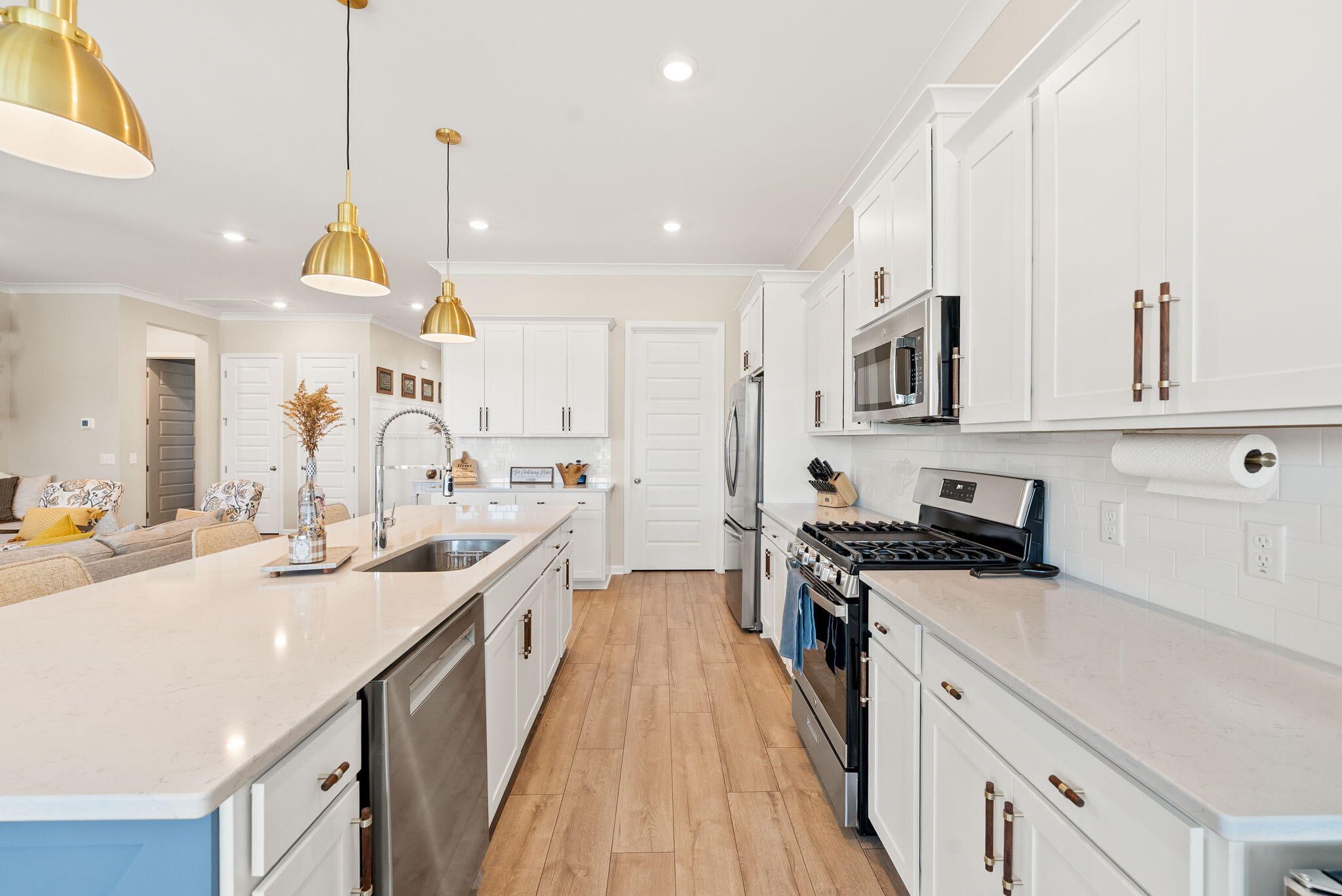 Welcome to 1129 Cane Creek Way, an immaculate and beautifully upgraded 3-bedroom, 2-bathroom home located in the sought-after Horizons active 55+ community within Summers Corner. From the moment you arrive, the spacious 3-car garage, inviting front porch, and beautifully maintained landscaping create a warm and welcoming first impression.Step inside to a bright entryway featuring custom board and batten trim that leads to a dedicated home office complete with custom French doors and a Murphy bed for extra guests. Throughout the home, elegant plantation shutters add timeless charm and sophistication while enhancing the abundance of natural light. Continue down the hall into a light-filled, open-concept living space designed for both everyday comfort and effortless entertaining.The stunning living room is filled with natural light and showcases peaceful views of your backyard oasis. Cozy up beside the beautiful shiplap fireplace with a custom mantel, creating a striking focal point for the space. Just off the fireplace is a custom built-in storage bench, perfect for added decoration, storage, and everyday functionality, adding both charm and practicality to the living space. The kitchen is truly the heart of the home, featuring crisp white cabinetry, white quartz countertops, and a classic subway tile backsplash. Stainless steel appliances, upgraded cabinet hardware, and designer gold light fixtures seamlessly tie the space together, while the large center island with matching shiplap accents makes this kitchen as functional as it is beautiful. Just off the kitchen, the spacious eat-in dining area provides additional space for gathering and everyday living. Step outside and enjoy your private Lowcountry retreat featuring a stunning four seasons room with finished flooring, vinyl windows, and a ceiling fan, creating the perfect year-round extension of your living space. Beyond the four seasons room, enjoy the extended paver patio, lush landscaping, and fenced pond lot with elegant wrought iron fencing, creating a peaceful outdoor oasis ideal for relaxing or entertaining. The primary suite offers a peaceful retreat at the end of the day with tranquil backyard views, a beautifully designed accent wall, tray ceiling, and ceiling fan. The luxurious en suite bathroom features dual vanities, a large tiled frameless glass shower with a bench seat, and direct access to the walk-in closet complete with a custom closet system. Conveniently connected to the closet, the laundry room adds thoughtful functionality to everyday living. Adding to the home's thoughtful functionality is a beautifully designed mudroom complete with extensive storage, a built-in bench, hooks, and cubby spaces perfect for baskets and everyday organization. Two additional bedrooms and a full guest bathroom provide comfortable accommodations for family, guests, or additional flex space. Residents of Horizons will enjoy access to brand-new resort-style amenities opening in Spring 2026, including pools, fitness centers, bocce ball courts, tennis and pickleball courts, fire pits, sidewalks, and open green spaces -- all within a vibrant golf cart-friendly 55+ community designed for active living and social connection.