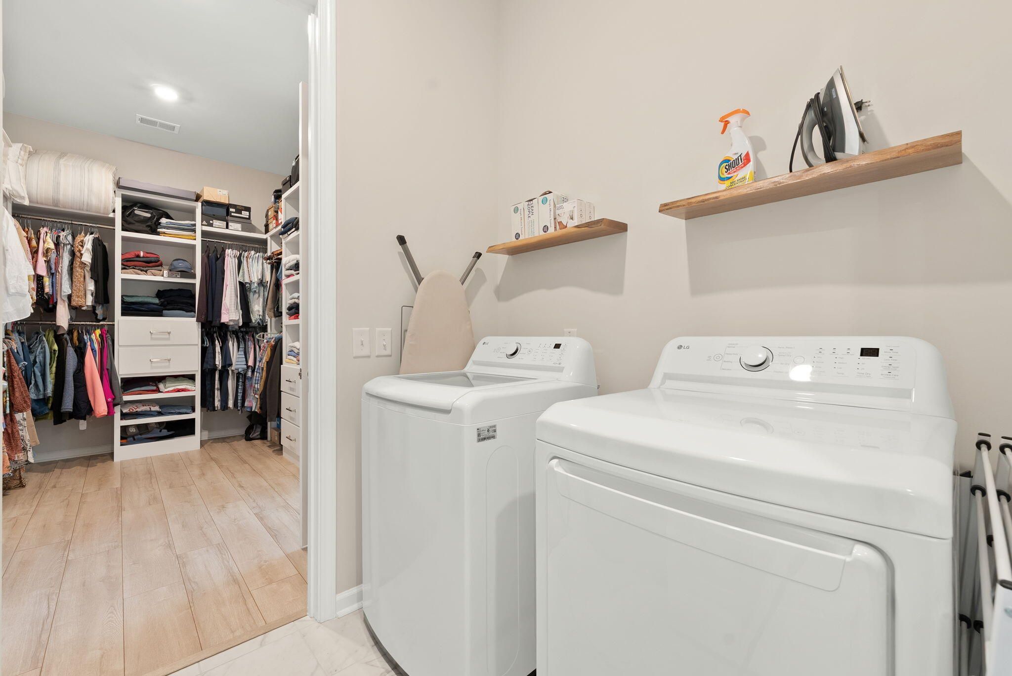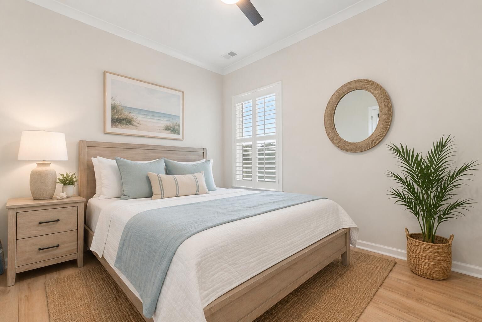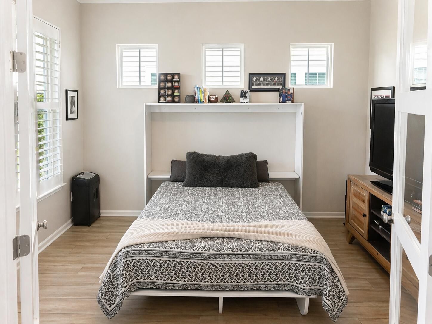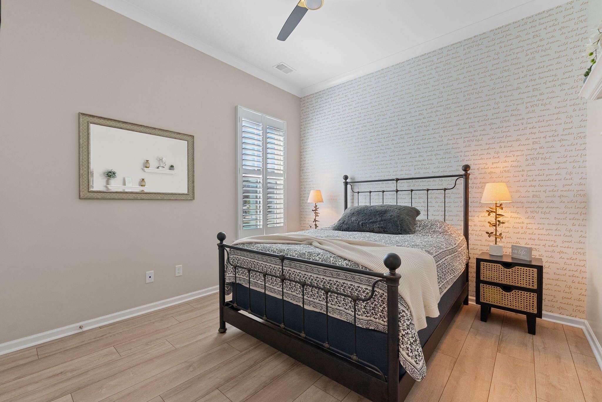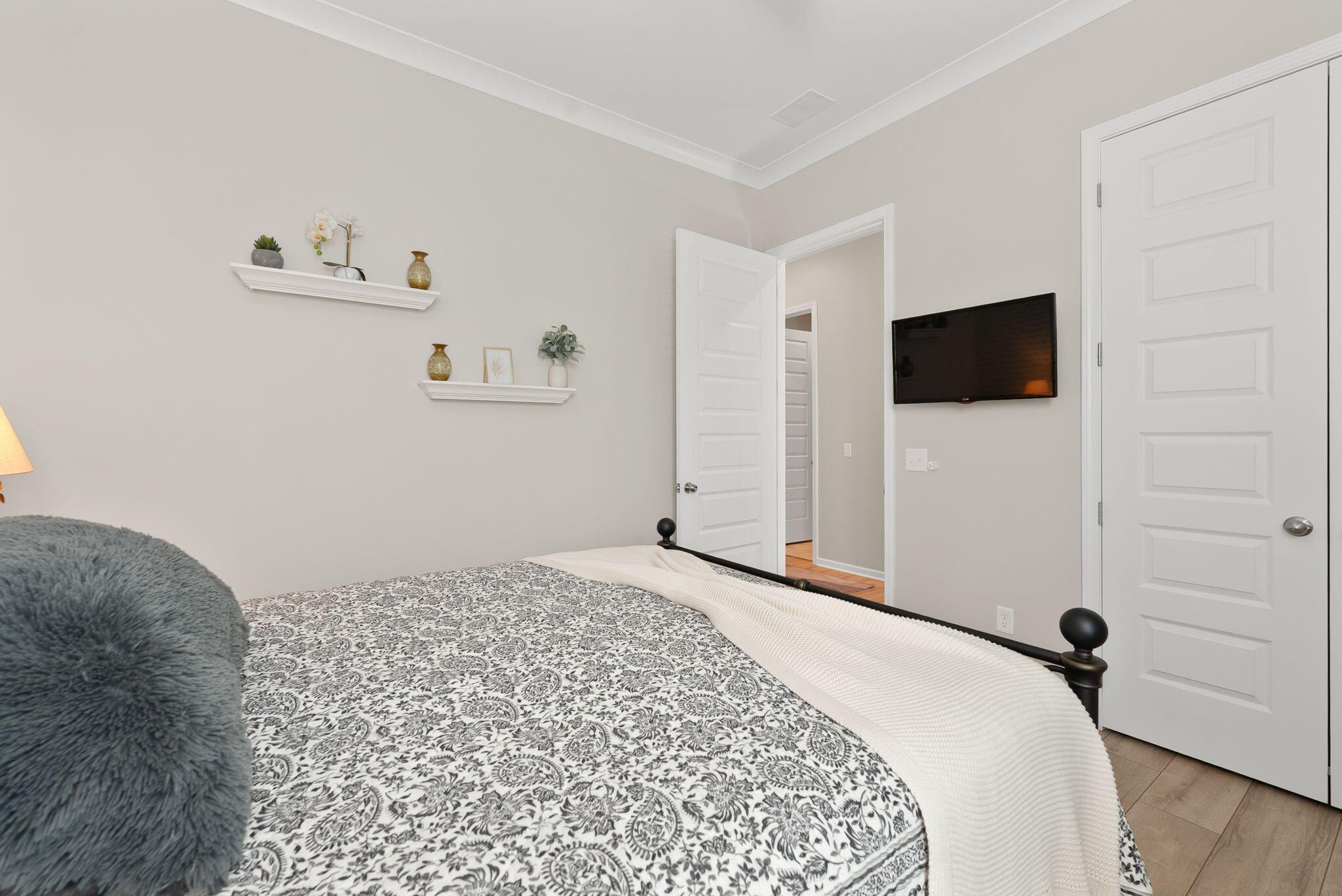 Welcome to 1129 Cane Creek Way, an immaculate and beautifully upgraded 3-bedroom, 2-bathroom home located in the sought-after Horizons active 55+ community within Summers Corner. From the moment you arrive, the spacious 3-car garage, inviting front porch, and beautifully maintained landscaping create a warm and welcoming first impression.Step inside to a bright entryway featuring custom board and batten trim that leads to a dedicated home office complete with custom French doors and a Murphy bed for extra guests. Throughout the home, elegant plantation shutters add timeless charm and sophistication while enhancing the abundance of natural light. Continue down the hall into a light-filled, open-concept living space designed for both everyday comfort and effortless entertaining.The stunning living room is filled with natural light and showcases peaceful views of your backyard oasis. Cozy up beside the beautiful shiplap fireplace with a custom mantel, creating a striking focal point for the space. Just off the fireplace is a custom built-in storage bench, perfect for added decoration, storage, and everyday functionality, adding both charm and practicality to the living space. The kitchen is truly the heart of the home, featuring crisp white cabinetry, white quartz countertops, and a classic subway tile backsplash. Stainless steel appliances, upgraded cabinet hardware, and designer gold light fixtures seamlessly tie the space together, while the large center island with matching shiplap accents makes this kitchen as functional as it is beautiful. Just off the kitchen, the spacious eat-in dining area provides additional space for gathering and everyday living. Step outside and enjoy your private Lowcountry retreat featuring a stunning four seasons room with finished flooring, vinyl windows, and a ceiling fan, creating the perfect year-round extension of your living space. Beyond the four seasons room, enjoy the extended paver patio, lush landscaping, and fenced pond lot with elegant wrought iron fencing, creating a peaceful outdoor oasis ideal for relaxing or entertaining. The primary suite offers a peaceful retreat at the end of the day with tranquil backyard views, a beautifully designed accent wall, tray ceiling, and ceiling fan. The luxurious en suite bathroom features dual vanities, a large tiled frameless glass shower with a bench seat, and direct access to the walk-in closet complete with a custom closet system. Conveniently connected to the closet, the laundry room adds thoughtful functionality to everyday living. Adding to the home's thoughtful functionality is a beautifully designed mudroom complete with extensive storage, a built-in bench, hooks, and cubby spaces perfect for baskets and everyday organization. Two additional bedrooms and a full guest bathroom provide comfortable accommodations for family, guests, or additional flex space. Residents of Horizons will enjoy access to brand-new resort-style amenities opening in Spring 2026, including pools, fitness centers, bocce ball courts, tennis and pickleball courts, fire pits, sidewalks, and open green spaces -- all within a vibrant golf cart-friendly 55+ community designed for active living and social connection.