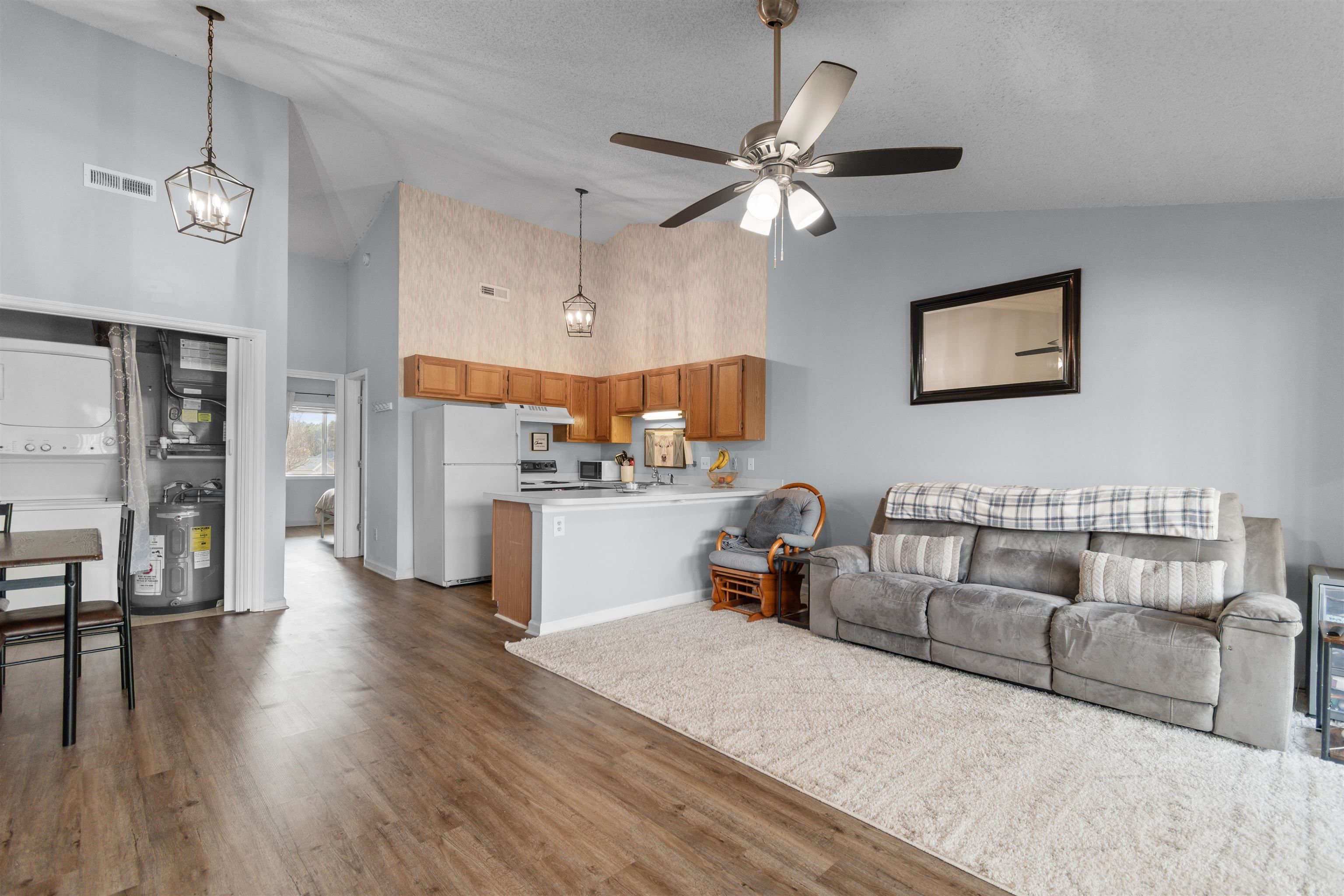 Updated, move-in ready 1-bedroom, 1-bath second-floor condo tucked away at the back of the Island Green community, offering a quiet and peaceful setting. This light-filled unit features two sliding glass doors that open to a private balcony, providing lots of natural light. Recent upgrades include LVP flooring, vaulted ceilings, a new HVAC system, a hot water heater installed in 2019, and a new dishwasher in 2025. Washer and dryer convey. Residents enjoy access to two community pools, ideal for relaxing or entertaining. This turn-key condo is perfect as a primary residence, vacation retreat, or investment opportunity.
