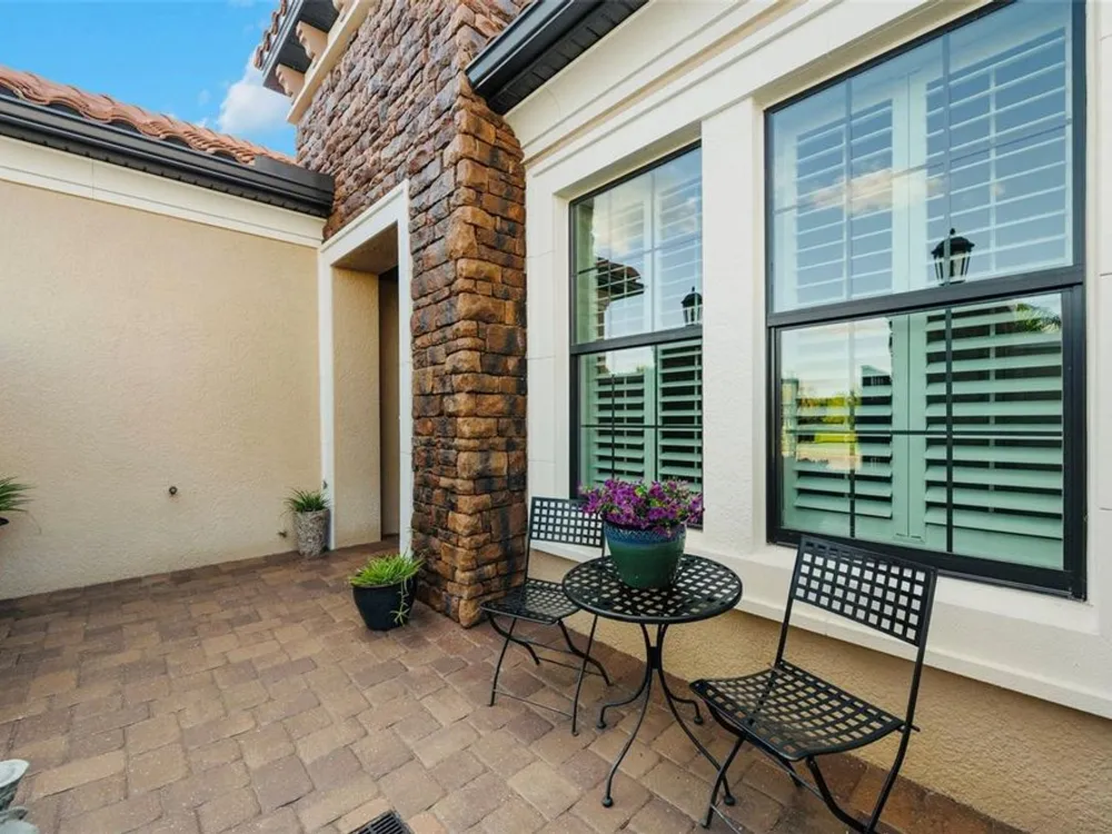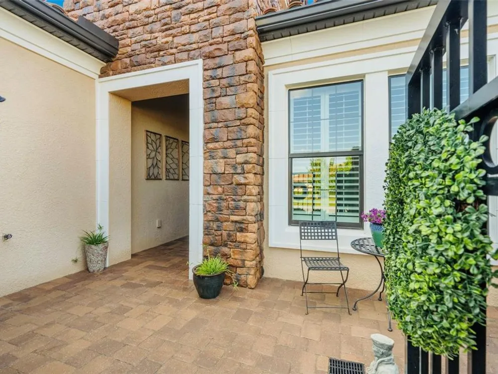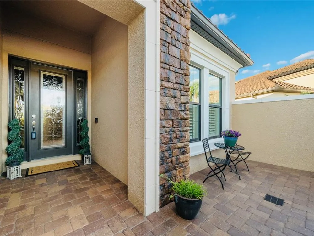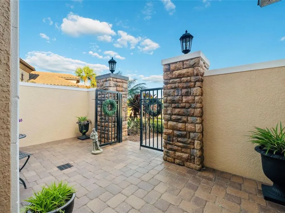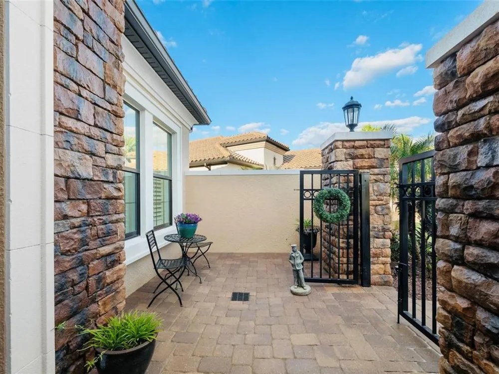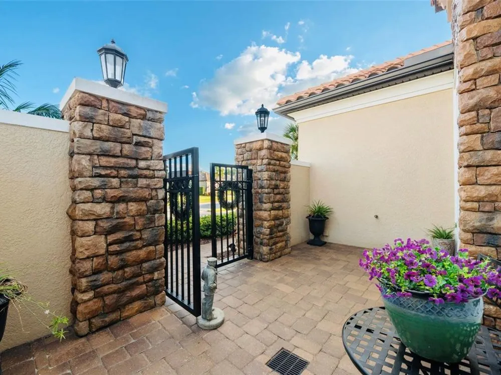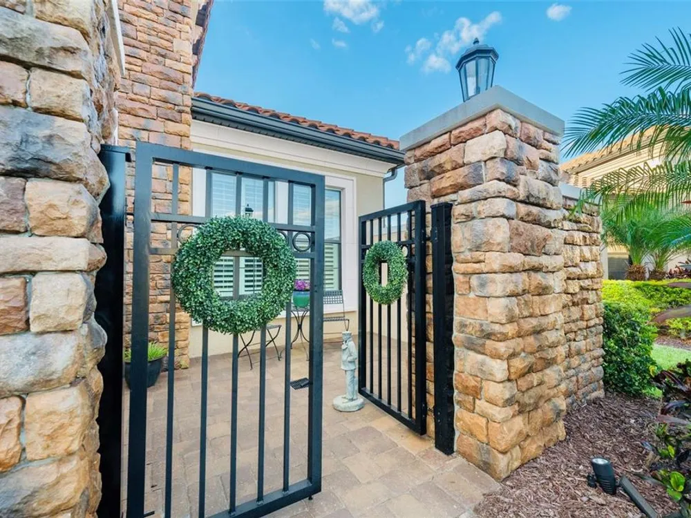 Welcome to the highly sought-after, gated, and maintenance inclusive community of ESPLANADE AT STARKEY RANCH! Offering 3 BEDROOMS + OFFICE, 3 FULL BATHS, and over 2,300 SQ FT, this home sits on a PREMIUM QUARTER-ACRE CONSERVATION LOT that provides privacy and gorgeous natural views. The exterior impresses with a TILE ROOF, STACKED STONE ACCENTS, and PRIVATE GATED COURTYARD ENTRY. Step inside through the UPGRADED GLASS FRONT DOOR to a light-filled foyer with TRAY CEILINGS. Just off the entry is the THIRD BEDROOM and FULL GUEST BATH, while the SECOND BEDROOM features an ENSUITE BATH with FRAMELESS GLASS SHOWER—perfect for guests. The OVERSIZED LAUNDRY ROOM includes a SINK, COUNTERS, and BUILT-IN STORAGE with access to the EXTRA-DEEP 2-CAR GARAGE. A DEDICATED HOME OFFICE sits at the heart of the home, followed by an OPEN-CONCEPT GREAT ROOM combining the FAMILY ROOM, DINING AREA, and GOURMET KITCHEN. HIGH CEILINGS, CROWN MOLDING, 8-FOOT DOORS, and CUSTOM MILLWORK add elegance throughout. The CHEF’S KITCHEN features 42” WHITE CABINETS, PREMIUM QUARTZ COUNTERS, HERRINGBONE GLASS BACKSPLASH, PENDANT LIGHTING, and STAINLESS APPLIANCES including a GAS RANGE. The PRIVATE PRIMARY SUITE is tucked at the rear with a BAY WINDOW EXTENSION, TRAY CEILINGS, and PEACEFUL CONSERVATION VIEWS. The LUXURY PRIMARY BATH includes DUAL QUARTZ VANITIES, LARGE WALK-IN SHOWER, and SPACIOUS CLOSET. Enjoy the FLORIDA LIFESTYLE outdoors on the EXTENDED SCREENED LANAI and FULLY FENCED BACKYARD with NO REAR NEIGHBORS. Additional features include a TANKLESS WATER HEATER, WHOLE-HOME GENERATOR, and WATER SOFTENER. Located just TWO BLOCKS from the 6,000 SQ FT ESPLANADE CLUBHOUSE with LIFESTYLE DIRECTOR, CONCIERGE SERVICES, RESORT-STYLE POOL & SPA, FITNESS CENTER, MASSAGE ROOM, TENNIS & PICKLEBALL COURTS, FIRE PIT, DOG PARK, and PLAYGROUND. RESORT LIVING AT ITS FINEST—WITHOUT THE WAIT!