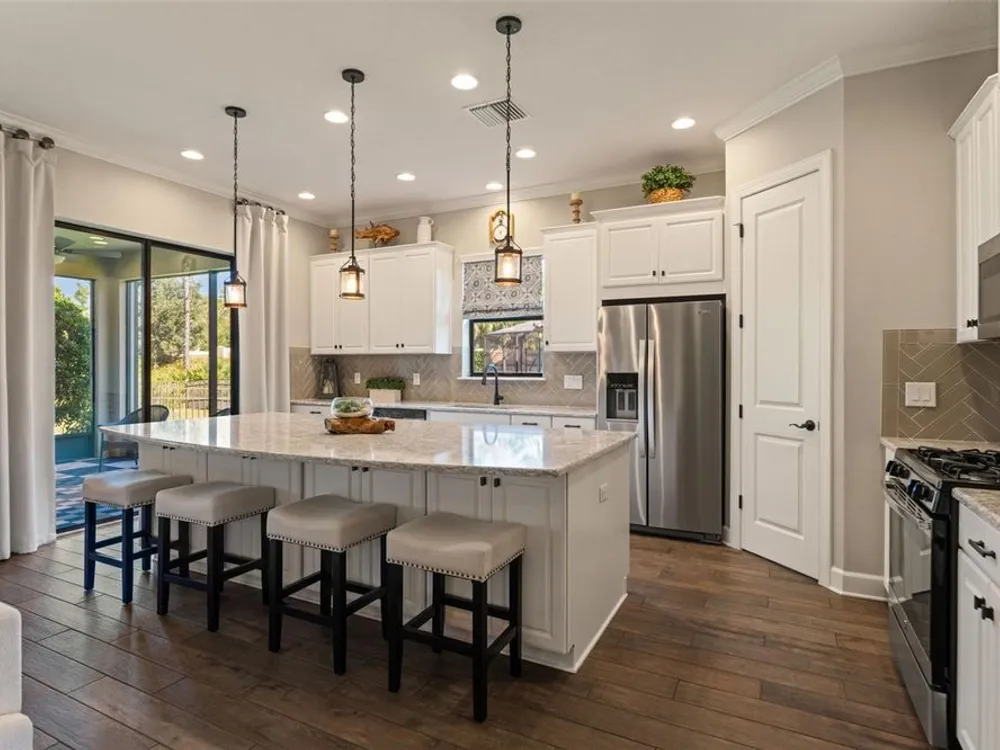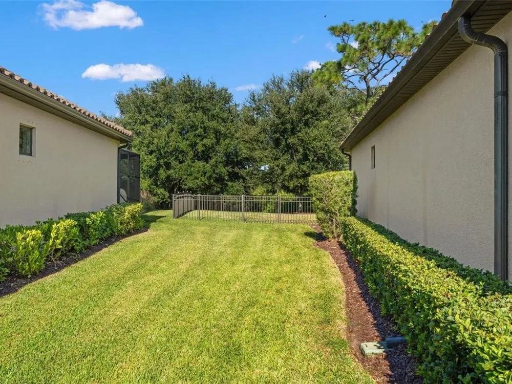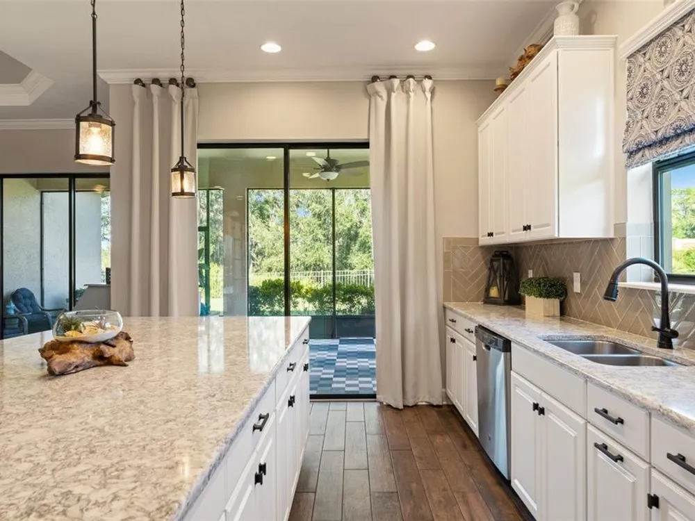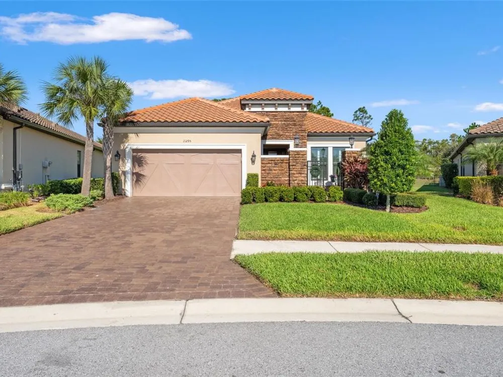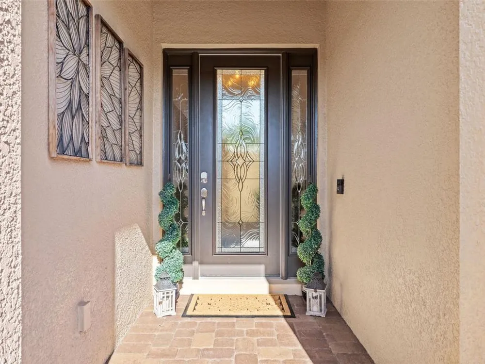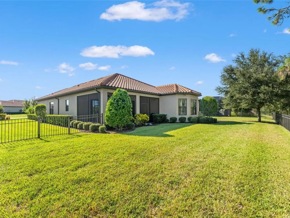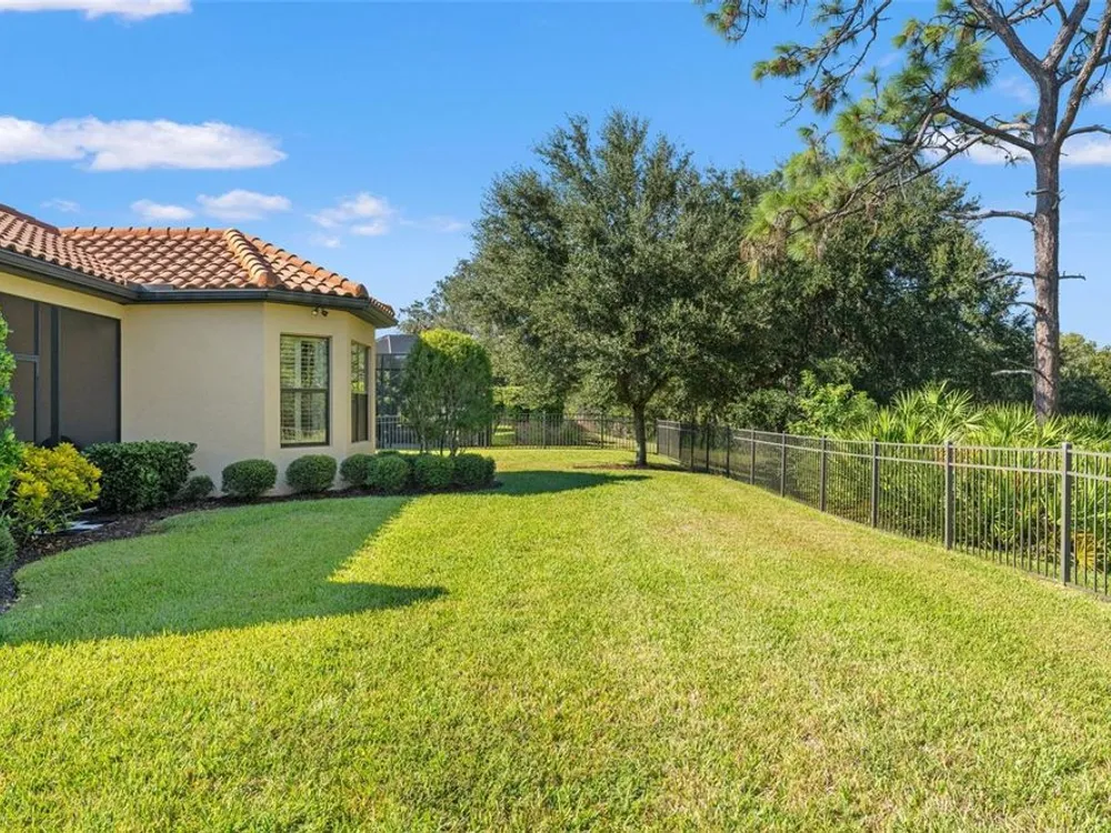 Welcome to the highly sought-after, gated, and maintenance inclusive community of ESPLANADE AT STARKEY RANCH! Offering 3 BEDROOMS + OFFICE, 3 FULL BATHS, and over 2,300 SQ FT, this home sits on a PREMIUM QUARTER-ACRE CONSERVATION LOT that provides privacy and gorgeous natural views. The exterior impresses with a TILE ROOF, STACKED STONE ACCENTS, and PRIVATE GATED COURTYARD ENTRY. Step inside through the UPGRADED GLASS FRONT DOOR to a light-filled foyer with TRAY CEILINGS. Just off the entry is the THIRD BEDROOM and FULL GUEST BATH, while the SECOND BEDROOM features an ENSUITE BATH with FRAMELESS GLASS SHOWER—perfect for guests. The OVERSIZED LAUNDRY ROOM includes a SINK, COUNTERS, and BUILT-IN STORAGE with access to the EXTRA-DEEP 2-CAR GARAGE. A DEDICATED HOME OFFICE sits at the heart of the home, followed by an OPEN-CONCEPT GREAT ROOM combining the FAMILY ROOM, DINING AREA, and GOURMET KITCHEN. HIGH CEILINGS, CROWN MOLDING, 8-FOOT DOORS, and CUSTOM MILLWORK add elegance throughout. The CHEF’S KITCHEN features 42” WHITE CABINETS, PREMIUM QUARTZ COUNTERS, HERRINGBONE GLASS BACKSPLASH, PENDANT LIGHTING, and STAINLESS APPLIANCES including a GAS RANGE. The PRIVATE PRIMARY SUITE is tucked at the rear with a BAY WINDOW EXTENSION, TRAY CEILINGS, and PEACEFUL CONSERVATION VIEWS. The LUXURY PRIMARY BATH includes DUAL QUARTZ VANITIES, LARGE WALK-IN SHOWER, and SPACIOUS CLOSET. Enjoy the FLORIDA LIFESTYLE outdoors on the EXTENDED SCREENED LANAI and FULLY FENCED BACKYARD with NO REAR NEIGHBORS. Additional features include a TANKLESS WATER HEATER, WHOLE-HOME GENERATOR, and WATER SOFTENER. Located just TWO BLOCKS from the 6,000 SQ FT ESPLANADE CLUBHOUSE with LIFESTYLE DIRECTOR, CONCIERGE SERVICES, RESORT-STYLE POOL & SPA, FITNESS CENTER, MASSAGE ROOM, TENNIS & PICKLEBALL COURTS, FIRE PIT, DOG PARK, and PLAYGROUND. RESORT LIVING AT ITS FINEST—WITHOUT THE WAIT!