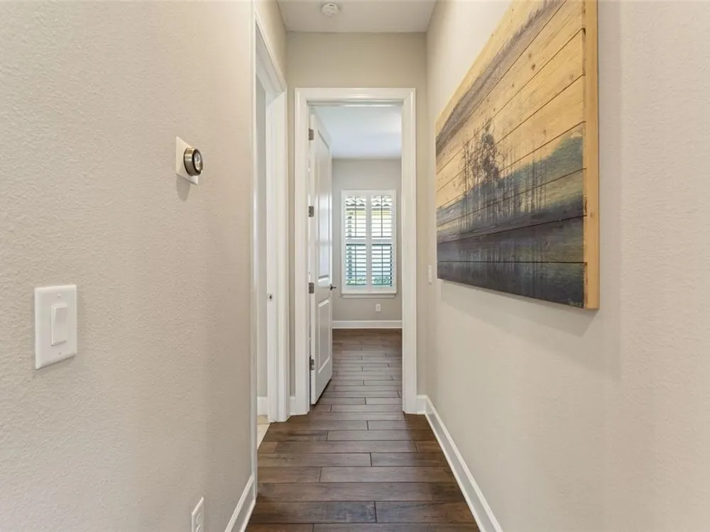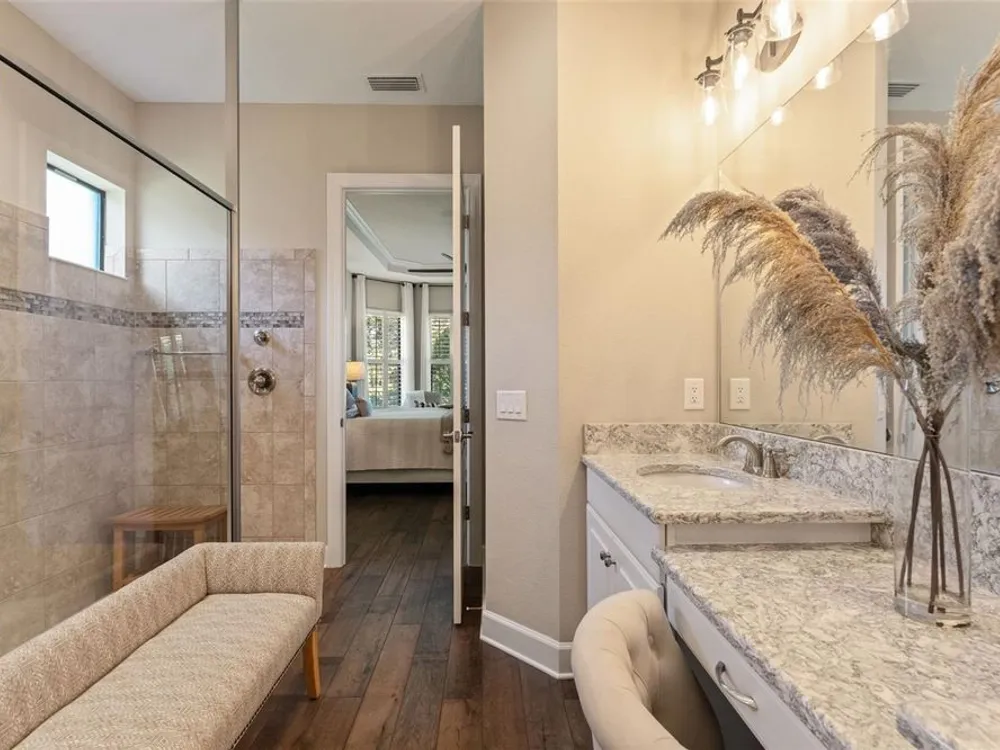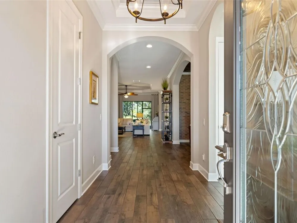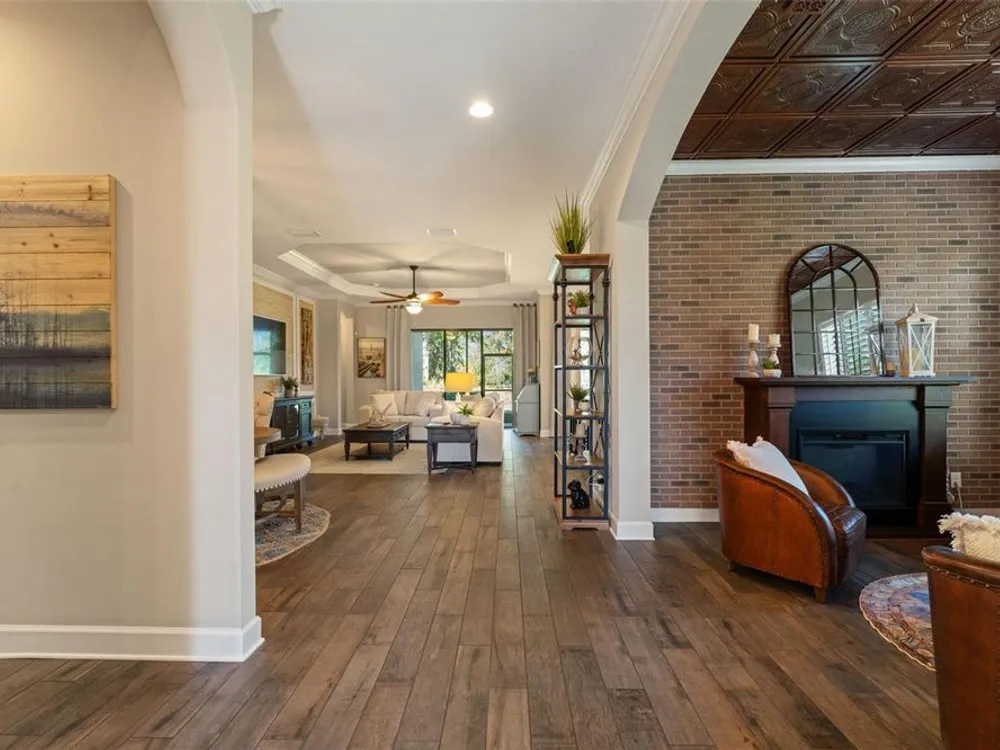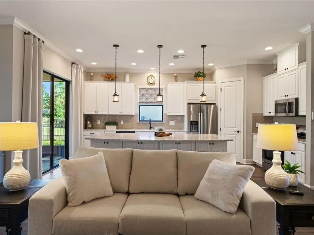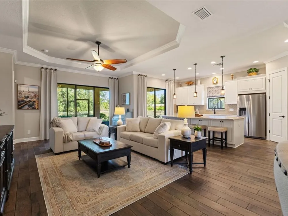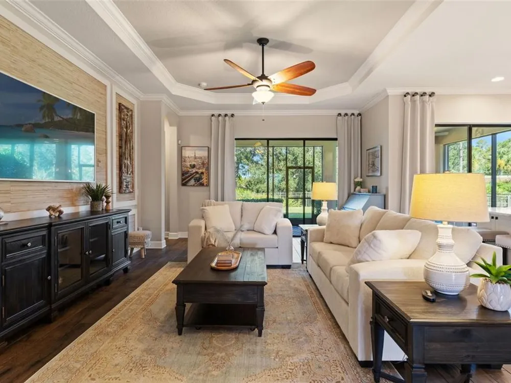 Welcome to the highly sought-after, gated, and maintenance inclusive community of ESPLANADE AT STARKEY RANCH! Offering 3 BEDROOMS + OFFICE, 3 FULL BATHS, and over 2,300 SQ FT, this home sits on a PREMIUM QUARTER-ACRE CONSERVATION LOT that provides privacy and gorgeous natural views. The exterior impresses with a TILE ROOF, STACKED STONE ACCENTS, and PRIVATE GATED COURTYARD ENTRY. Step inside through the UPGRADED GLASS FRONT DOOR to a light-filled foyer with TRAY CEILINGS. Just off the entry is the THIRD BEDROOM and FULL GUEST BATH, while the SECOND BEDROOM features an ENSUITE BATH with FRAMELESS GLASS SHOWER—perfect for guests. The OVERSIZED LAUNDRY ROOM includes a SINK, COUNTERS, and BUILT-IN STORAGE with access to the EXTRA-DEEP 2-CAR GARAGE. A DEDICATED HOME OFFICE sits at the heart of the home, followed by an OPEN-CONCEPT GREAT ROOM combining the FAMILY ROOM, DINING AREA, and GOURMET KITCHEN. HIGH CEILINGS, CROWN MOLDING, 8-FOOT DOORS, and CUSTOM MILLWORK add elegance throughout. The CHEF’S KITCHEN features 42” WHITE CABINETS, PREMIUM QUARTZ COUNTERS, HERRINGBONE GLASS BACKSPLASH, PENDANT LIGHTING, and STAINLESS APPLIANCES including a GAS RANGE. The PRIVATE PRIMARY SUITE is tucked at the rear with a BAY WINDOW EXTENSION, TRAY CEILINGS, and PEACEFUL CONSERVATION VIEWS. The LUXURY PRIMARY BATH includes DUAL QUARTZ VANITIES, LARGE WALK-IN SHOWER, and SPACIOUS CLOSET. Enjoy the FLORIDA LIFESTYLE outdoors on the EXTENDED SCREENED LANAI and FULLY FENCED BACKYARD with NO REAR NEIGHBORS. Additional features include a TANKLESS WATER HEATER, WHOLE-HOME GENERATOR, and WATER SOFTENER. Located just TWO BLOCKS from the 6,000 SQ FT ESPLANADE CLUBHOUSE with LIFESTYLE DIRECTOR, CONCIERGE SERVICES, RESORT-STYLE POOL & SPA, FITNESS CENTER, MASSAGE ROOM, TENNIS & PICKLEBALL COURTS, FIRE PIT, DOG PARK, and PLAYGROUND. RESORT LIVING AT ITS FINEST—WITHOUT THE WAIT!