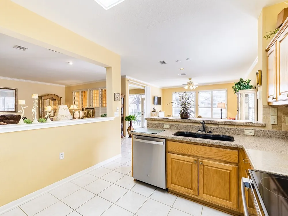 - Breakfast Bar, Built-in Features, Ceiling Fan(s), Crown Molding, Entrance Foyer, French Door(s)/Atrium Door(s), In-Law Floorplan, Multiple Living Areas, Main Level Primary, Open Floorplan, Quartz Countertops, Recessed Lighting, Storage, Walk-In Closet(s)