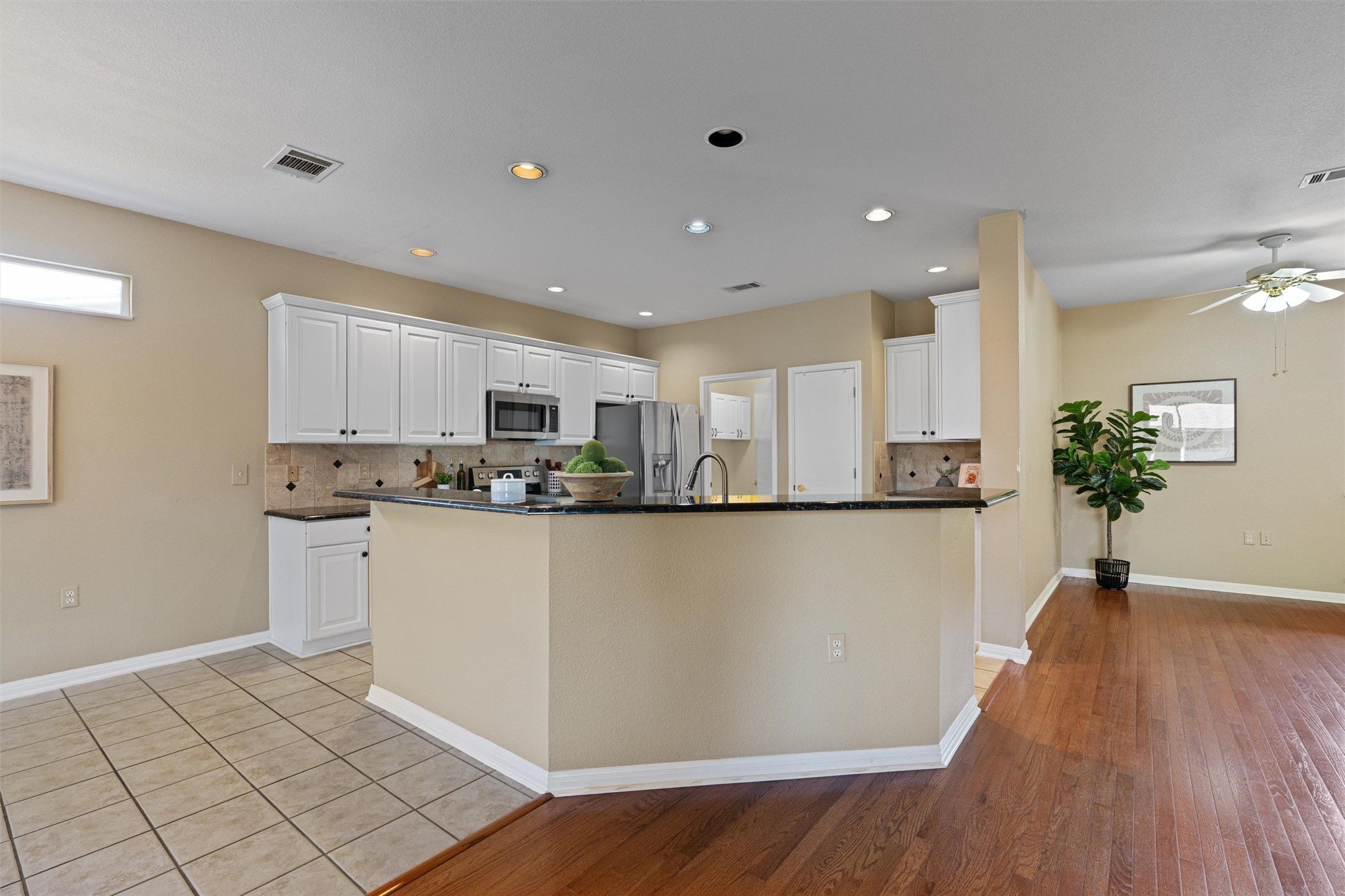 Welcome to your next chapter in this beautifully maintained home nestled within the highly sought-after 55+ community of Sun City. From the moment you arrive, the inviting curb appeal stands out with its mature tree and thoughtfully designed, low-maintenance landscaping. Inside, the well-designed “Long” floor plan from Del Webb showcases large picture windows that fill the home with natural light, rich wood flooring throughout the main living areas, and tile in the entry, kitchen, and wet spaces—no carpet anywhere for easy maintenance. The spacious living room flows effortlessly into the dining area and an inviting kitchen featuring striking black granite countertops, classic white cabinetry with convenient pullout drawers, a stylish tile backsplash, breakfast bar, stainless steel appliances, and a pantry—perfect for both everyday living and entertaining. A flex space at the front of the home offers versatility to suit your lifestyle. The generously sized primary suite is a peaceful retreat, complete with a charming bay window and an ensuite bath featuring dual vanities, a walk-in shower with seating, and a spacious walk-in closet. An additional bedroom and nearby full bath provide comfort and flexibility for guests or hobbies. Step outside to the screened-in patio—ideal for enjoying your morning coffee or unwinding in the evenings without the worry of pests—before continuing onto the expansive deck where you can take in the beautifully landscaped backyard and relax under the shade of mature trees. Living in Sun City means more than just owning a home—it’s embracing a vibrant, active lifestyle with access to three championship golf courses, two fitness centers, eight swimming pools, and courts for tennis, pickleball, and bocce. With over 145 social clubs and convenient proximity to top-tier medical facilities, shopping, and major highways like TX-195 and I-35, this is the lifestyle you’ve been waiting for.