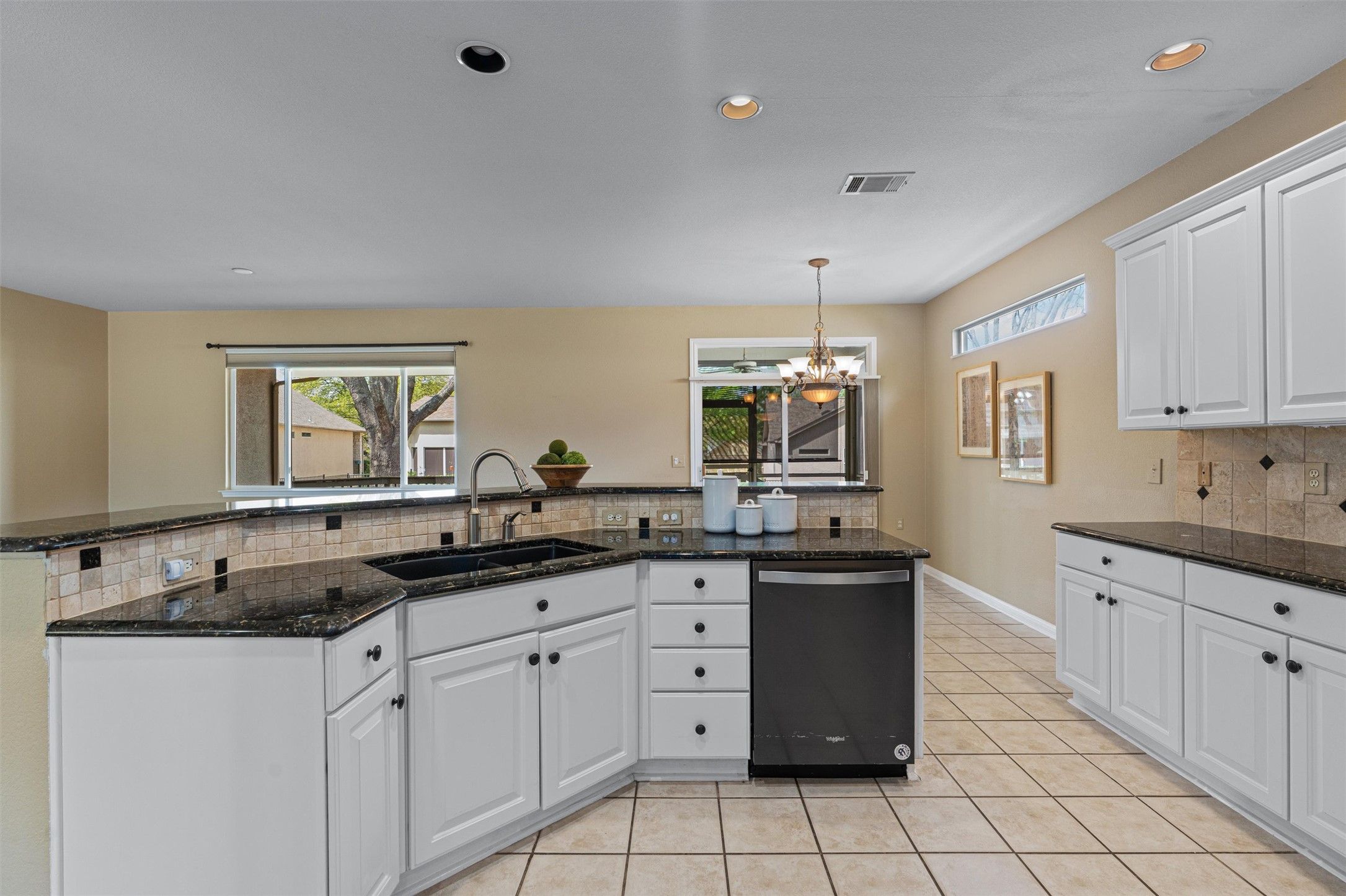 - Breakfast Bar, Built-in Features, Ceiling Fan(s), Chandelier, Double Vanity, Granite Counters, Kitchen Island, Multiple Living Areas, Main Level Primary, NoInteriorSteps, Open Floorplan, Pantry, Recessed Lighting, Study, Walk-In Closet(s)