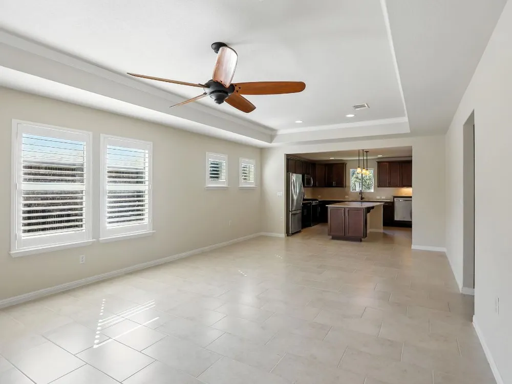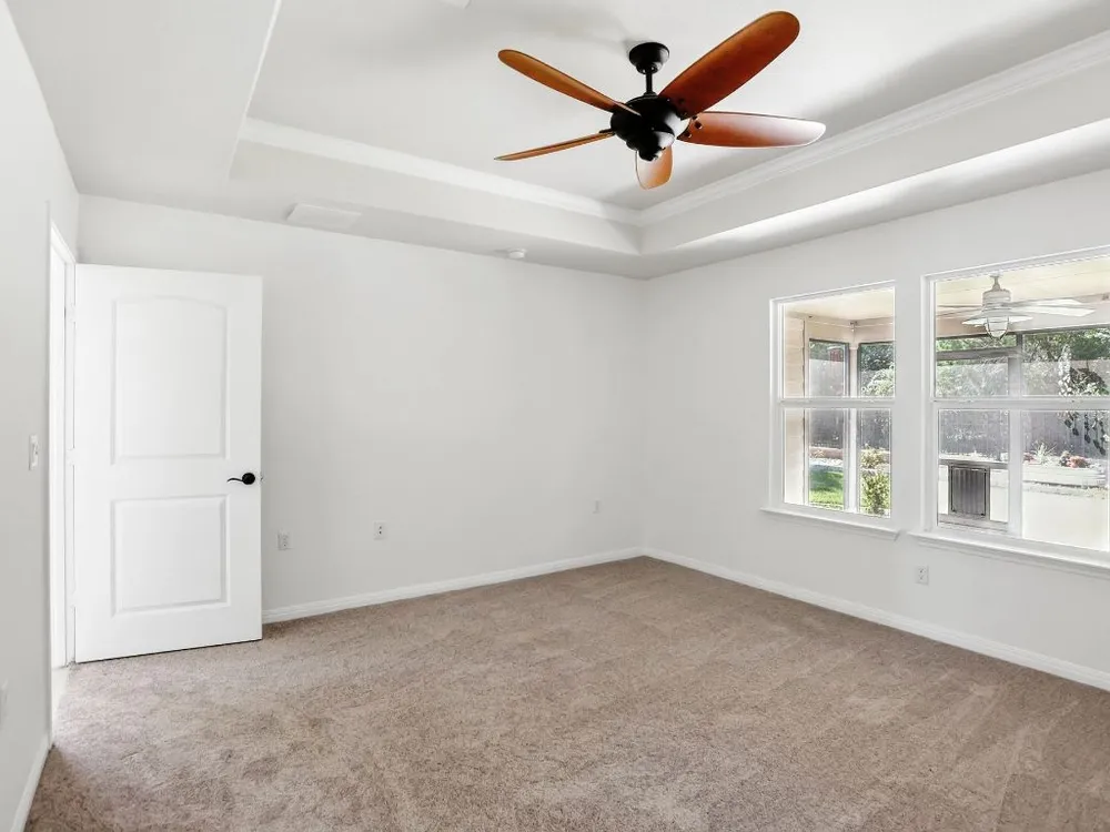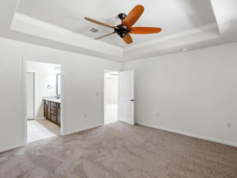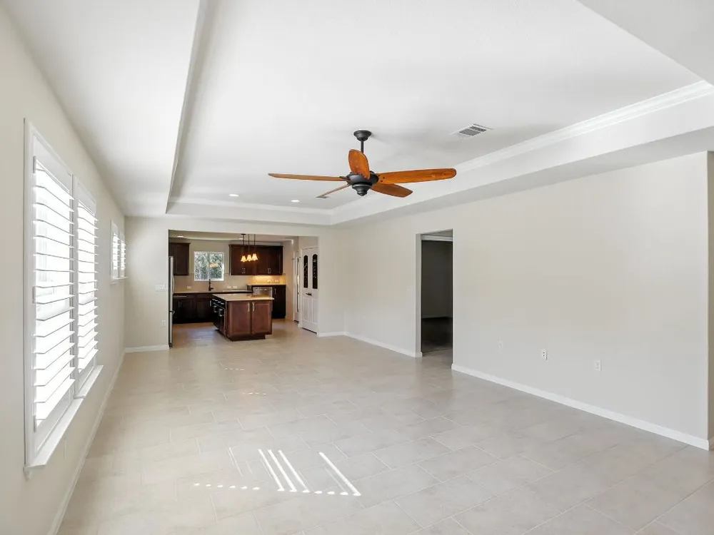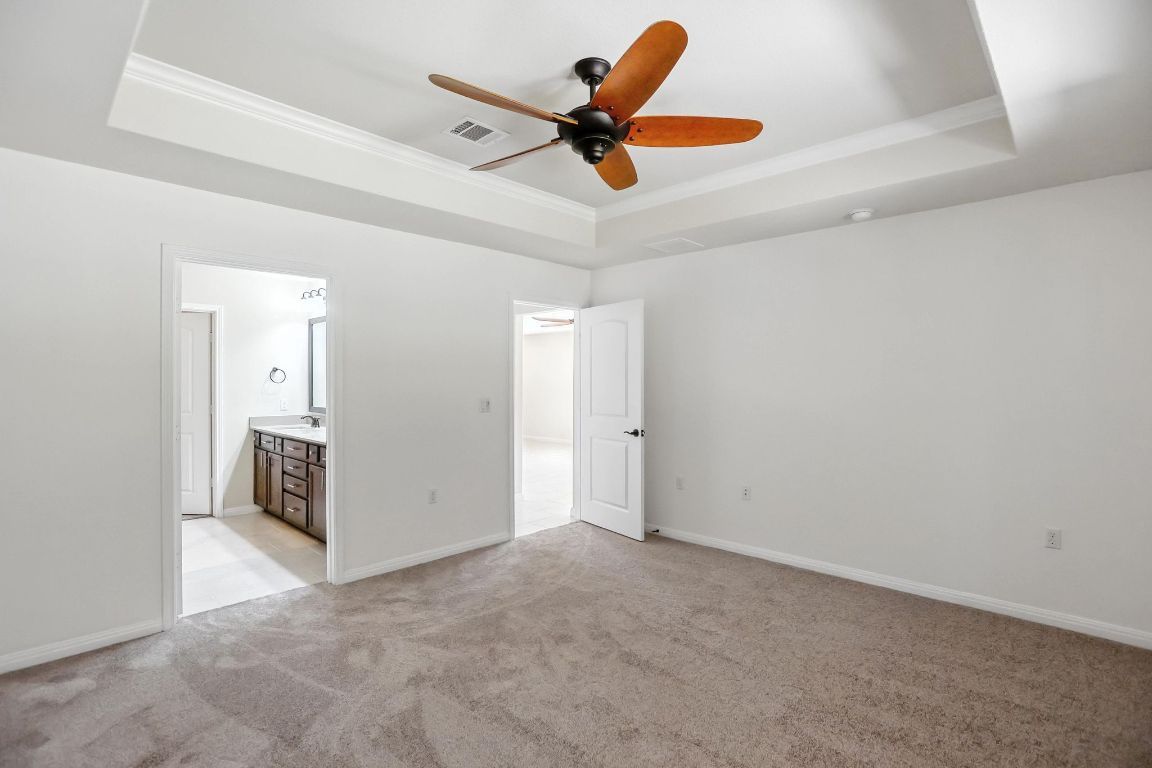 - Tray Ceiling(s), Ceiling Fan(s), Crown Molding, Double Vanity, Kitchen Island, Main Level Primary, NoInteriorSteps, Open Floorplan, Pantry, Recessed Lighting, Storage, Walk-In Closet(s)
