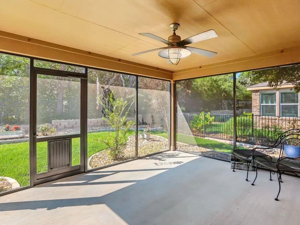 Welcome to this Well Maintained home located in the heart of Sun City Georgetown, one of Central Texas’ most desirable active adult communities. This charming residence offers peaceful greenbelt views and is situated just a few miles from scenic Legacy Lake, walking trails, and the wide array of amenities Sun City is known for. Recent updates include fresh interior paint completed in July 2025 and carpet installed in August 2025, giving the home a clean, modern feel from the moment you walk in. The kitchen is equipped with quality Whirlpool, perfect for preparing meals. A screened in porch with a ceiling fan provides protection and comfort while enjoying the outdoors. All bedrooms and living room come equipped with ceiling fans for added cooling, while pendant lighting over the kitchen island add ambiance. The primary bedroom and living room both have tray ceilings for a more open feel. This home is just minutes from Legacy Lake and close to golf courses, fitness centers, pools, pickleball courts, walking trails, and countless clubs and social events designed to support an active, connected lifestyle.