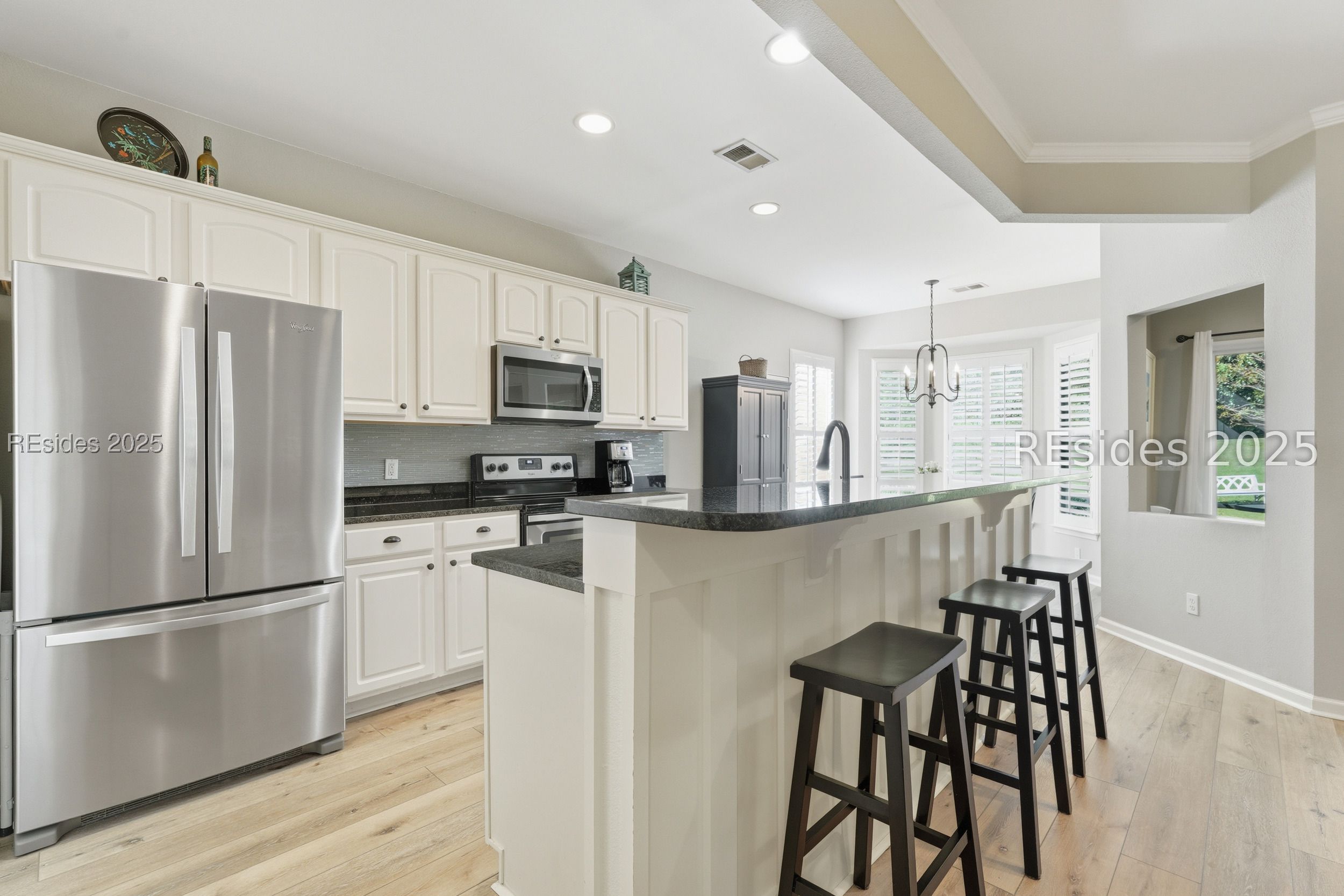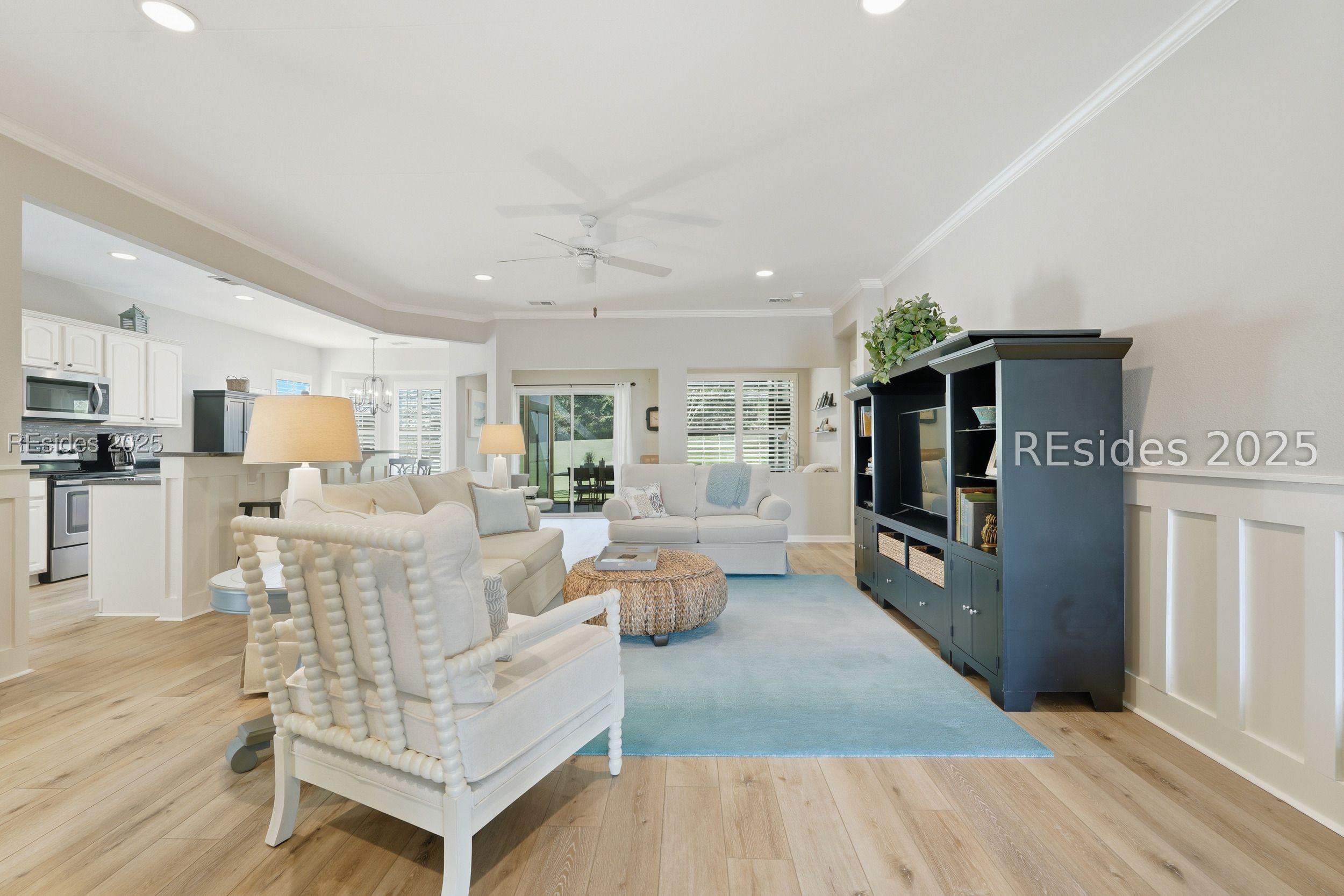 Located in the heart of Sun City Hilton Head, this home captures the essence of Lowcountry living with one of the largest private backyards in the area. Nestled at the end of a quiet cul-de-sac, this beautifully updated Ibis Model offers 3 bedrooms, 2 baths, and a versatile flex room perfect for a home office or hobby space. The welcoming front exterior features cement board siding with decorative shingles, a paver driveway and walkway, and timeless curb appeal. Step inside to a light-filled open-concept design with luxury vinyl plank flooring throughout ideal for both relaxed living and entertaining family and friends. The spacious eat-in kitchen with stainless steel appliances flows seamlessly into the living room and Carolina Room, creating a bright and connected atmosphere. Enjoy peaceful mornings or warm Southern evenings on the large screened lanai, overlooking a sweeping backyard. The primary suite offers a serene retreat with an en suite bath featuring a luxurious double super shower. With numerous updates including a newer roof (2019), HVAC (2018), garage door (2018), and water heater (2020), this home is move-in ready and worry-free. Ideally situated near Hidden Cypress Amenity Center, the Dog Park, and Softball Field, residents enjoy easy access to over 150 clubs, social groups, and recreational amenities embracing the active, vibrant lifestyle Sun City Hilton Head is known for. Experience the perfect blend of southern charm, comfort, and convenience, your next chapter awaits in Sun City Hilton Head!