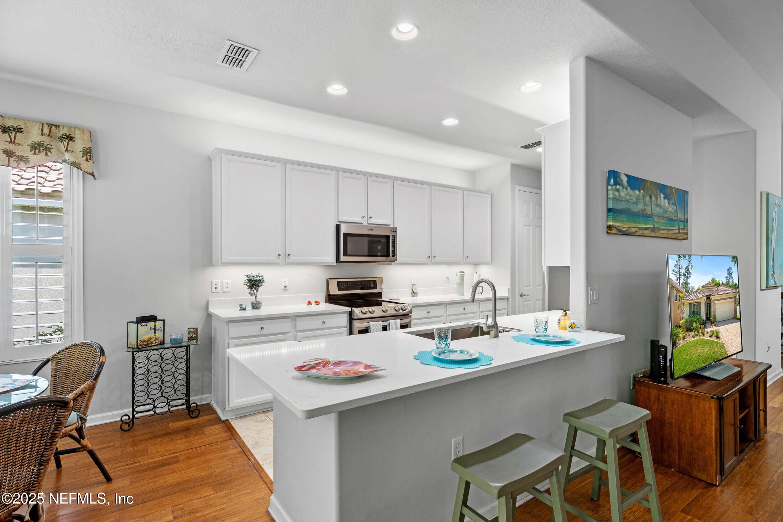 Welcome to gated 55+ Del Webb Ponte Vedra in Nocatee! Nestled in the heart of The Hollow, one of DWPV's most charming neighborhoods, this popular TILE ROOF, BLOCK BUILT Cypress model w/ STORM RM & STORM SHUTTERS had MAJOR UPGRADES in 2025: NEW front door glass for more natural light, NEW quartz kitchen & bathroom countertops, NEWLY painted white kitchen & bathroom cabinets, NEW over & under kitchen cabinet lighting, NEW kitchen & bathroom sinks. Other features: 12' ceilings, NO CARPET, new hot water heater 2022; new HVAC, water softener, fridge & stove 2023; large screened lanai, a fenced backyard w/ mature landscaping & a gorgeous preserve view. At the private Anastasia Club owners enjoy: indoor & outdoor pools & spas, pickleball, bocce, tennis, fitness center, game rms, numerous clubs, a full-time activity director + access to Nocatee Water Parks & Amenities. DWPV is a few minutes away from Nocatee Town Center & 10+ min from Ponte Vedra Beach shopping, clubs & the OCEAN!