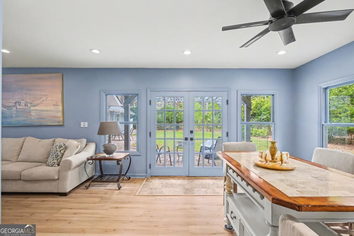 This stunning ranch style home on almost half an acre has been renovated and re-invigorated for its next owner. The sellers left no stone unturned when they obtained this property, and since have added all new interior flooring, Thermador appliances, new roof, HVAC with built in dehumidifier, renovated bathrooms, and overhauled landscape. There have been over 13 trees removed, with nothing to hang directly overhead; new gutters and French drain systems allow for proper drainage. The home is spacious, yet warm, with primary suite and two additional bedrooms on the right side, and a large bonus room just off the great room. Primary suite features upgraded tray shiplap ceiling and walk-in closet; bathroom has enormous walk-in shower with rain showerhead, separate vanities, and water closet. Secondary bath is marble-clad with walk-in shower and large single vanity; bedrooms are great size for queen sized beds. Kitchen is open to the vaulted great room, with upgraded appliances, coffee bar, and double pantries. Laundry and half bath are beyond, along with a two car side-entry garage right off the kitchen. Meticulously maintained, all one level living, located behind the gates of the Landings at Skidaway Island; Savannahs premier golf and tennis lifestyle community.