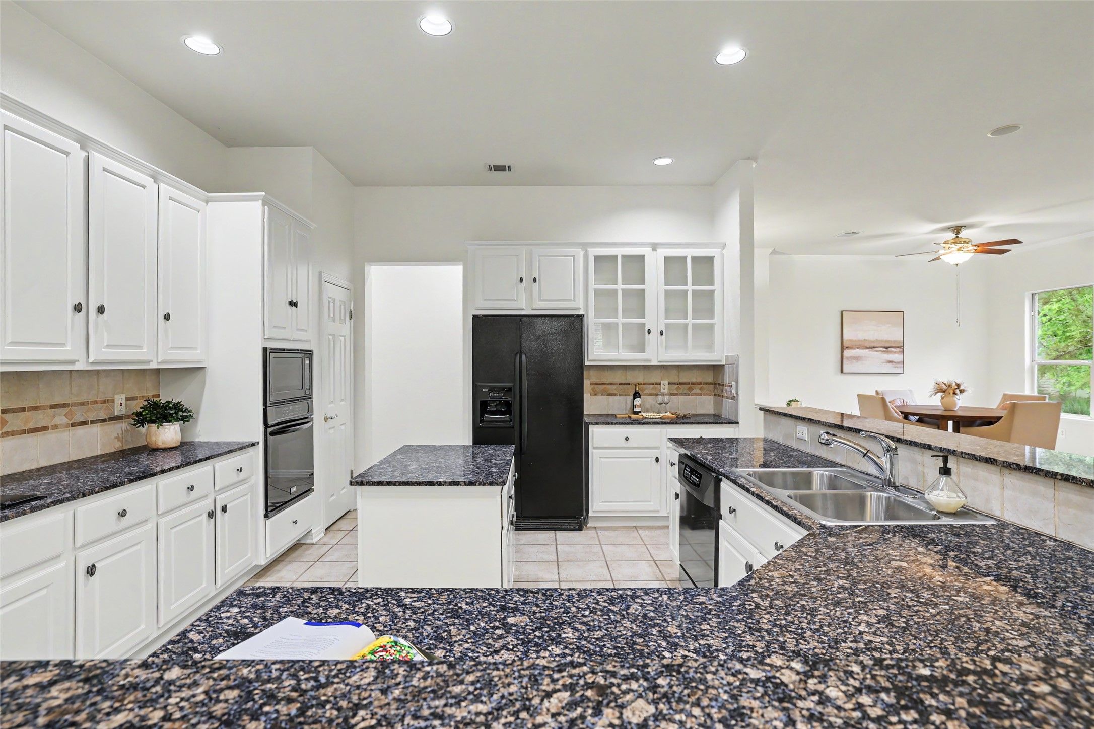 The popular Pedernales floor plan sits on a private, fenced cul-de-sac lot surrounded by mature trees, lush landscaping, and follow the meandering path down to Berry Creek. Inside, the kitchen features granite countertops and opens to the spacious living room anchored by a stone fireplace. The home is filled with thoughtful details including 10-foot ceilings, 4” plantation shutters, and abundant natural light. The primary suite features a charming bay window overlooking the backyard. Designed for both comfort and flexibility, the layout includes a formal dining room, breakfast nook, dedicated office, and an additional flex space—ideal for hobbies, guests, or a second living area. The enclosed sunroom, with HVAC, adds extra year-round living space, perfect for relaxing or entertaining. Residents of Sun City Texas enjoy resort-style amenities including three golf courses, 4 amenity centers, 28 tennis-pickleball courts, pools, fitness centers, and over 50 clubs and social activities, all set within the scenic Texas Hill Country and just minutes from the charm of Georgetown. Situated in a peaceful cul-de-sac setting near Berry Creek, this home offers privacy, space, and a functional floor plan in a beautiful natural setting waiting for you to call home.