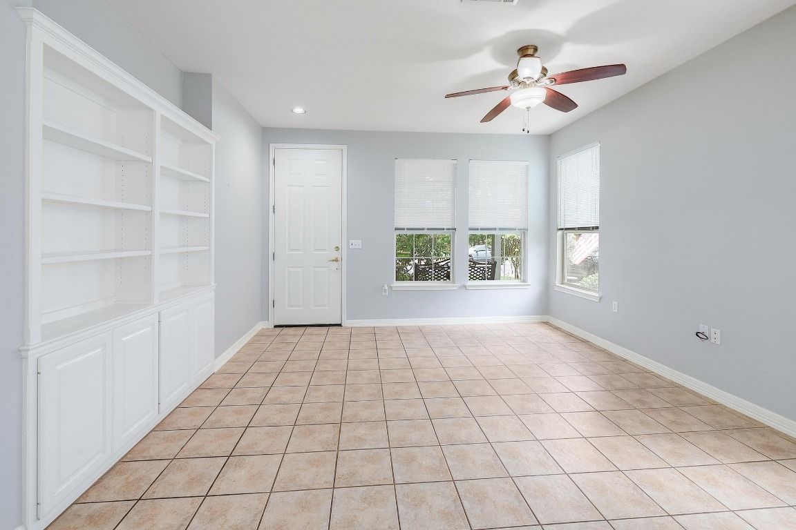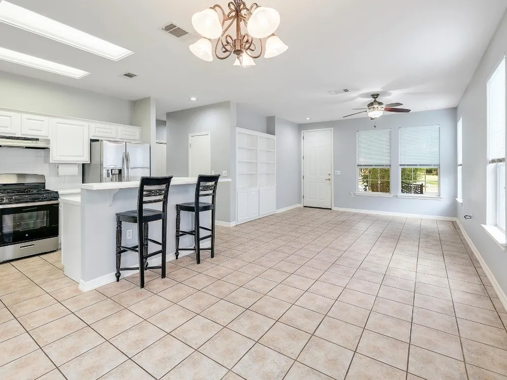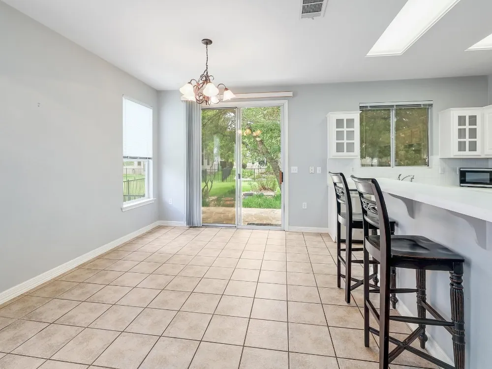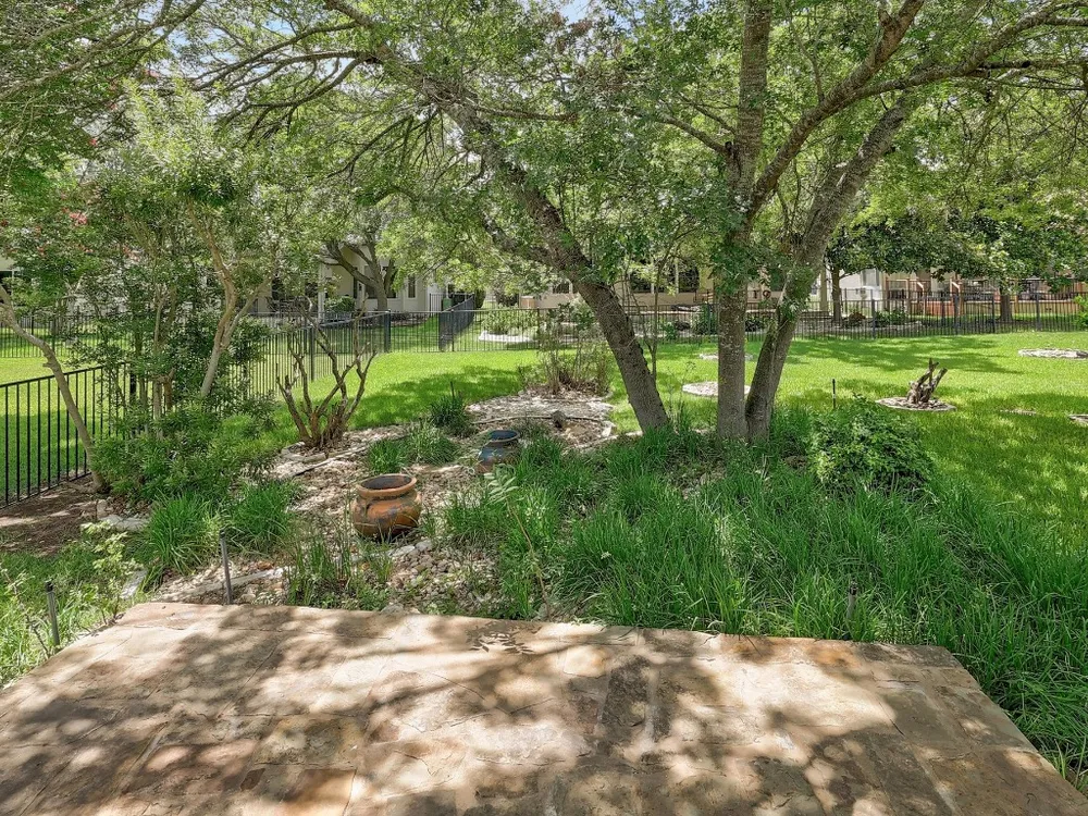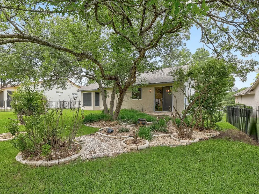 Charming Lavaca floor plan home with mature curb appeal – Ready for Your Personal Touch! Step into this inviting, open-concept home featuring an open living area, with built in bookshelves—Large glass doors open to a beautifully manicured backyard enclosed by elegant wrought iron fencing, offering a peaceful space to relax or host guests. Enjoy the ease of maintenance with no carpet throughout. This home offers the perfect blend of comfort and potential—just waiting for your unique style! Primary shower remodeled February 2025 - Roof 2015 - HVAC 2015 - Dishwasher 2024 - Stove/Range 2024. Solar screens.