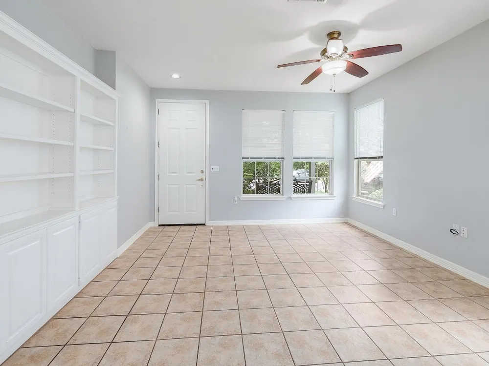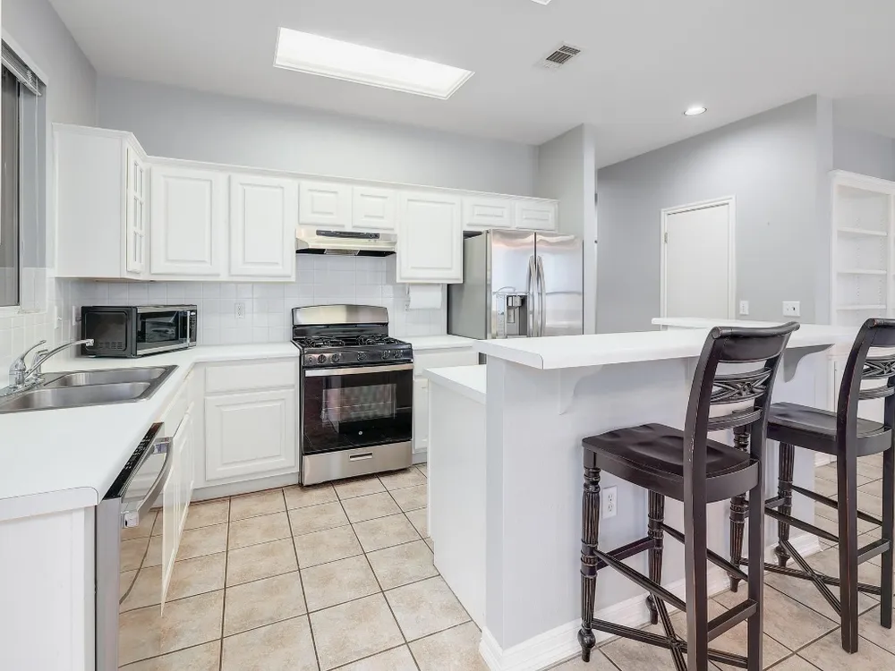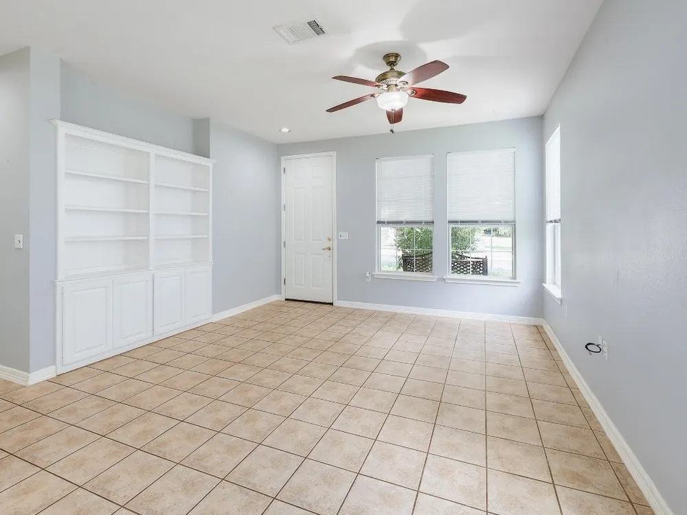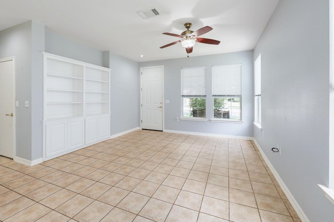 Charming Lavaca floor plan home with mature curb appeal – Ready for Your Personal Touch! Step into this inviting, open-concept home featuring an open living area, with built in bookshelves—Large glass doors open to a beautifully manicured backyard enclosed by elegant wrought iron fencing, offering a peaceful space to relax or host guests. Enjoy the ease of maintenance with no carpet throughout. This home offers the perfect blend of comfort and potential—just waiting for your unique style! Primary shower remodeled February 2025 - Roof 2015 - HVAC 2015 - Dishwasher 2024 - Stove/Range 2024. Solar screens.