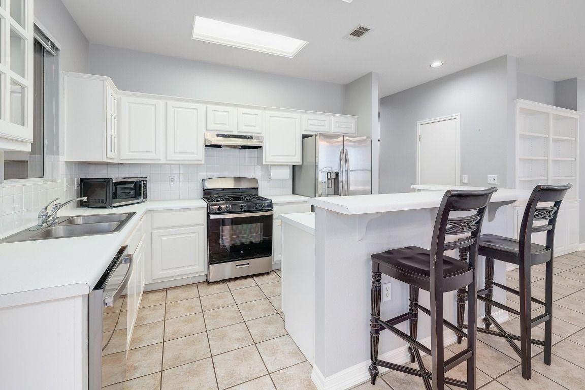 - Dishwasher, Exhaust Fan, Free-Standing Gas Oven, Disposal, Gas Range, Microwave, Plumbed For Ice Maker, Self Cleaning Oven, Stainless Steel Appliance(s), Vented Exhaust Fan