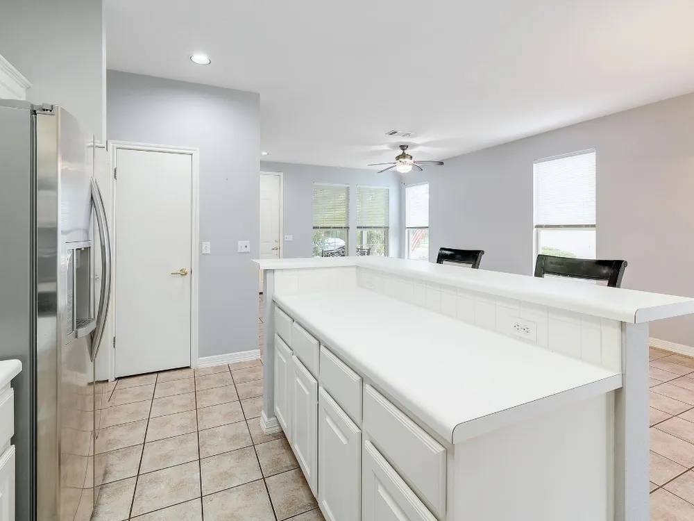 - Breakfast Bar, Bookcases, Ceiling Fan(s), Eat-in Kitchen, Kitchen Island, Main Level Primary, NoInteriorSteps, Open Floorplan, Pantry, Recessed Lighting, Solid Surface Counters, Walk-In Closet(s), High Speed Internet