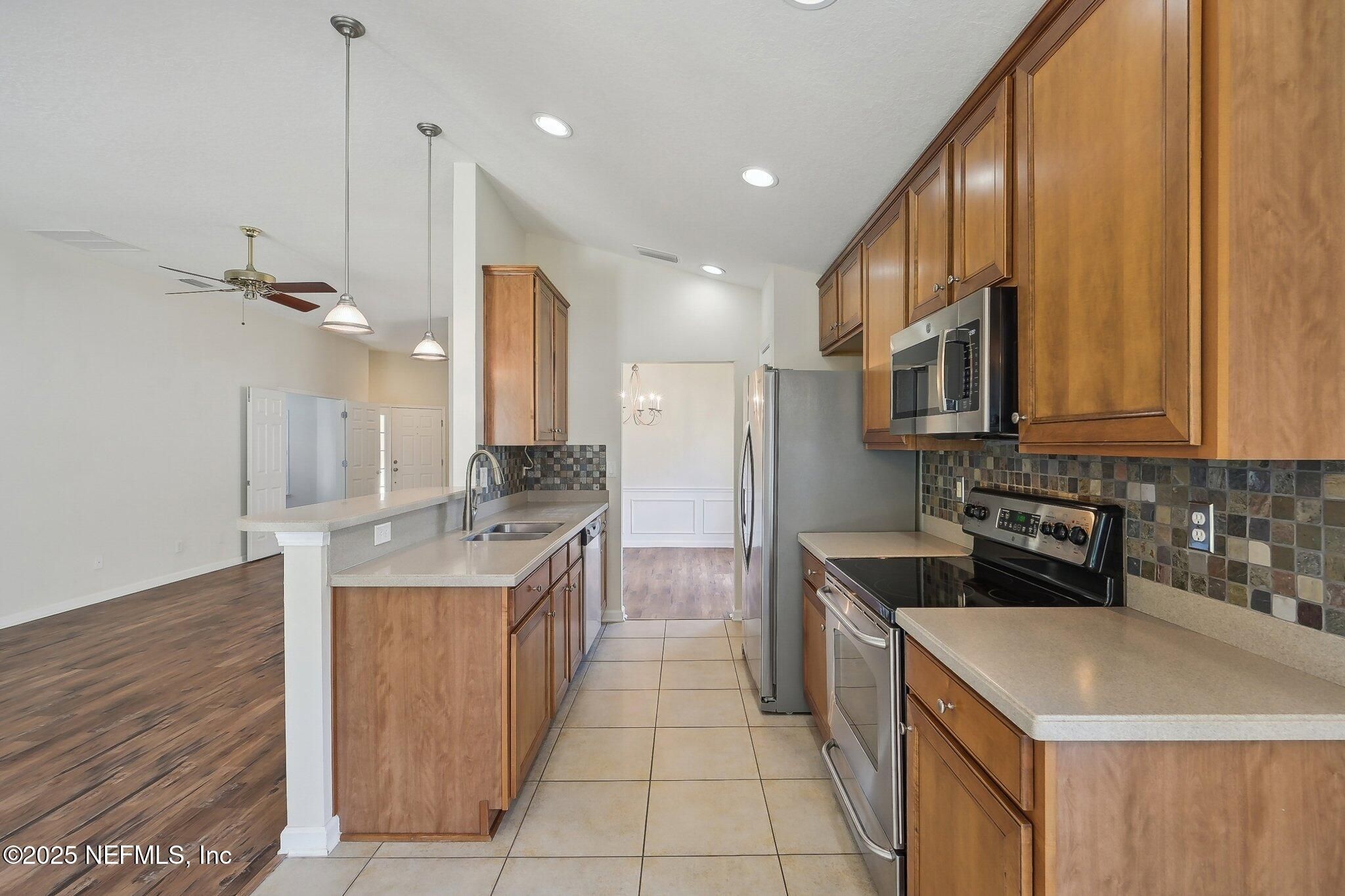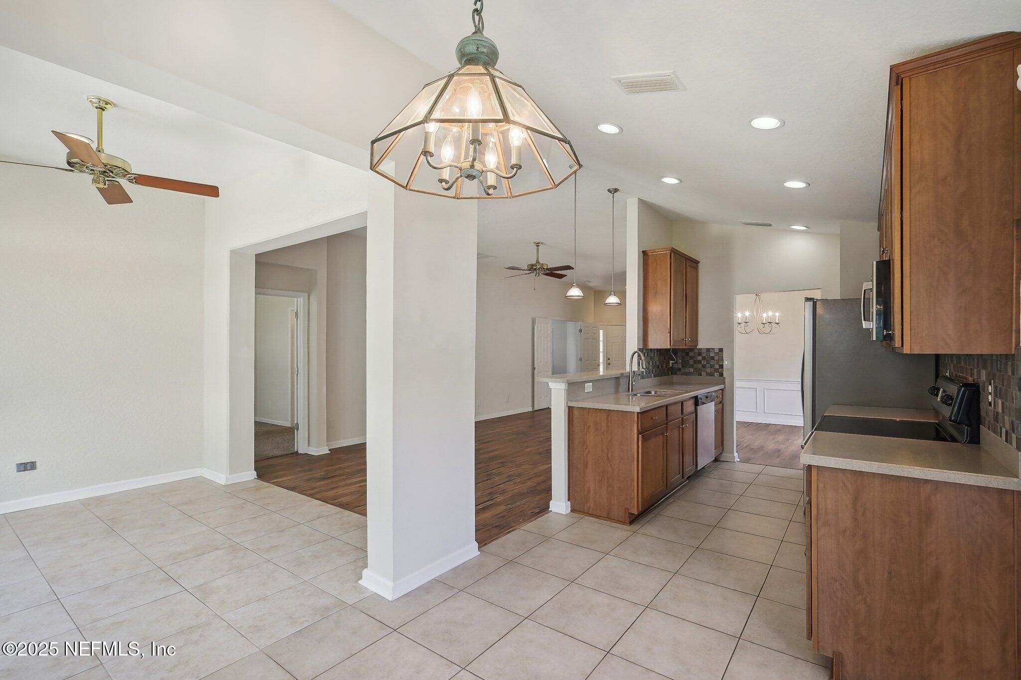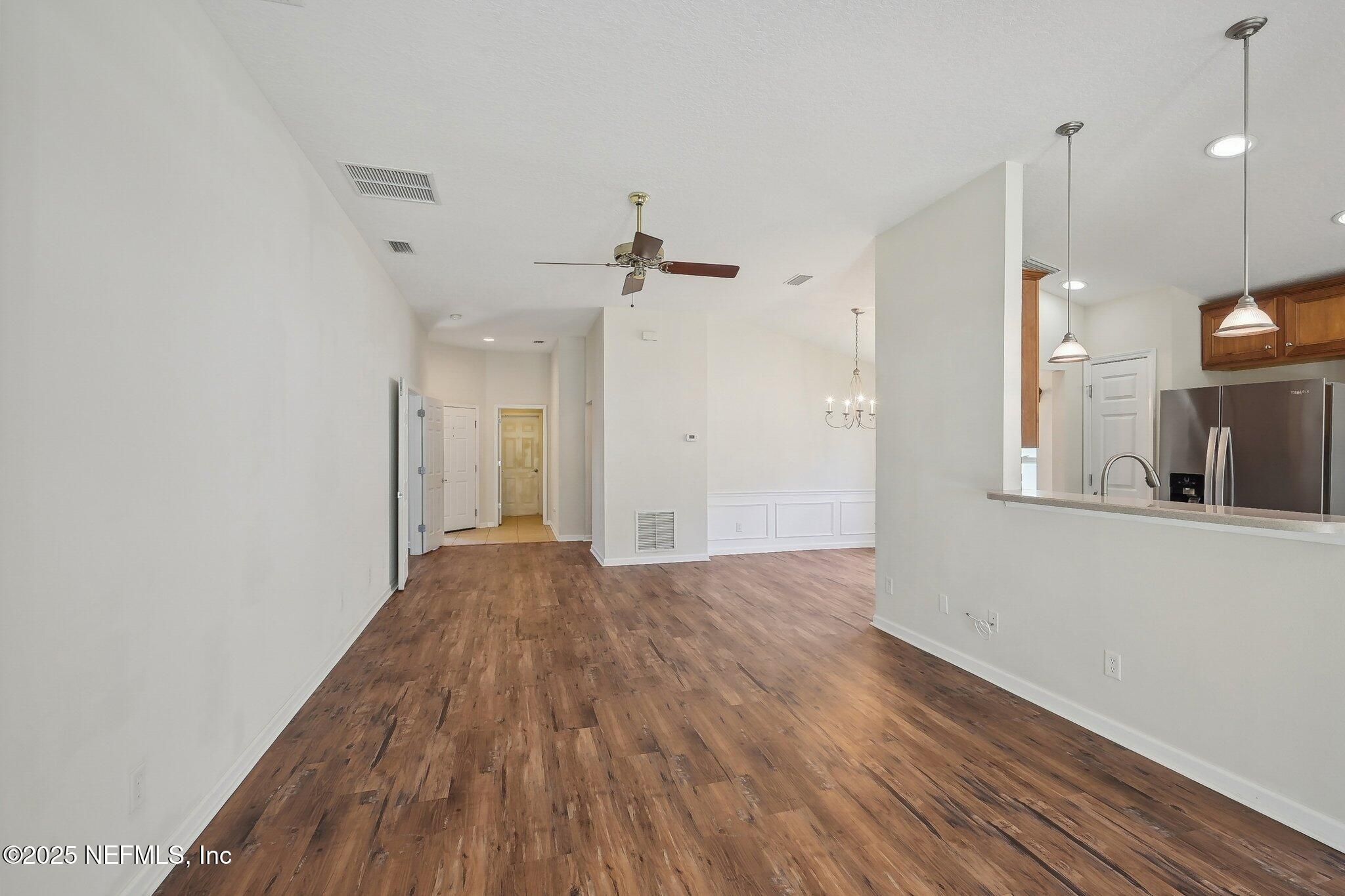 - Breakfast Bar, Ceiling Fan(s), Eat-in Kitchen, Entrance Foyer, Open Floorplan, Pantry, Primary Bathroom - Shower No Tub, Primary Downstairs, Split Bedrooms, Vaulted Ceiling(s), Walk-In Closet(s)