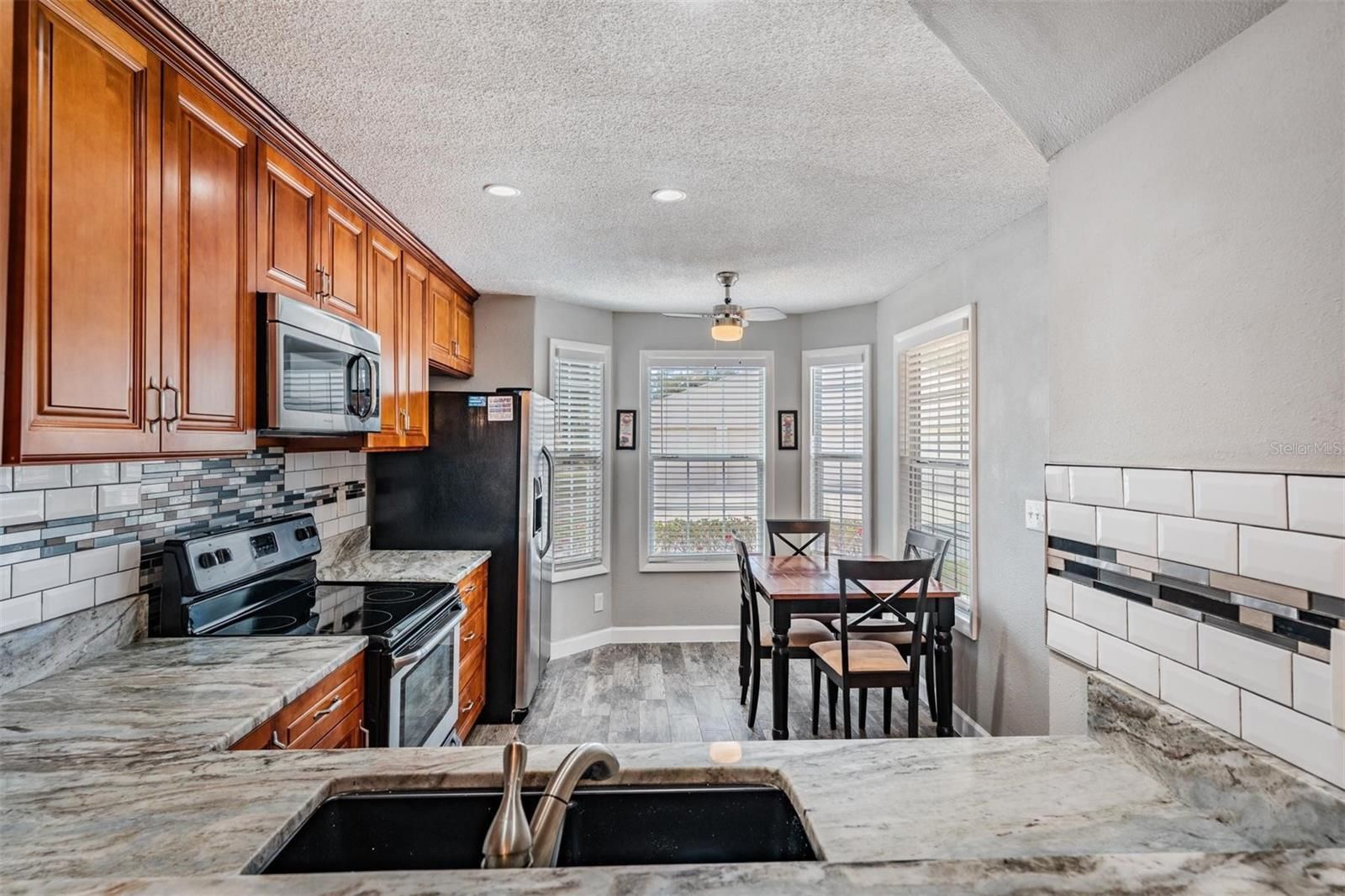 - Ceiling Fan(s), Eat-in Kitchen, Living/Dining Room, Open Floorplan, Solid-Wood Cabinets, Stone Counters, Thermostat, Walk-In Closet(s), Window Treatments