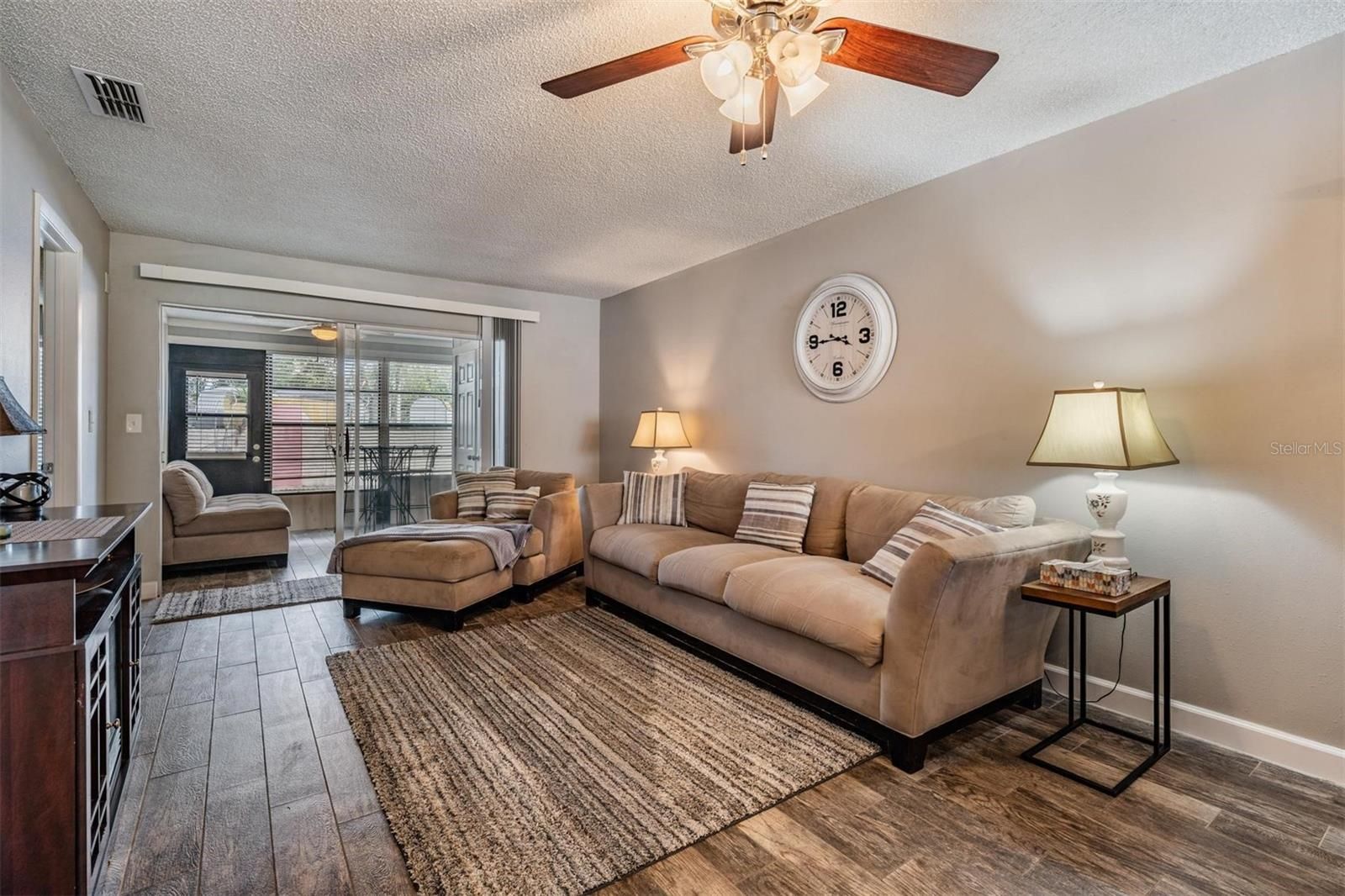 BEAUTIFUL, REMODELED 2 BEDROOM, 2 BATHROOM W/ LANAI IN TIMBER OAKS! You will fall in love with this open floor plan! This remodeled kitchen boasts Granite Counter tops, Wood Cabinets w/ soft close doors, Stainless Steel Appliances, and Tile backsplash! The Primary Bed/Bathroom has also been remodeled and features a Walk-in closet, Walk-in shower, and High Vanity! The spacious enclosed lanai is perfect for an office, hobby room, or second living space! Other great features include wood-like tile flooring throughout all main areas, cieling fans in all rooms, and newer hurricane impact windows! The HVAC is newer as well. All of this in the beautiful 55+ community of Timber Oaks which includes its heated 24hr community pool, hot tub, and clubhouse that all over look a beautiful lake! There is also a pool in the sub community of Chateau Village! The items included in the monthly HOA fee are Cable, Internet, Water, Trash, Exterior, Lawn Maintenance, and of course all of the community amenities!