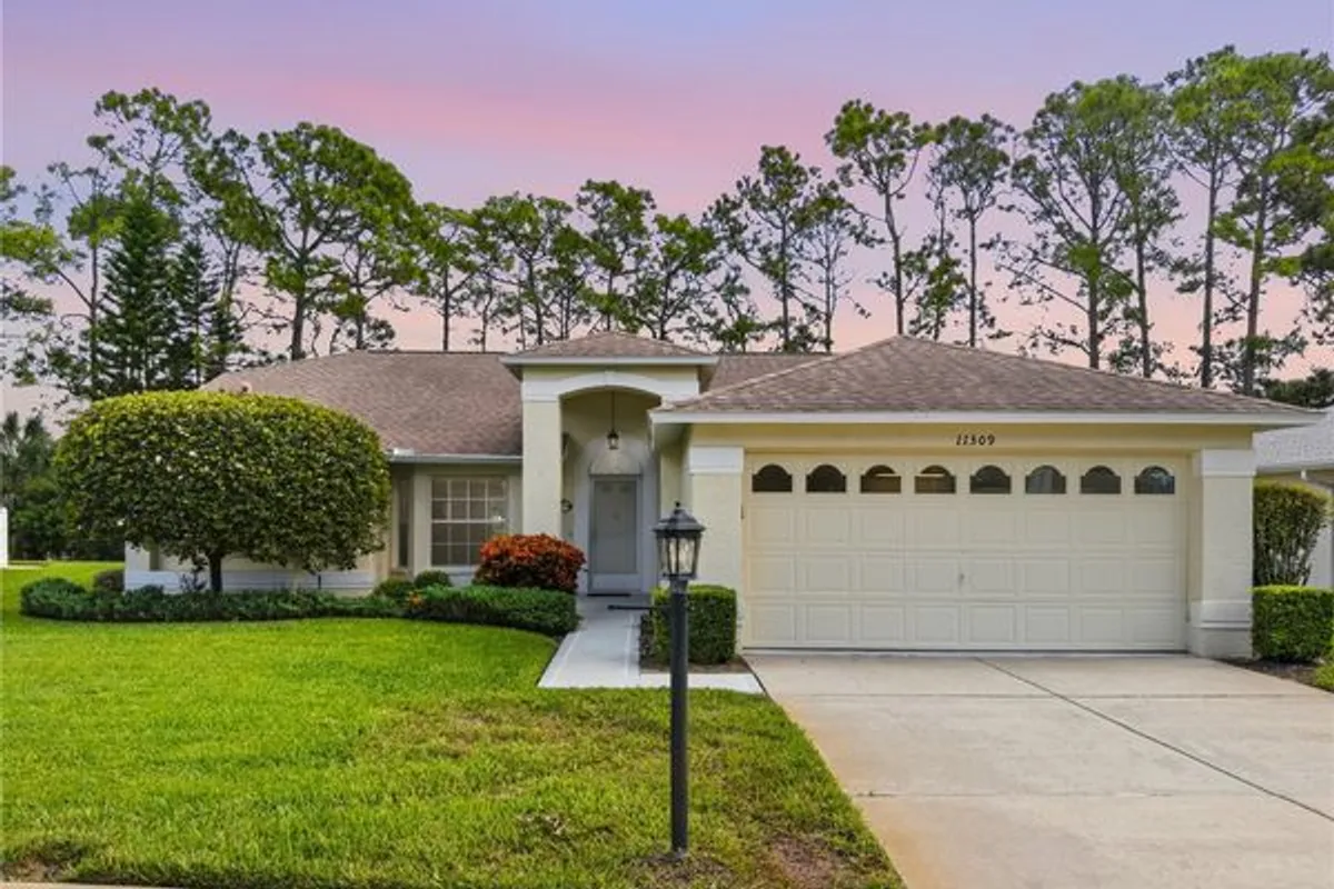 Seller Offering to pay the $2,100 New Resident Community Buy-In Fee with an accepted offer. Welcome to this beautifully updated home in the highly desirable Heritage Pines 55+ Golf Community. Offering over 2,100 square feet of living space and no rear neighbors. Inside, soaring cathedral ceilings enhance the open living and dining room combination, while fresh interior paint, new lighting, and modern ceiling fans throughout create a bright, inviting atmosphere. Most of the home features newer vinyl plank flooring for a seamless and contemporary look. At the heart of the home, the remodeled kitchen showcases granite countertops, new cabinetry with stylish hardware, brand-new stainless steel appliances, a breakfast bar, and a cozy dinette, all overlooking the spacious family room. The split-bedroom layout provides privacy, with the primary suite offering dual walk-in closets and a beautifully updated en-suite bathroom with a new custom dual sink vanity with granite countertops. The guest wing includes a large bedroom with walk-in closet, a built in queen-size Murphy bed, and a refreshed guest bath. At the rear, a large Florida room with sliding doors from both the dinette and dining area provides the perfect spot to enjoy serene views of the green retention area and partial golf course vistas. Recent updates add peace of mind, including a roof (2018), AC(2020) with new blower motor(2025), and a brand-new water heater (2025). A golf cart is also included. Heritage Pines residents enjoy a true resort lifestyle with an 18-hole championship golf course, clubhouse with restaurant and bar, pool and spa, fitness center, and courts for tennis, pickleball, and bocce. HOA fees cover cable, internet, lawn care, and irrigation for easy, low-maintenance living. Don’t miss the opportunity to make this exceptional home yours—schedule your private tour today!