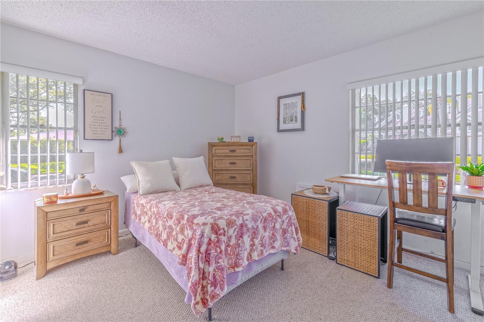 Welcome to this 2-bedroom, 2-bath villa in Palm Harbor, where comfort and opportunity meet in a highly desirable location. The living room immediately sets a welcoming tone with abundant natural light, a ceiling fan with multi-bulb fixture, and neutral finishes that create an open, versatile backdrop. A built-in wall niche adds both character and function, providing an ideal spot for books, décor, or display pieces. From here, the layout transitions naturally into the adjoining kitchen and dining area. The kitchen and dining share one open zone, designed for everyday convenience. While the cabinetry and counters reflect an earlier era, recent updates provide a valuable head start, including a stainless steel refrigerator (2024) and a range with oven (2025). A large illuminated ceiling panel ensures bright workspaces, while the compact footprint offers buyers the opportunity to tailor the space to their own taste and lifestyle. A highlight of this villa is the private courtyard-style patio. Open to the sky and accessible from the living room, dining area, and garage, it creates a seamless blend of indoor and outdoor living. Whether enjoyed as a morning retreat, a garden space, or an area for evening relaxation, it is a versatile extension of the home. Both bedrooms are generously sized, each featuring dual closets for ample storage. The primary suite includes a private bath with a step-in shower and sliding glass enclosure, along with a single vanity framed by an expansive mirror and overhead fluorescent lighting. Practical tile floors, built-in cabinetry, and direct proximity to the bedroom enhance its function while leaving room for modern updates. The second bath serves both guests and the additional bedroom. Designed with a traditional tub-and-shower combination and tile surround, it offers everyday practicality and space for personalization. A single-sink vanity, framed mirror, and overhead fluorescent lighting complete the layout, providing a functional setting that awaits the finishing touches of its next owner. The one-car garage includes attic access for additional storage, as well as an estimated 2022 washer and dryer for added convenience. A new roof in 2025 further enhances peace of mind, underscoring the property’s readiness for its next chapter. Community amenities include a sparkling pool just steps from the villa, while the location places everyday essentials within easy reach, with Publix, Sprouts, and Trader Joe’s only minutes away. Outdoor enthusiasts will also appreciate proximity to Wall Springs Park, Pop Stansell Park, and John Chesnut Sr. Park, each offering trails, green space, and recreational amenities. Combining a practical layout with thoughtful updates and an outstanding Palm Harbor address, this villa is ready for its next owner to personalize and enjoy. Schedule your private showing today and discover the potential this home has to offer.