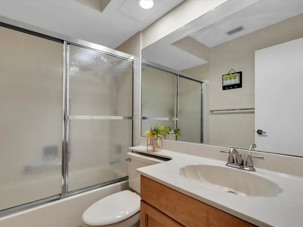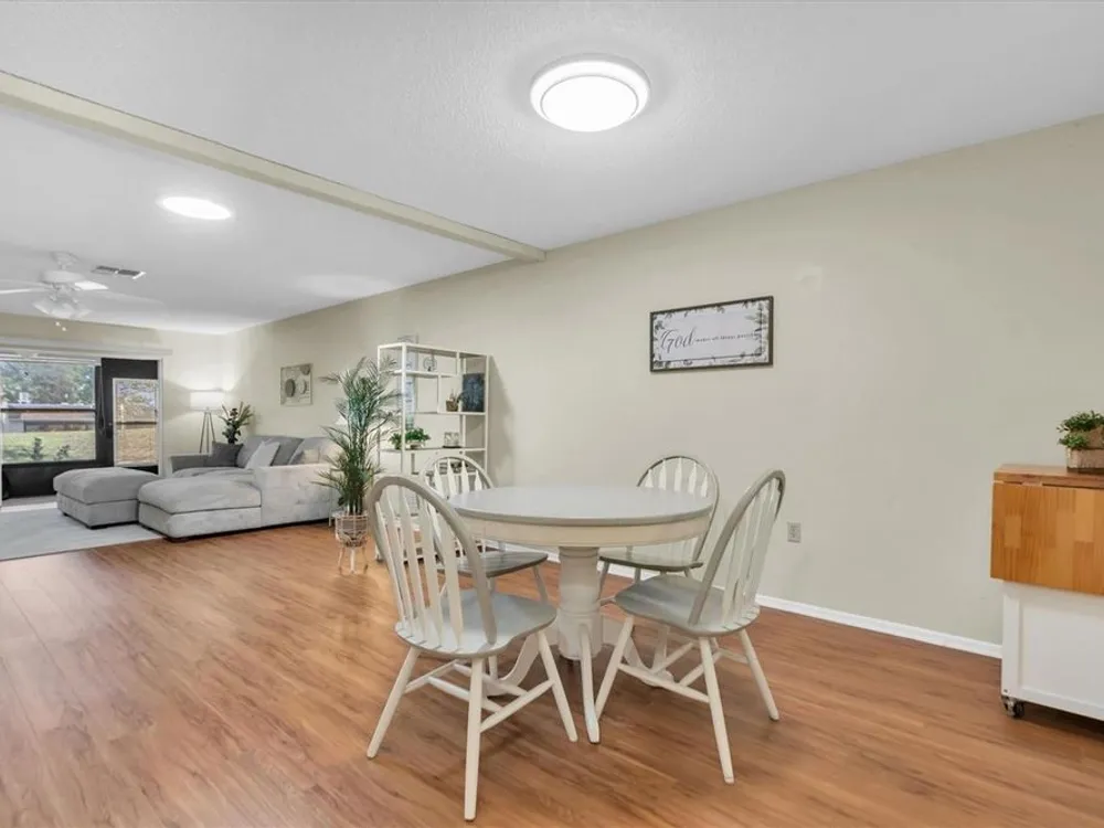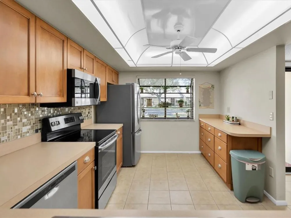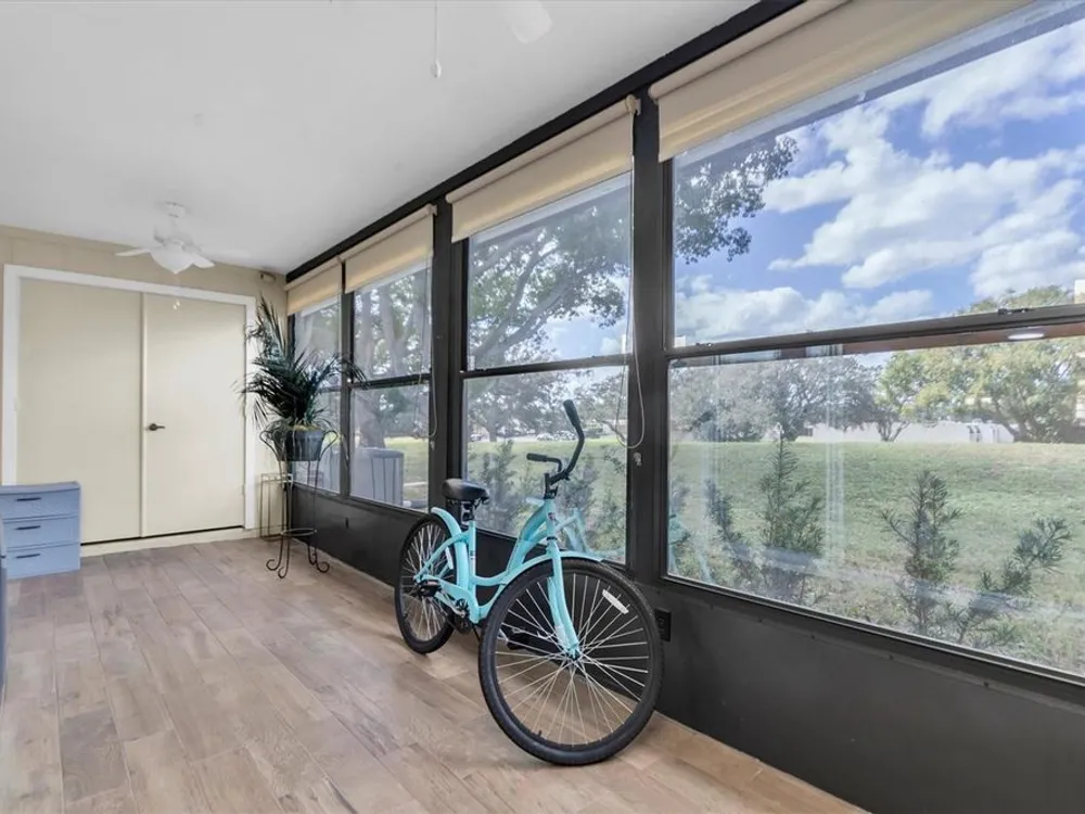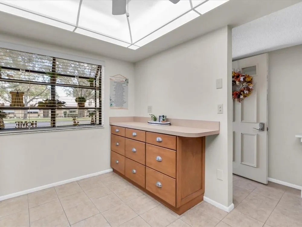 Welcome to this beautifully updated 2-bedroom, 2-bath end-unit condo in the picturesque Dollar Lake Village, part of the highly sought-after Timber Oaks 55+ community. This move-in-ready home blends comfort, style, and thoughtful upgrades. A charming glass storm door invites you inside, where you’ll find an updated kitchen with stainless steel appliances, a closet pantry, and extra cabinetry for abundant storage. A solar tube fills the home with soft, natural light, complemented by updated LED fixtures for a bright, airy feel. The open dining and living area includes a flexible niche—perfect for a dry bar, coffee station, or extra storage. Gorgeous laminate flooring runs throughout—no carpet here—creating a clean, modern look. Triple sliding glass doors lead to a spacious, tiled Florida Room with a large storage closet, an ideal spot to relax or enjoy your morning coffee. Step outside to your private back area with a peaceful pond view, or take a short stroll to the community pool .The split floor plan ensures privacy, making it easy to host guests or set up a home office in the front bedroom. The generously sized primary suite opens to the Florida Room and features an ensuite bath with a make-up area, walk-in closet, and shower. An inside laundry room adds convenience, and the covered carport with an additional storage closet provides extra functionality. The A/C was replaced in 2021, giving you peace of mind for years to come. Monthly condo fees include reserves, cable, internet, water, sewer, trash, roof care, and exterior maintenance. Residents of Dollar Lake Village enjoy their own private pool, plus access to the Timber Oaks clubhouse, which offers a fitness room, heated pool, pickleball and tennis courts, card room, billiards, and a full calendar of social events and clubs.Come see for yourself—this condo isn’t just a home, it’s a lifestyle you’ll love living every day!