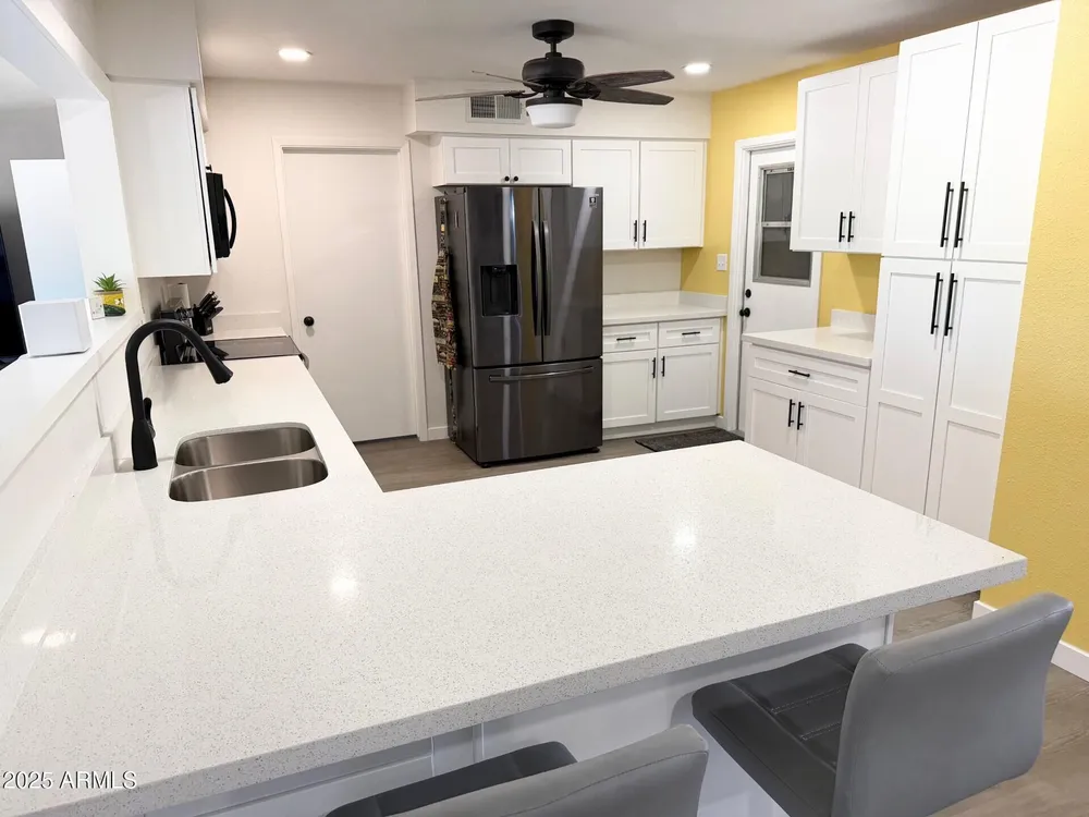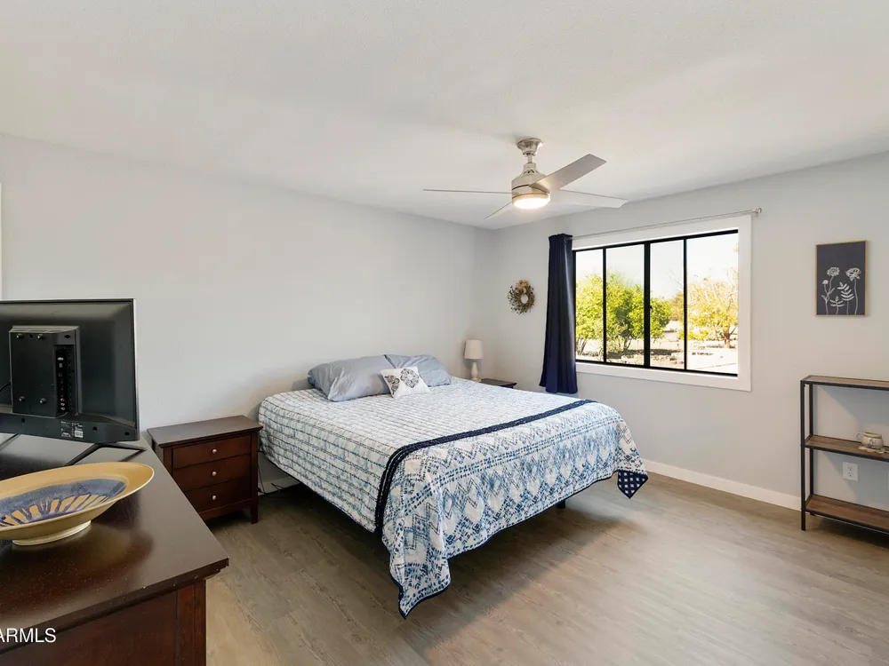 Stunning Home in Fountain of the Sun - 55+ Guard-Gated Community in East Mesa! Nestled on a spacious cul-de-sac lot, this Beautifully Furnished 2-bedroom, 2-bathroom home (1,621 sq ft) offers comfort, style, and peace of mind in one of East Mesa's most sought-after active adult communities. Fully Remodeled Kitchen (2025): Soft-close cabinetry, Quartz countertops, Stainless steel appliances, Slide-out pantry shelving, and built-in wastebasket, Open & Bright Layout: LED recessed lighting throughout and a seamless flow from living to dining, Updated Flooring: Brand New Luxury Vinyl Flooring & Carpet (2025), Primary Suite: Generously sized with a tiled walk-in shower, Comfortable Guest Bedroom and full bath with tub/shower combo, Energy-Efficient Upgrades: CLICK ON MORE Dual-Pane Low-E Tinted Windows (2024), New Roof (2022), New Water Heater (2020), Expansive AZ Room: Climate-controlled for year-round enjoyment, Fresh Exterior Paint (Dec 2024), West-Facing Backyard: Perfect for sunsets and outdoor relaxation, 2-Car Garage, Located in the secure, amenity-rich Fountain of the Sun community, this home is a true gem. Don't miss your chance to own this exceptional property!