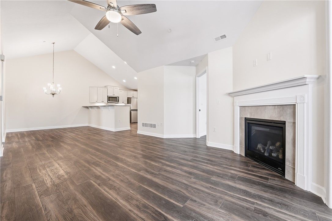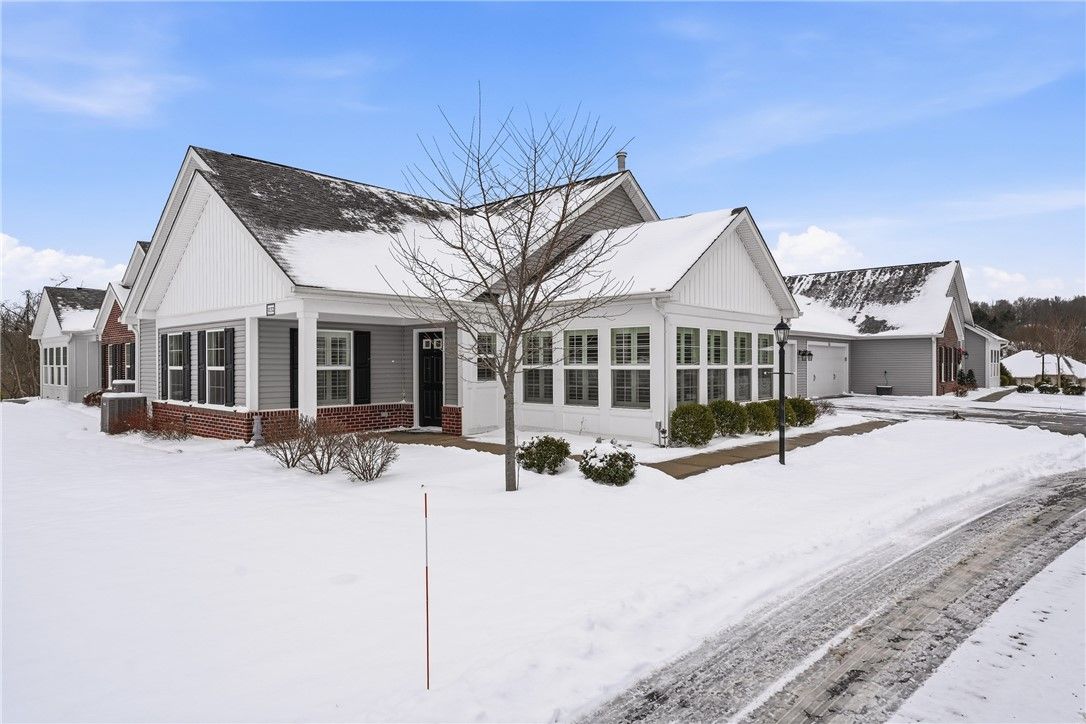 Patio style one floor living in the desirable Heritage Crossings community. This spacious home features upgraded appliances, cabinetry and flooring throughout. The plantation shutters allow plentiful natural light and privacy. Light and bright kitchen with quartz countertops, undermount lighting and two pantries for optimal storage. Cathedral ceilings in the open floor plan, cozy fireplace and four season sun room make this your year round retreat. Enjoy the community amenities such as the heated pool, clubhouse and fitness center.