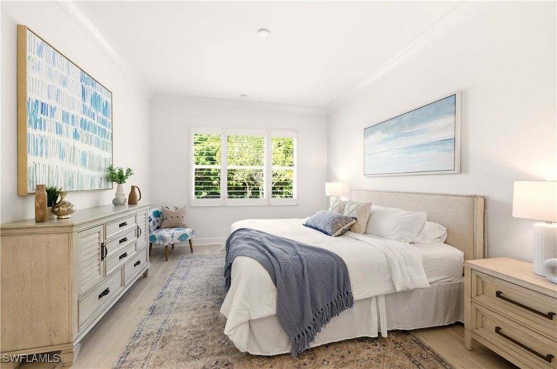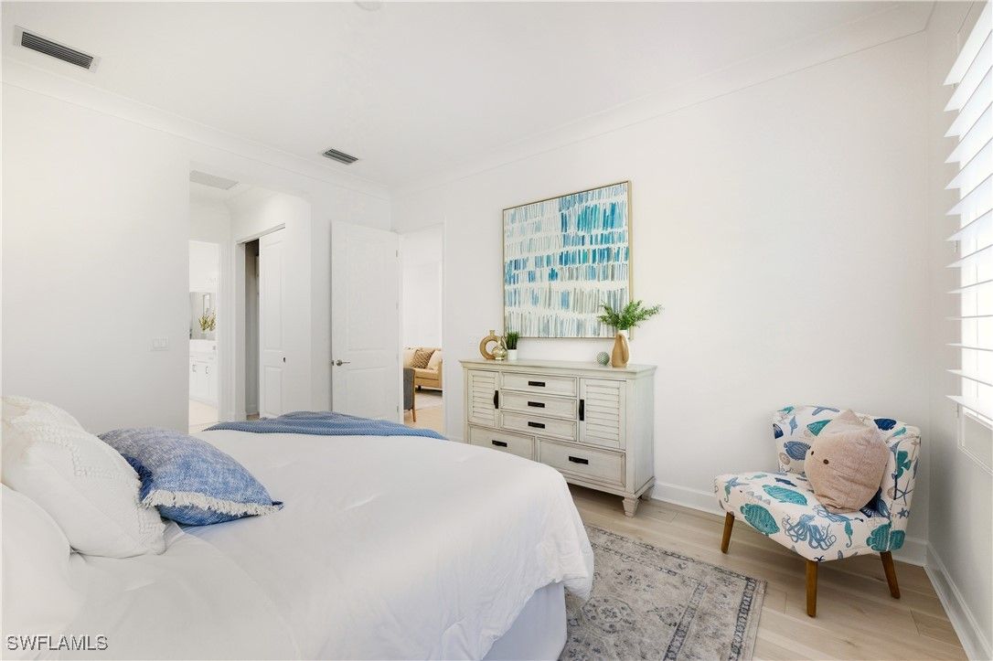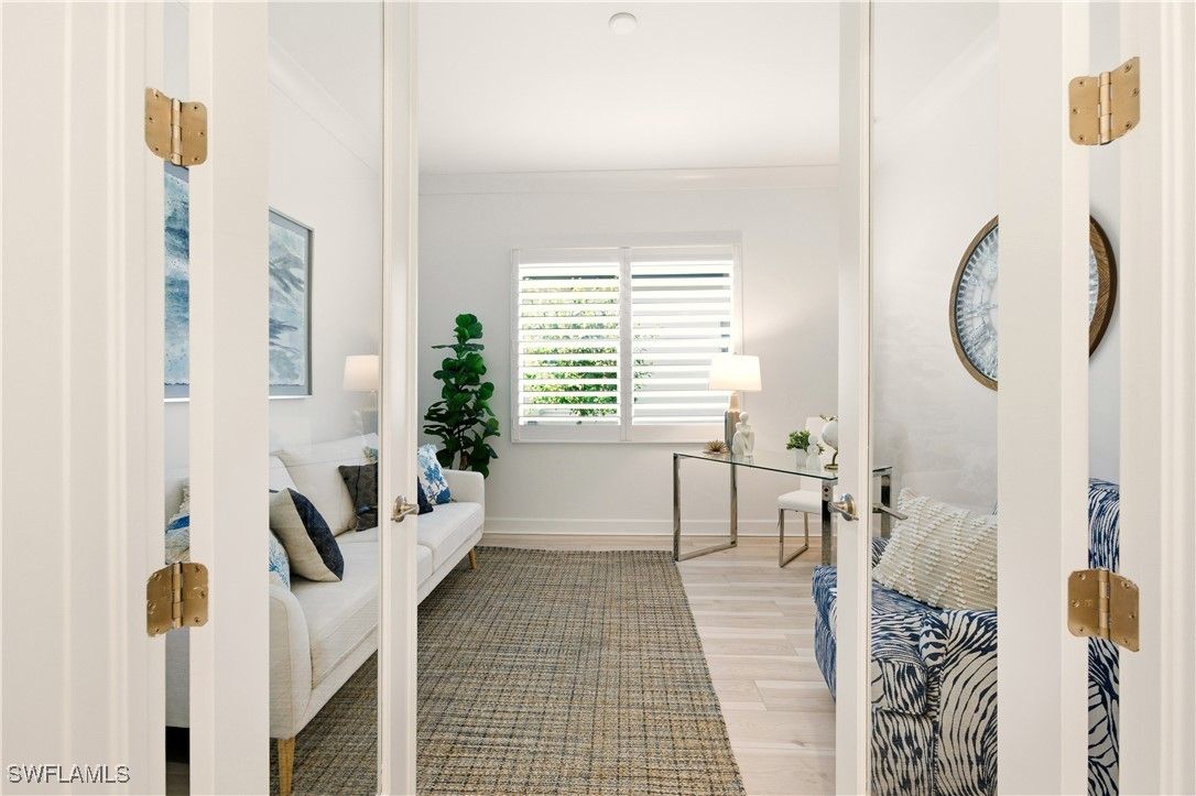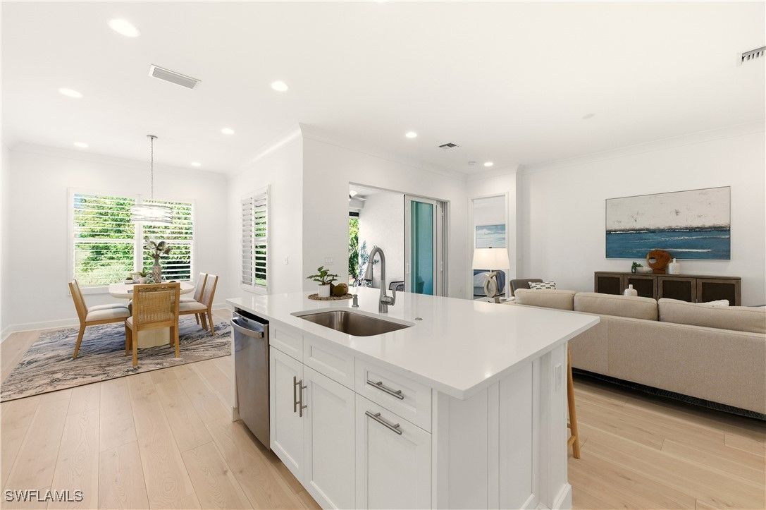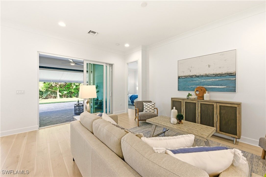 BEST VALUE in Valencia Trails!! Welcome to your nearly new (2023 build) private oasis within the secure gates of the popular 55+, natural gas community of Valencia Trails. This impressive home offers a floor plan of 2 bedrooms, 2 baths plus a den/study thoughtful and efficiently designed living space, perfectly crafted for entertaining. The heart of the home allows the kitchen to overlook and cater to the living and dining activities with this open-concept. This well-equipped kitchen is enhanced with upgraded appliances, quartz countertops, gas cooktop and ample storage. A wall of sliding glass doors seamlessly connects the indoor and outdoor living spaces. You will certainly appreciate the added space of the extended lanai with sun setter shade and electric hurricane screeen. The private primary suite is highlighted by a large closet with custom built-ins, and a spa-like retreat. The split floor plan provides an additional guest room and bathroom, and a generously sized den/flex room with French doors. Hurricane impact windows and doors throughout provide peace of mind and energey efficiency. Additional highlights include: extended garage space, epoxy garage floor, custom window treatments, glass front door, crown molding and more! The 42,000 sq ft amenity center provides a plethora of activities including a resort pool with beach entry, lap pool, resistance walking pool, spa, fire pit, fitness center, community room, restaurant, tennis, pickleball, bocce, and more!