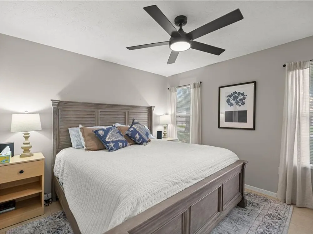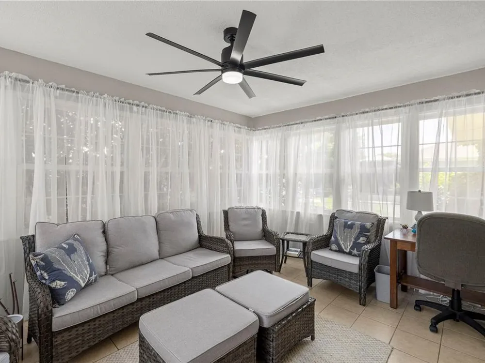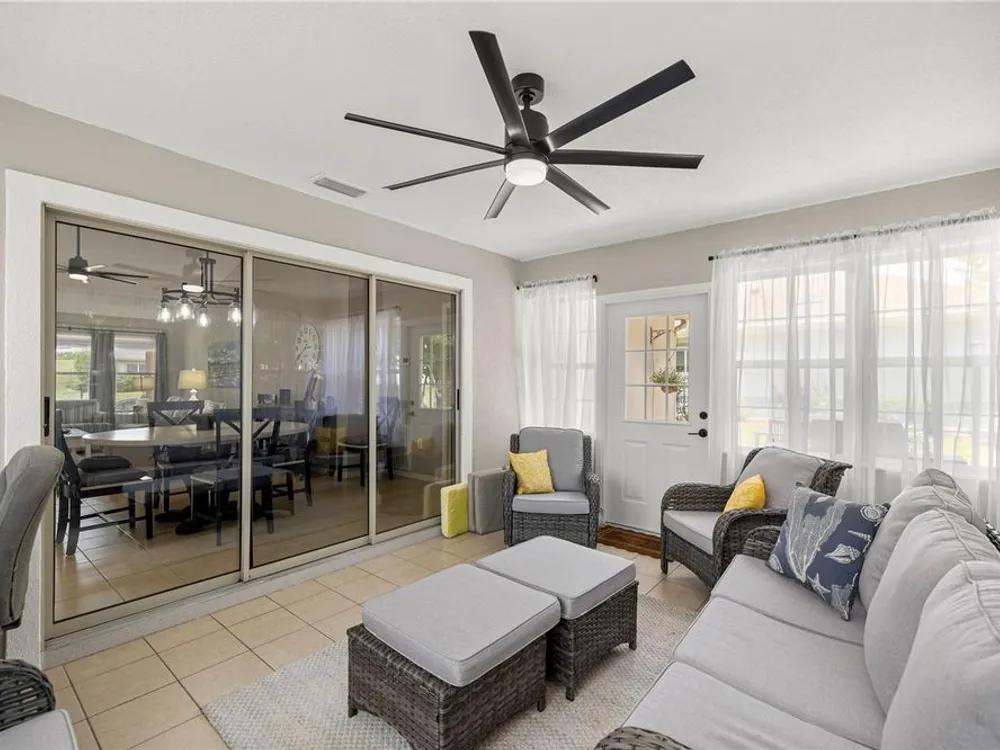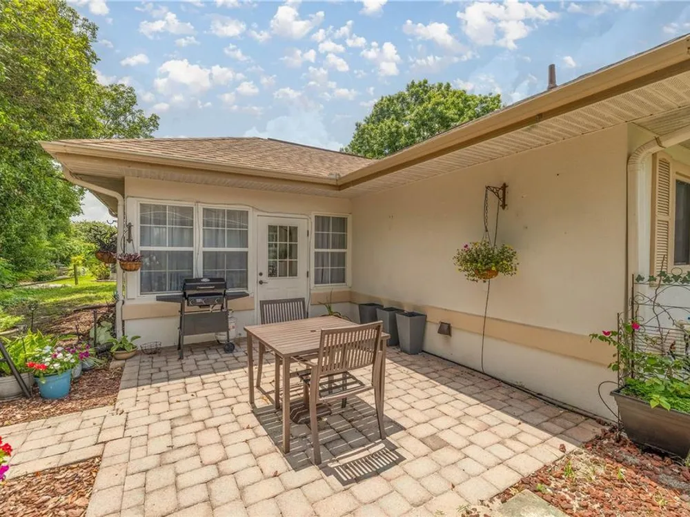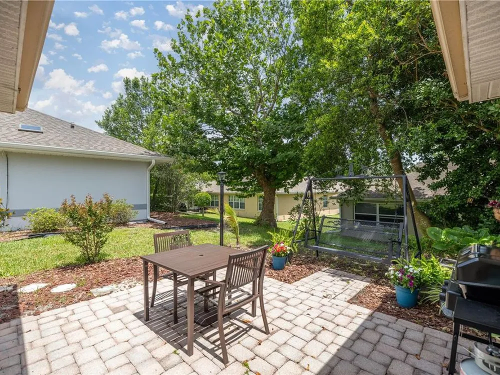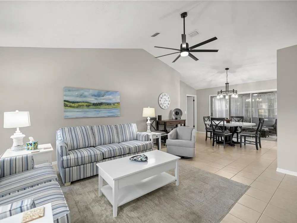 Turnkey Newly Furnished 2-Bed, 2-Bath Home in the Premier 55+ Stonecrest Golf Community! Welcome to this move-in ready, furnished home in a sought-after, vibrant neighborhood just minutes from The Villages. This beautifully maintained 2-bedroom, 2-bath residence features comfort, style, and convenience—with golf cart accessibility to shopping, dining, and much more. Step inside to find a bright and open layout with vaulted ceilings and tile flooring throughout for low, more allergen free maintenance. The interior has been recently painted and was upgraded with all-new ceiling fans and light fixtures. The master suite boasts a walk-in closet, and a private en-suite bath with a step-in shower, and linen closet. The guest bathroom is amply equipped with a tub/shower combo, to make your visitors feel at home. Enjoy Florida living at its best in the enclosed, climate-controlled Florida room, or relax on the covered front porch, ideal for socializing with neighbors. Outdoors, you’ll love the shaded backyard with paver patio, brick paver driveway, and concrete curbing bordering nicely landscaped flower beds—all enhancing this home’s curb appeal. Major upgrades include a new roof (2023) and A/C system in (2018). New skylights in 2024.This home is being sold fully furnished, offering true turnkey convenience. A 2013 Yamaha gas golf cart is also available for sale separately. Stonecrest offers exceptional amenities for an active lifestyle: 4 pools, clubhouse, restaurant, jacuzzi, billiards, shuffleboard, pickleball, baseball field, dog park, fitness center, golf and more. Don't miss this opportunity to enjoy the active, carefree lifestyle you deserve!