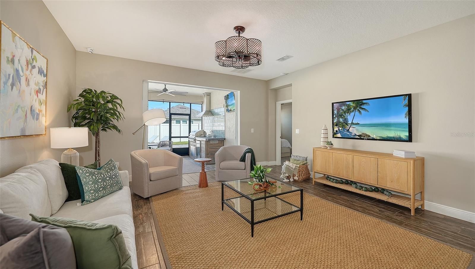 Experience luxury and comfort in this beautifully appointed 2-story Lakewood Ranch home that is perfectly situated on a spacious ¼ acre corner lot. Built in 2017, this sophisticated home offers 2,610 square feet of thoughtfully designed living space, featuring 4 bedrooms, 3 bathrooms, den/office, and versatile living areas to suit every lifestyle. The updated kitchen is a chef’s dream, complete with stainless steel appliances, a gas cooktop, and a striking glass tile backsplash. All three bathrooms have been beautifully updated. Step upstairs to discover a second-floor loft and a separate bonus room that is ideal for a media space, playroom, additional office, or air-conditioned storage. The home is equipped with a tankless gas water heater, a separate laundry room, custom plantation shutters, a whole-house water filtration system, security cameras, and hurricane shutters. Enjoy Florida living at its finest in the private fenced backyard, featuring a screened-in paver lanai with an outdoor kitchen fueled by natural gas and a saltwater heated pool and spa—perfect for entertaining or relaxing. The 2-car garage includes an electric car charger for modern convenience and extra storage spaces. Recent upgrades include a new roof, new air conditioning units, and exterior paint, ensuring peace of mind for years to come. Living in Harmony means you’ll have access to a resort-style community clubhouse, heated pool, fitness center, and event space. Plus, lawn care and irrigation are included, giving you more time to enjoy the beautiful surroundings. Located minutes from top-rated schools, premier shopping, dining, medical care, I-75 access, serene trails winding through the preserve, and local parks and golf courses. This home truly offers the best of Lakewood Ranch living.