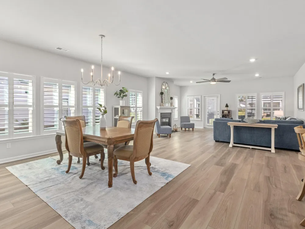 Welcome to this 4 bedroom, 2.5 bath STUNNER that is bursting with upgrades in Summerville's highly sought after 55+ community. This floor plan is one of the most popular due to its size and open concept. The GOURMET kitchen is equipped with a hood vent, tile backsplash, walk-in pantry and a kitchen island that is an ENTERTAINER'S DREAM! Friends and family will comfortably lounge in the family room and enjoy cozy evenings in front of the gas fireplace. The primary bedroom is pure LUXURY with TWO large walk-in closets, a zero-entry walk-in tile shower and a double sink vanity. Custom PLANTATION SHUTTERS adorn EVERY window!PLANTATION SHUTTERS adorn EVERY window! Retreat to the spacious SCREENED IN PORCH and enjoy the fall breeze at your fingertips. As you enter the neighborhood, you will pass the expansive community clubhouse and amenity center. Upon completion, the clubhouse and amenity center will feature two resort-style pools, cabanas, state-of-the-art fitness center, tennis and pickleball courts, outdoor dining areas, bocce ball courts, firepit, and a dedicated event space. This community is bursting with new friends and memory making opportunities!