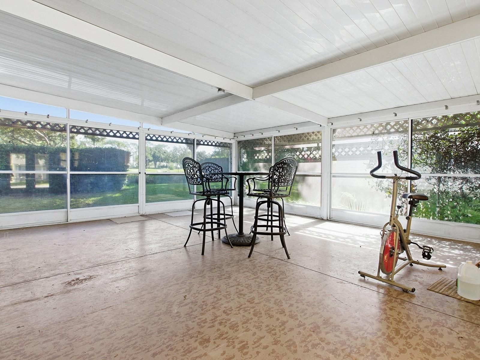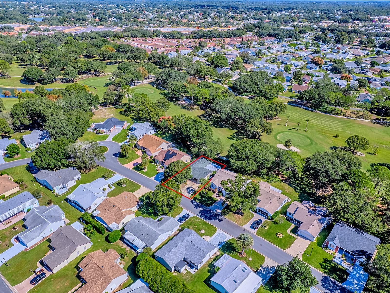 Welcome to this Golf Front Gem Overlooking the Chula Vista Golf Course in the Village of Del Mar! This delightful 2-bedroom, 2-bath home offers 1,332 square feet of comfortable living space in a peaceful, highly sought-after neighborhood. Perfectly situated just a 15-minute walk or a short, scenic golf cart ride from Spanish Springs Town Square, you’ll enjoy easy access to shopping, dining, and nightly live entertainment. You’re also just minutes from The Chula Vista Recreation Center, where you can relax by the pool or enjoy a variety of activities — including volleyball, tennis, shuffleboard, bocce, and the ever-popular pickleball. Golf enthusiasts will love being close to two executive courses: Chula Vista and Mira Mesa. Inside, the home’s open-concept living and dining area is bright, airy, and ideal for entertaining family and friends. The Primary Suite features a spacious closet, an additional large closet in the bath area, and a private room for the toilet and shower. The guest bedroom and bath are conveniently located across the hall from each other, offering comfort and privacy for visitors. Skylights bathe the interior in natural light, enhancing the home’s welcoming atmosphere. Just off the kitchen, you’ll find an indoor laundry room and an inviting enclosed porch — a perfect space for crafts, hobbies, or simply relaxing with a good book. Extra storage is thoughtfully integrated throughout. Outside, enjoy a carport, golf cart garage, and a workshop with a utility sink for added convenience. And here’s the best part — NO BOND! The home also features an enormous Lanai, adding versatile space that can easily be transformed to suit your lifestyle. Imagine starting your day here basking in the soft morning sunlight, or sipping your coffee on the charming brick-paved patio while taking in the park-like views of the 3rd tee of the Chula Vista Golf Course. This home is truly a hidden gem, offering endless potential and the perfect blend of leisure, location, and lifestyle in the heart of The Villages.