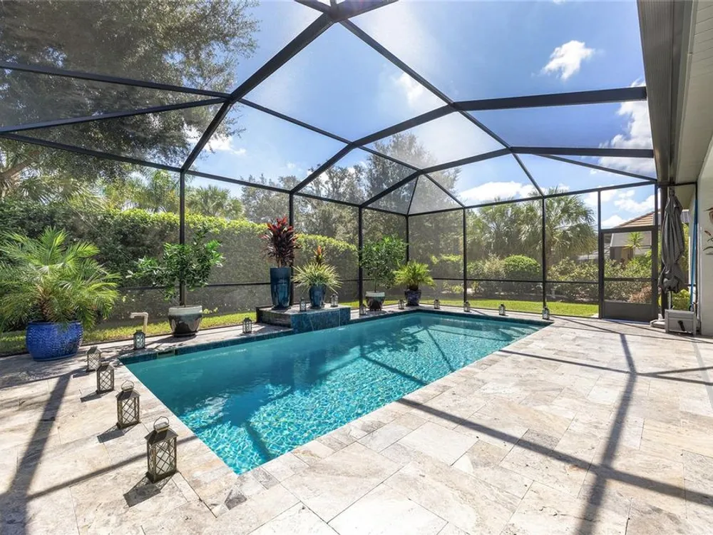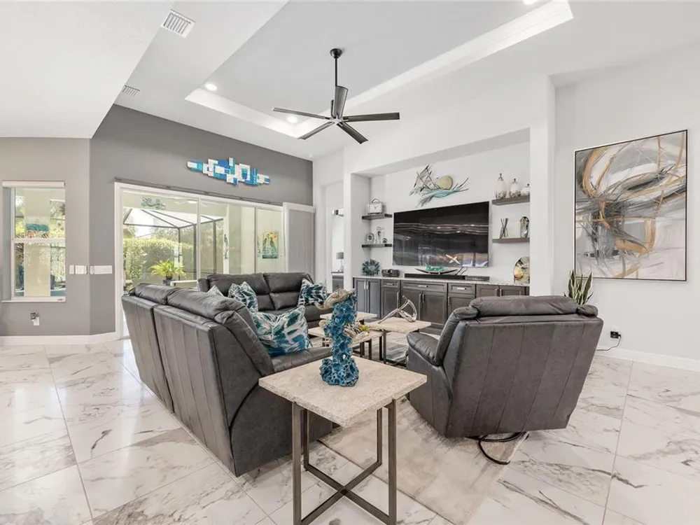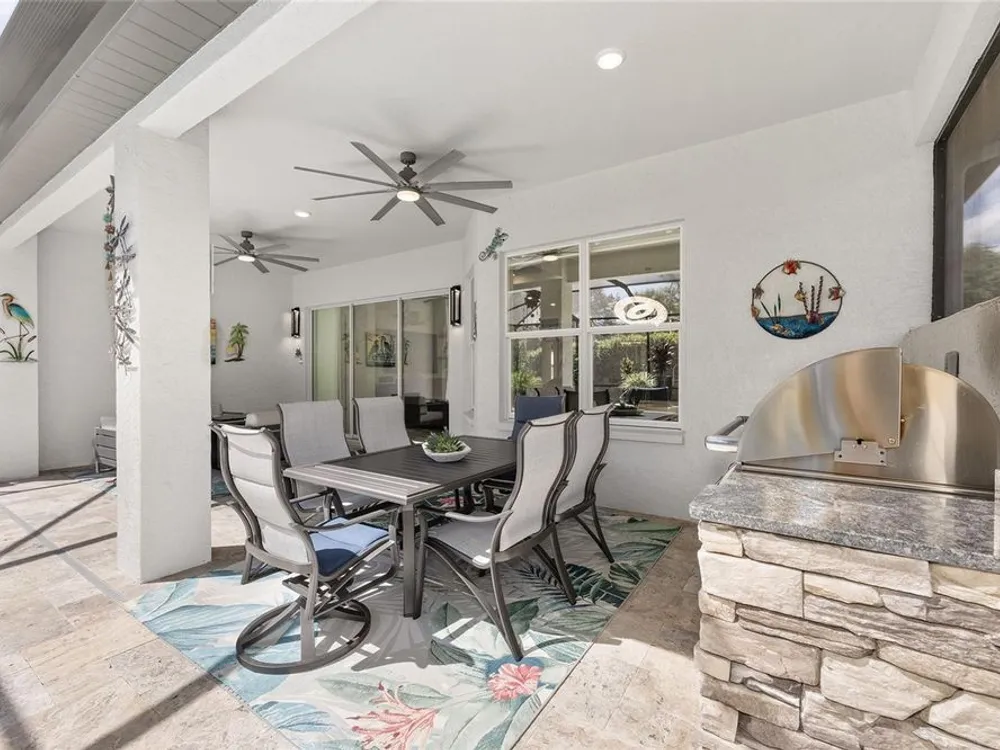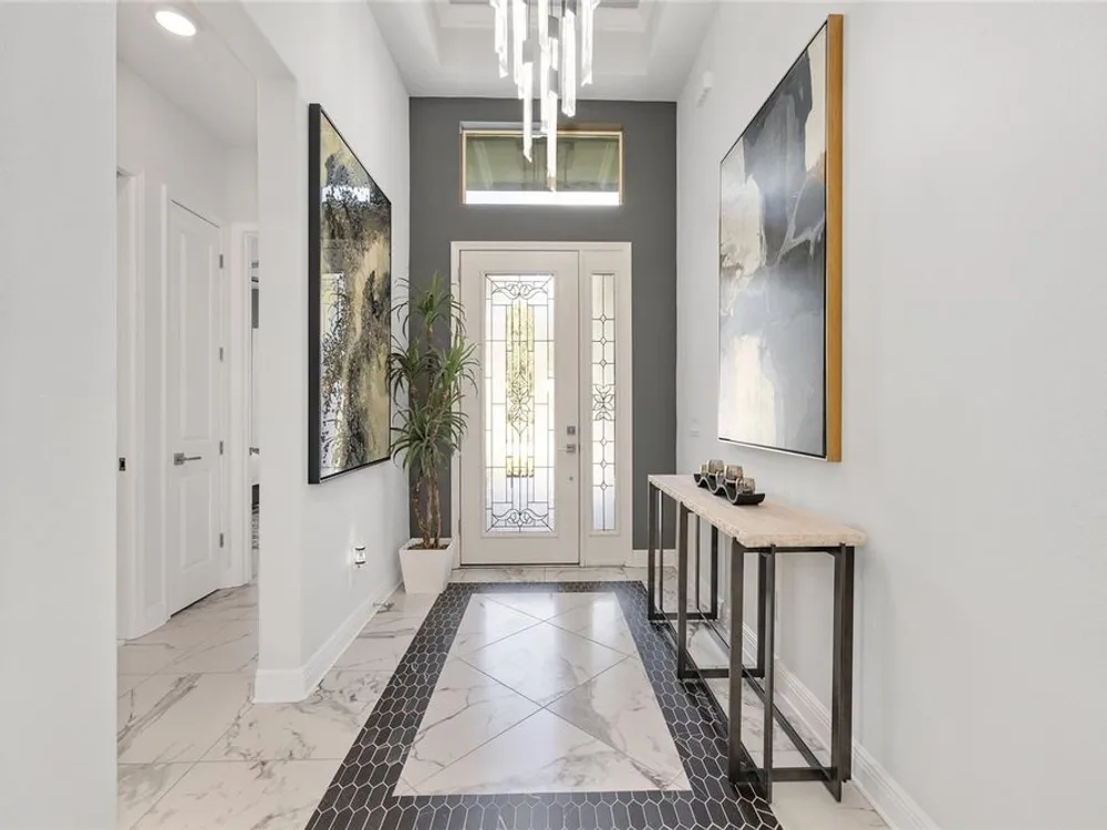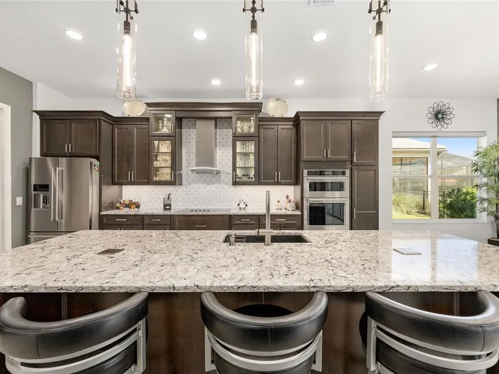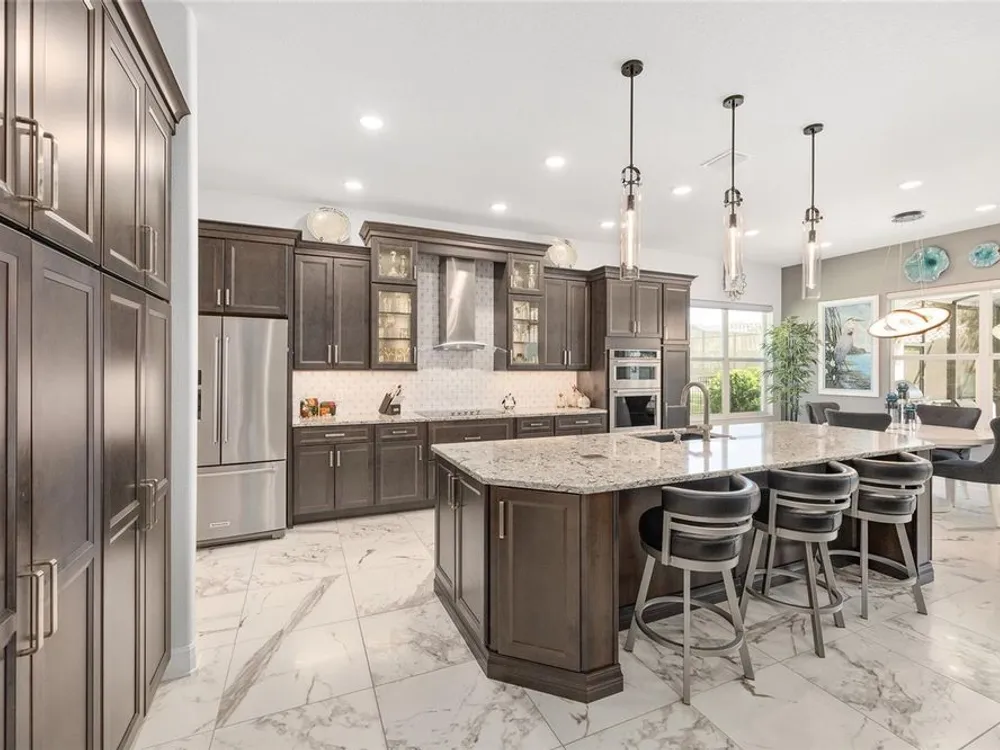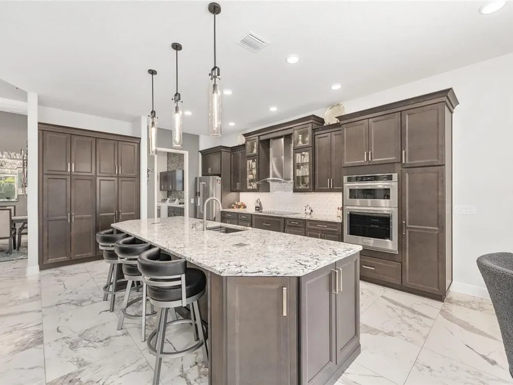 Located in the gated community of Terra Vista, this stunning Hunt Club residence offers custom design and numerous upgrades. With 2,492 square feet, the home includes two bedrooms, a dedicated office or optional third bedroom and immaculate finishes throughout. Why wait on new construction when this home is ready now with top-tier features at every turn. Only the best of the best for this beautiful home. Interior highlights include soaring ceilings, marble flooring throughout, eight-foot doors, lighted tray ceilings and a custom entertainment center in the great room. Premium details include upgraded top-of-the-line flooring, countertops, lighting and custom window coverings, Hunter Douglas Power Sheer Shades and plantation shutters. The kitchen showcases a large 11-foot island with cabinetry on both ends, quartz countertops, a marble backsplash, KitchenAid appliances, custom glass cabinets with interior lighting, LED under-lighting and a dual cabinet pantry with pull-out drawers. The built-out laundry room offers additional storage and workspace. The primary suite provides two walk-in closets, dual vanities and a spacious walk-in shower. An expanded guest suite features a full walk-in shower, while the additional flex room could be used as an office, playroom or a third bedroom. Unmatched elegance in outdoor living where the beautiful Travertine-tiled lanai overlooks the sparkling saltwater pool with a water feature. For your entertaining needs, an outdoor kitchen featuring Fire Magic 36-inch Echelon Diamond Grill with digital controls and rotisserie, providing unlimited entertainment for your friends and family. Built with energy efficiency in mind, the residence includes core foam insulation in the concrete block, a radiant barrier on the roof decking and an upgraded HVAC system with integrated climate and humidity control. The 24-by-24-foot garage with an 18-foot door provides ample storage for vehicles and recreational equipment. Terra Vista offers three 18-hole golf courses, a spa and fitness center, dining venues, tennis courts, a dog park, trails and more. A full list of amenities is available on the Citrus Hills website.