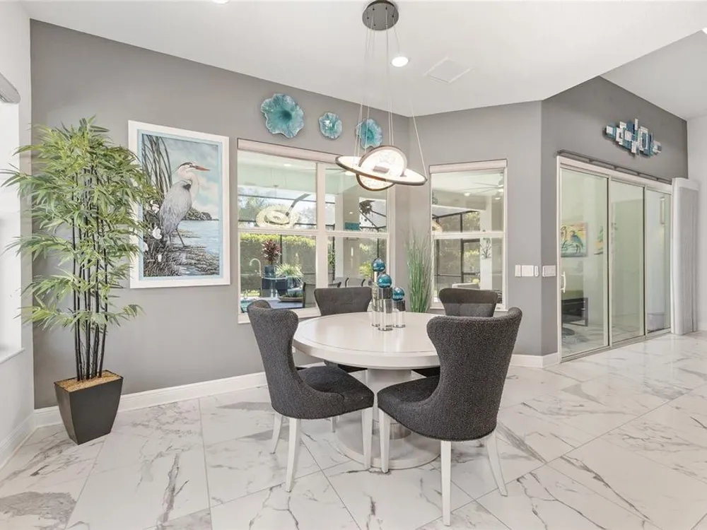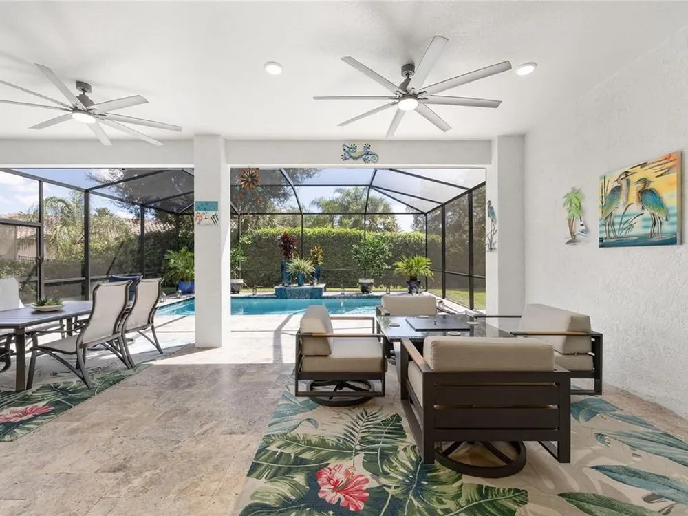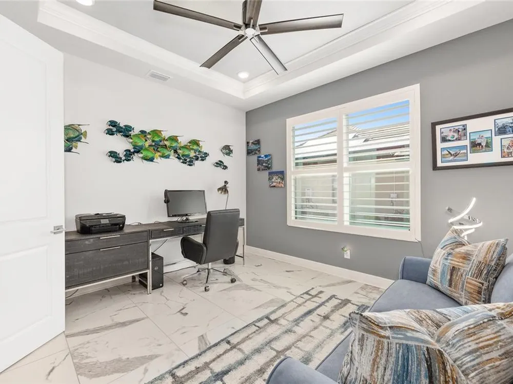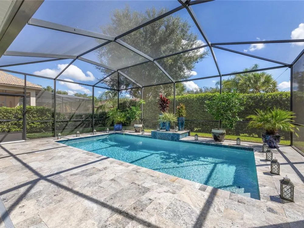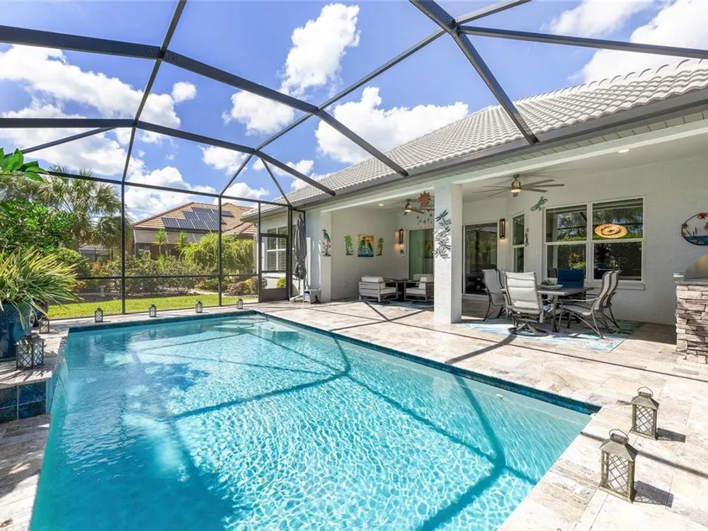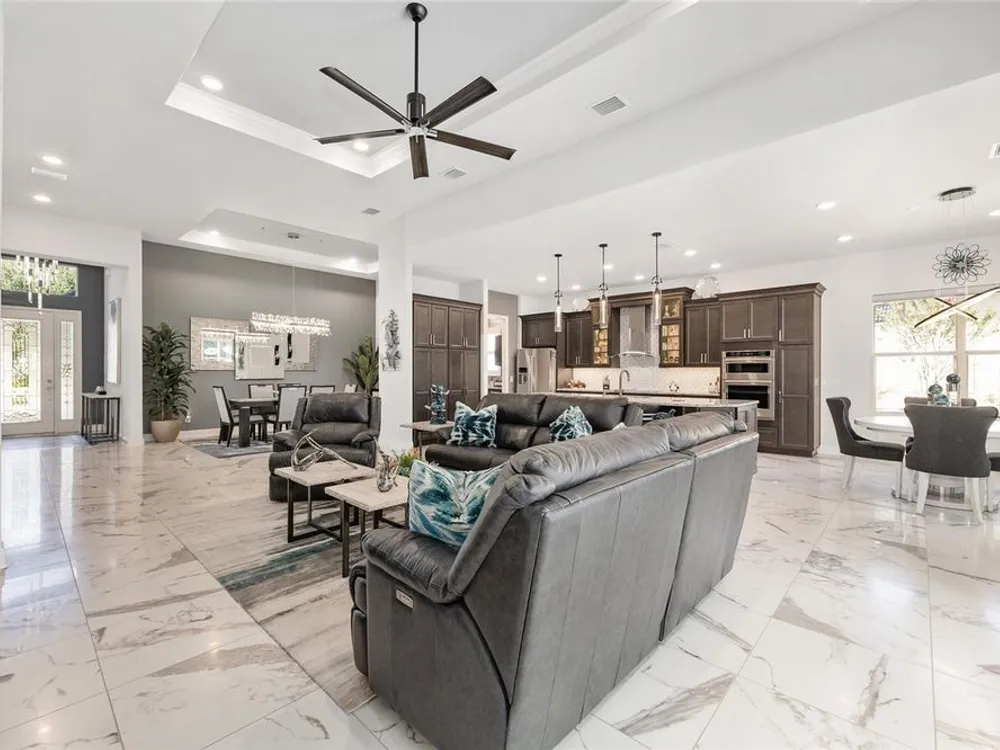 Located in the gated community of Terra Vista, this stunning Hunt Club residence offers custom design and numerous upgrades. With 2,492 square feet, the home includes two bedrooms, a dedicated office or optional third bedroom and immaculate finishes throughout. Why wait on new construction when this home is ready now with top-tier features at every turn. Only the best of the best for this beautiful home. Interior highlights include soaring ceilings, marble flooring throughout, eight-foot doors, lighted tray ceilings and a custom entertainment center in the great room. Premium details include upgraded top-of-the-line flooring, countertops, lighting and custom window coverings, Hunter Douglas Power Sheer Shades and plantation shutters. The kitchen showcases a large 11-foot island with cabinetry on both ends, quartz countertops, a marble backsplash, KitchenAid appliances, custom glass cabinets with interior lighting, LED under-lighting and a dual cabinet pantry with pull-out drawers. The built-out laundry room offers additional storage and workspace. The primary suite provides two walk-in closets, dual vanities and a spacious walk-in shower. An expanded guest suite features a full walk-in shower, while the additional flex room could be used as an office, playroom or a third bedroom. Unmatched elegance in outdoor living where the beautiful Travertine-tiled lanai overlooks the sparkling saltwater pool with a water feature. For your entertaining needs, an outdoor kitchen featuring Fire Magic 36-inch Echelon Diamond Grill with digital controls and rotisserie, providing unlimited entertainment for your friends and family. Built with energy efficiency in mind, the residence includes core foam insulation in the concrete block, a radiant barrier on the roof decking and an upgraded HVAC system with integrated climate and humidity control. The 24-by-24-foot garage with an 18-foot door provides ample storage for vehicles and recreational equipment. Terra Vista offers three 18-hole golf courses, a spa and fitness center, dining venues, tennis courts, a dog park, trails and more. A full list of amenities is available on the Citrus Hills website.