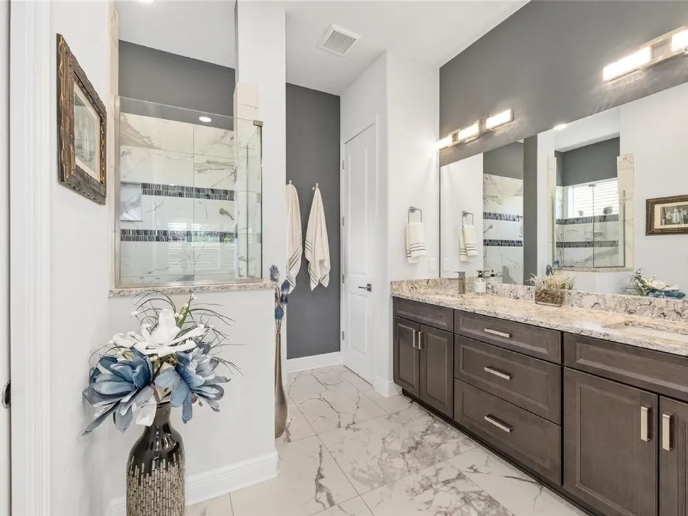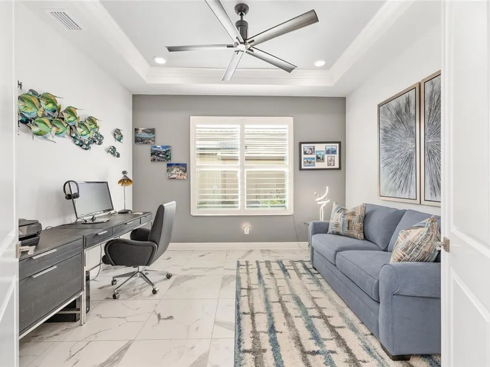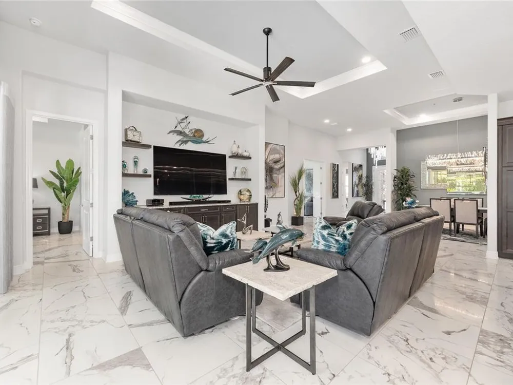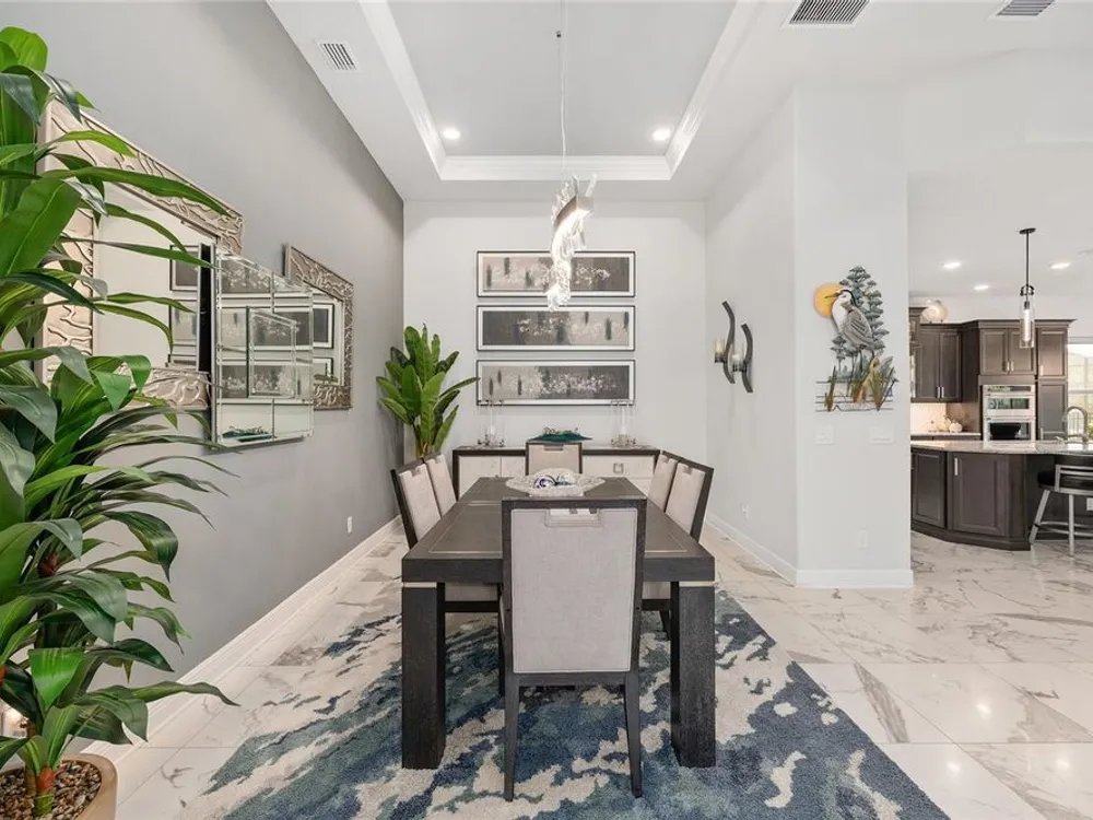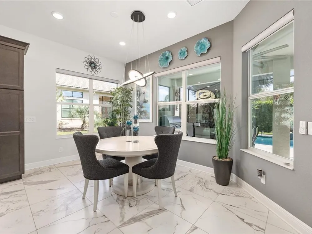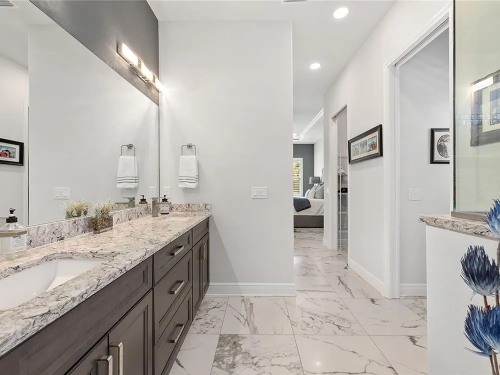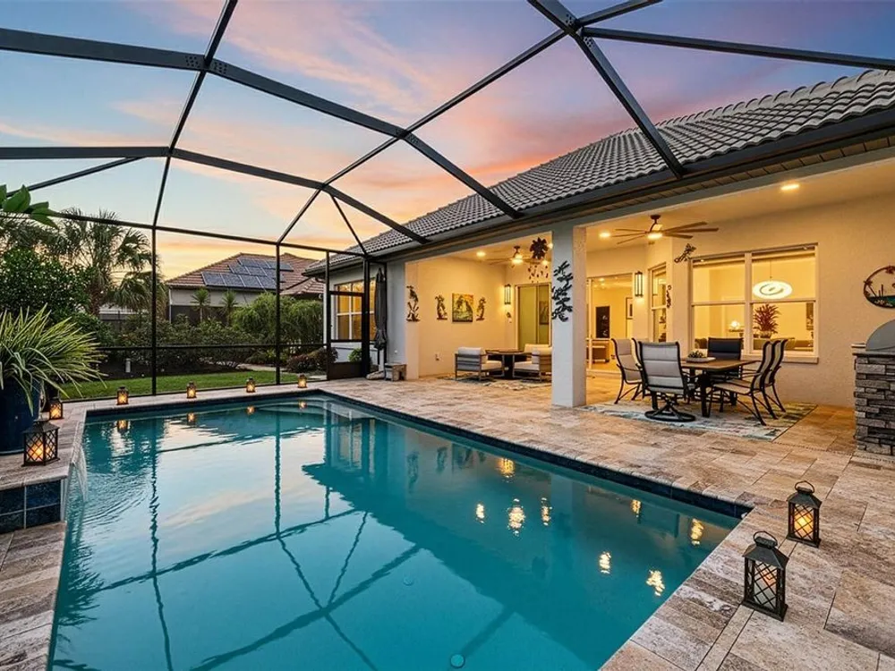 Located in the gated community of Terra Vista, this stunning Hunt Club residence offers custom design and numerous upgrades. With 2,492 square feet, the home includes two bedrooms, a dedicated office or optional third bedroom and immaculate finishes throughout. Why wait on new construction when this home is ready now with top-tier features at every turn. Only the best of the best for this beautiful home. Interior highlights include soaring ceilings, marble flooring throughout, eight-foot doors, lighted tray ceilings and a custom entertainment center in the great room. Premium details include upgraded top-of-the-line flooring, countertops, lighting and custom window coverings, Hunter Douglas Power Sheer Shades and plantation shutters. The kitchen showcases a large 11-foot island with cabinetry on both ends, quartz countertops, a marble backsplash, KitchenAid appliances, custom glass cabinets with interior lighting, LED under-lighting and a dual cabinet pantry with pull-out drawers. The built-out laundry room offers additional storage and workspace. The primary suite provides two walk-in closets, dual vanities and a spacious walk-in shower. An expanded guest suite features a full walk-in shower, while the additional flex room could be used as an office, playroom or a third bedroom. Unmatched elegance in outdoor living where the beautiful Travertine-tiled lanai overlooks the sparkling saltwater pool with a water feature. For your entertaining needs, an outdoor kitchen featuring Fire Magic 36-inch Echelon Diamond Grill with digital controls and rotisserie, providing unlimited entertainment for your friends and family. Built with energy efficiency in mind, the residence includes core foam insulation in the concrete block, a radiant barrier on the roof decking and an upgraded HVAC system with integrated climate and humidity control. The 24-by-24-foot garage with an 18-foot door provides ample storage for vehicles and recreational equipment. Terra Vista offers three 18-hole golf courses, a spa and fitness center, dining venues, tennis courts, a dog park, trails and more. A full list of amenities is available on the Citrus Hills website.