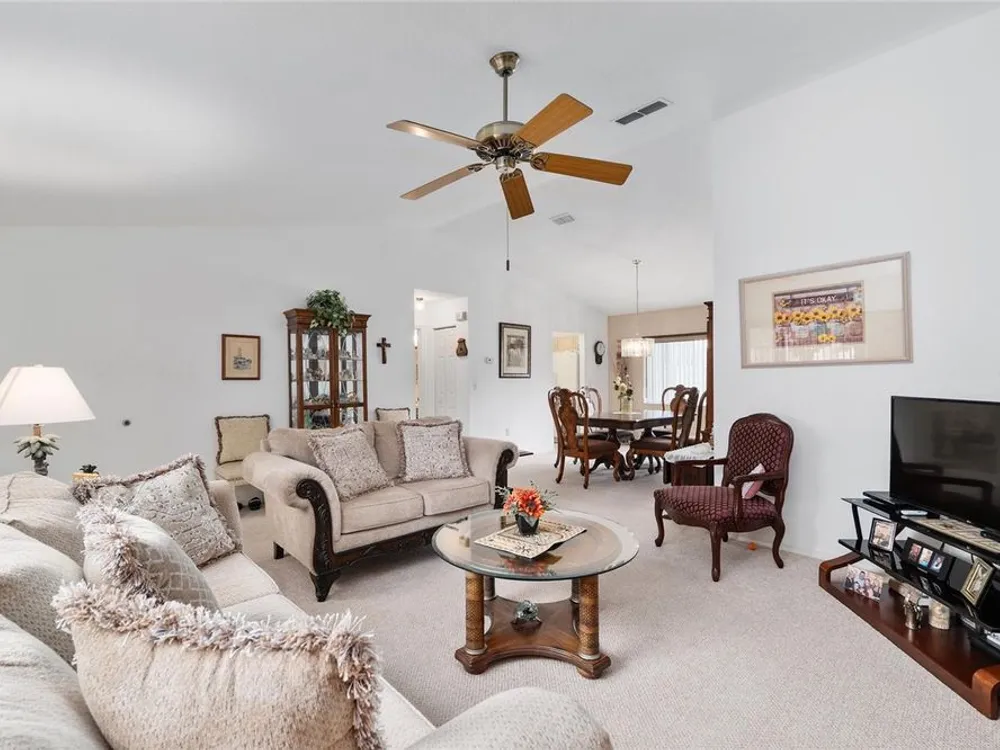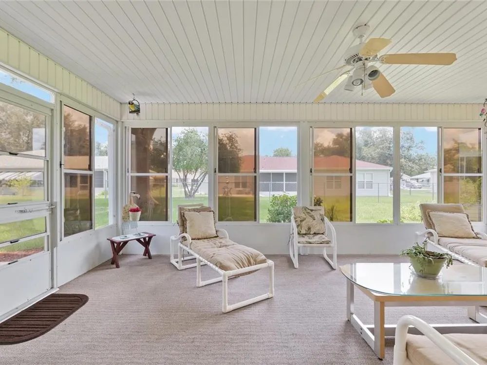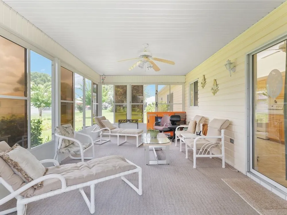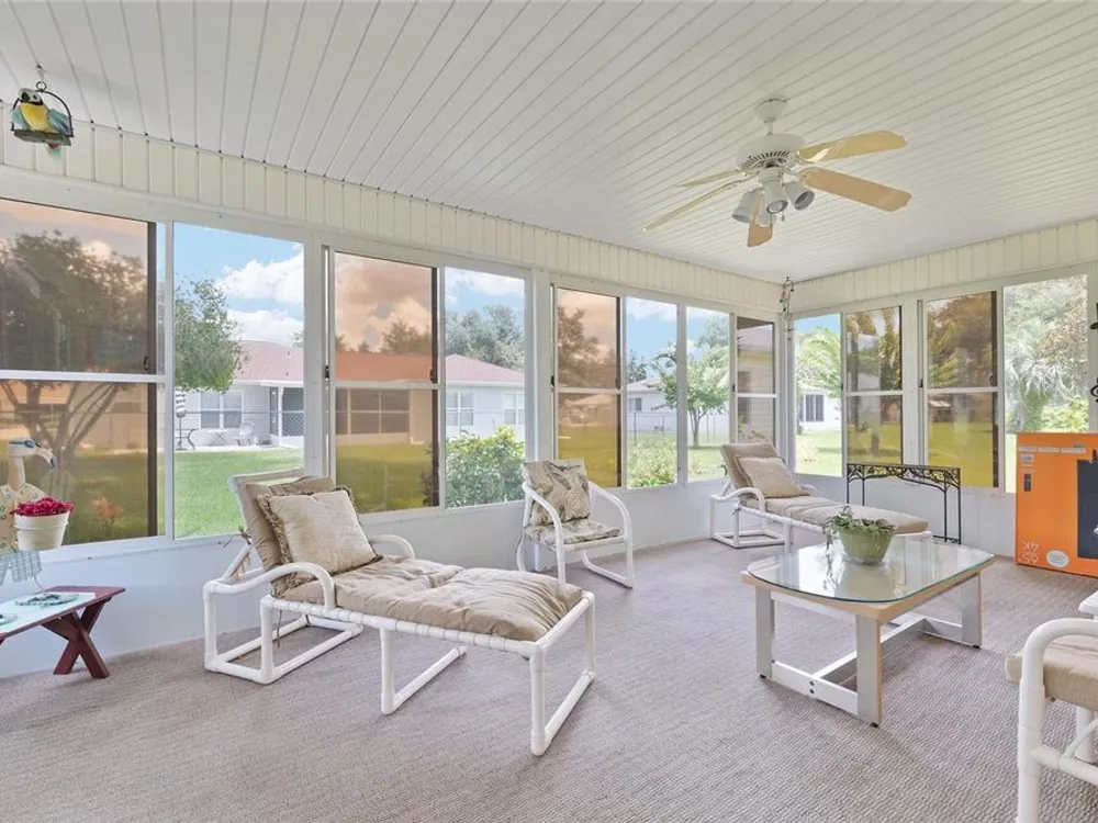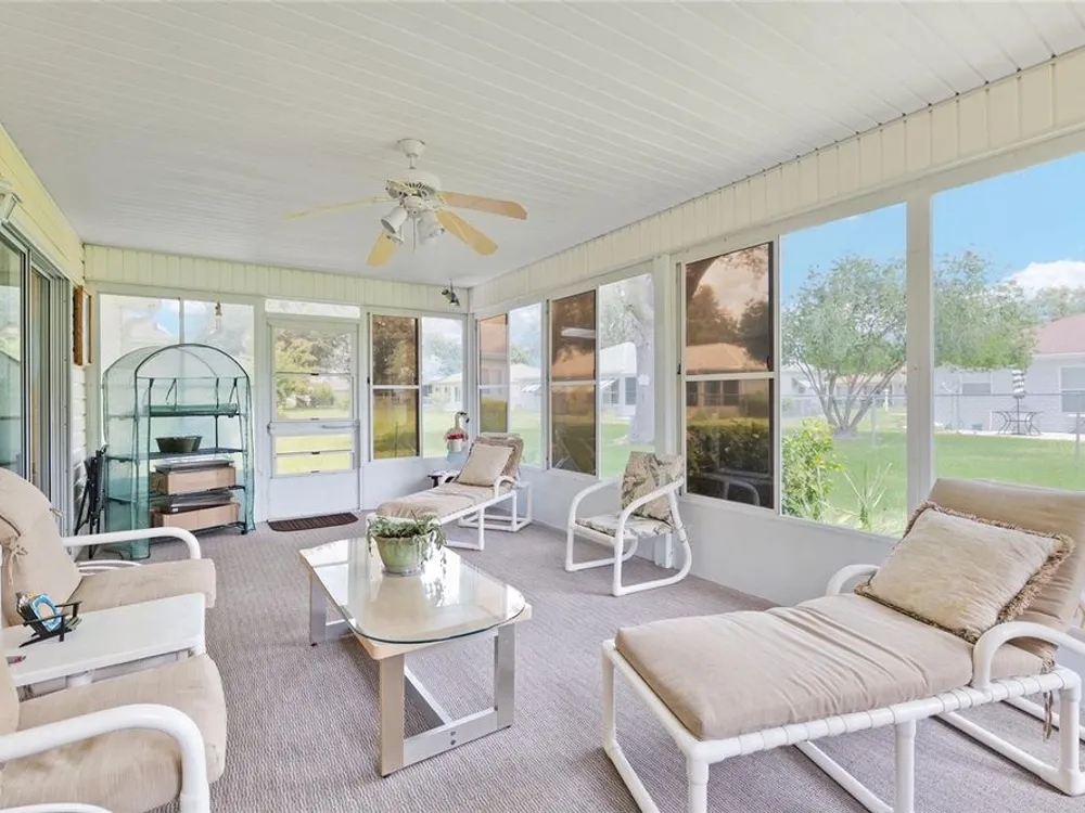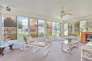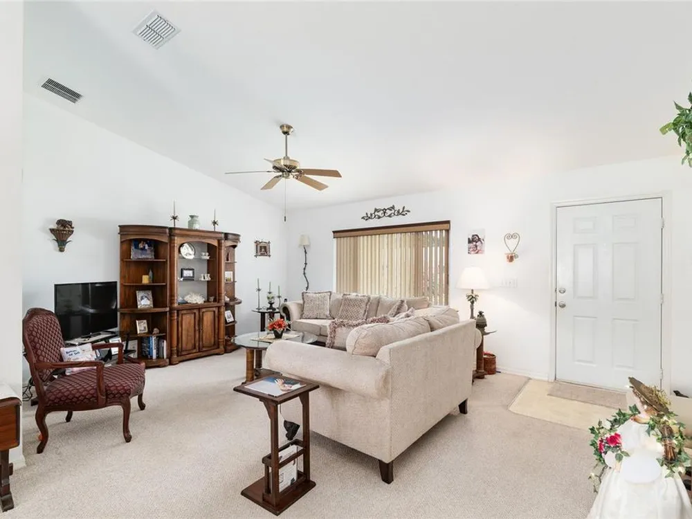 Located in the sought-after 55+ gated golf community of Spruce Creek Preserve, this charming Fir model home offers comfort, functionality, and an unbeatable location backing up to the 4,000-acre Ross Prairie Nature Preserve. It features a new roof (2022) with roof fan, maple kitchen cabinets, large hybrid water heater, fans in every room, and a sprinkler system. A versatile bonus room off the breakfast nook makes a great home office or hobby space, while the large screened porch with vinyl windows is ideal for relaxing or entertaining. The home includes all appliances except the washer, offering immediate move-in convenience. Enjoy quiet country living just minutes from groceries, gas, restaurants, shopping, medical facilities, and miles of hiking and biking trails. Residents have access to an impressive lineup of amenities including golf, heated pool, hot tub, pickleball, tennis, shuffleboard, cornhole, fitness center, and a wide variety of social activities such as yoga, water aerobics, game nights, bingo, dances, potluck dinners, and travel clubs—everything you need for an active and fulfilling lifestyle.