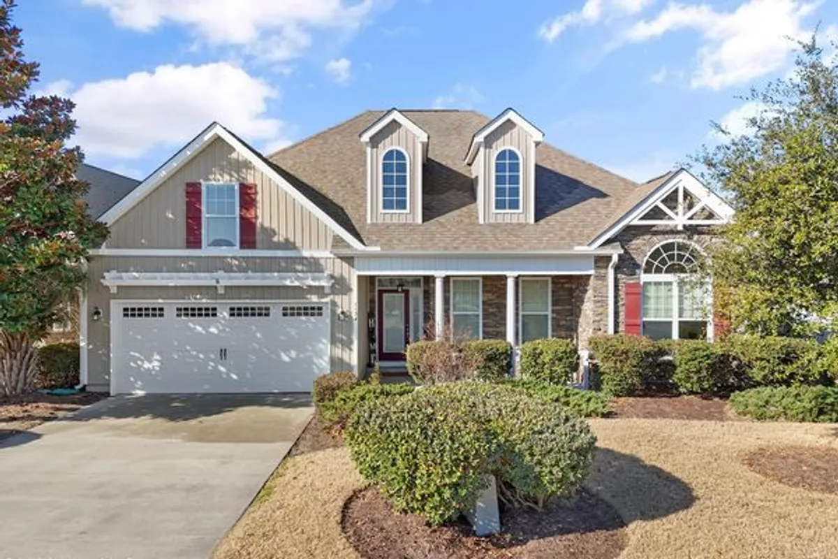 This STUNNING Bill Clark built home shows quality architecture that will withstand the test of time. Here you will enjoy a waterfront view and over 2,000 heated square feet. Enjoy a beautiful split floor plan, allowing you privacy from your guests. The primary suite is spacious and will have a water front view and an oversized his and hers walk in-closet. Located on the first floor and offering a low-entry level walk-in shower, garden soaker tub, toilet room and custom built in cabinets with a vanity. The kitchen will be finished with beautiful, high quality granite countertops and stainless steel appliances; to include a 2024 side by side refrigerator and 2024 built-in microwave. Your bar top will easily seat 4 guests and have a formal dining area with a water view. Enjoy reading in your Carolina sun-room, located on the back side of the home that over looks the pond and offers afternoon sun. Your guest suite will include 2 bedrooms, both with walk in closets. The guest bath will feature a tub/shower combo with a very large linen closet, located in the hall.The upstairs bonus area is spacious and has its own closet area. This home's HVAC unit was upgraded in 2019 and is on a bi-annual service schedule through Sandpiper Heating and Air. Located within walking distance to the community pool, clubhouse and fitness facility. Sunset Ridge clubhouse will offer a full culinary kitchen, large presidents table for gatherings and a beautifully decorated sitting area. HOA fees at $118.75 per month and will include landscaping with full yard mow, shrub trimming and mulch once a year. Conveniently located close to local golf courses, boat ramps, beaches, shopping, dining and healthcare options. Pristine white sandy beaches, mild winters and leisure sporting activities available here. Located less than 10 minutes +/- from Sunset Beaches shoreline.
