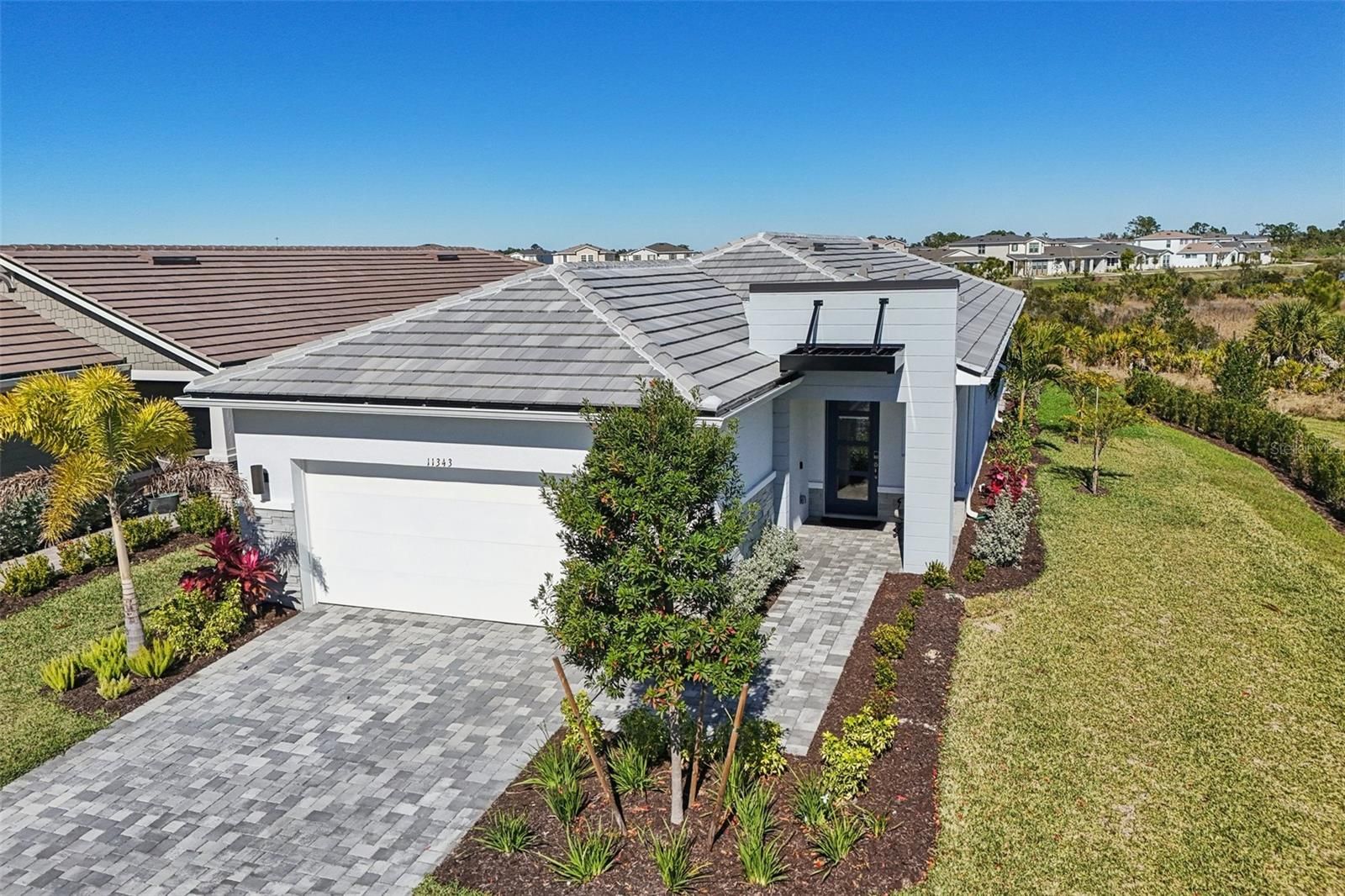 Elegant, resort-style living awaits in Brightmore at Wellen Park, a gated 55+ community where privacy, sophistication, and an active, social lifestyle come together seamlessly. This beautifully designed two-bedroom plus den home with a two-car garage offers a thoughtfully planned open-concept layout, ideal for both everyday comfort and entertaining with style. A light-filled foyer welcomes you into the home, featuring 8-foot doors, impact glass throughout, and timeless porcelain tile flooring flowing effortlessly through the main living areas. Just off the foyer, the den with double glass doors provides a versatile space—perfect as a home office, reading retreat, media room, or hobby room—allowing you to customize the home to your lifestyle. The bright kitchen is both functional and stunning, showcasing quartz countertops, crisp white wood cabinetry with soft-closing doors and pull-out drawers, a tile backsplash, premium appliances, a spacious walk-in pantry, and an oversized island with ample seating—ideal for casual meals. The kitchen flows seamlessly into the expansive great room and dining area, creating a welcoming and open atmosphere. The primary suite offers a serene retreat, complete with upgraded luxury vinyl flooring, a generous walk-in closet with matching upgraded flooring, and an ensuite bath featuring an oversized walk-in shower. The guest bedroom and closets also feature upgraded luxury vinyl flooring, adding both style and durability. A well-appointed second full bathroom with a walk-in shower, a half bath off the kitchen, and a large laundry room with a raised washer and dryer enhance convenience and comfort throughout the home. Step outside to your private outdoor oasis. The elegant travertine pool deck, paired with a clear-view screen, overlooks a tranquil lake and preserve, providing a serene setting for sunrise coffees, sunset evenings, and poolside relaxation. As an added bonus, the 2-car garage comes with an upgraded epoxy finish. The home’s location offers exceptional privacy while remaining just steps from the community’s amenity center. Brightmore at Wellen Park provides an unparalleled lifestyle with a lakefront clubhouse, resort-style pool and lap pool, pickleball courts, a state-of-the-art fitness center, group fitness studio, dog park, and a café and bar. Residents enjoy a full social calendar featuring events, clubs, classes, and activities that keep every day engaging. The community is perfectly situated near the Atlanta Braves Spring Training Complex with seasonal events. Downtown Wellen Park offers waterfront dining, boutique shopping, live music, farmers markets, walking trails, and vibrant community gatherings. Just a short drive away, Downtown Venice provides charming coastal living with beaches, historic architecture, art galleries, festivals, and acclaimed restaurants. This exceptional residence combines sophisticated design, premium upgrades, and an unmatched lifestyle—offering luxury living at its finest in one of Southwest Florida’s most desirable 55+ communities. Schedule your showing today!