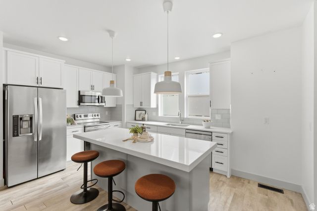 OPEN HOUSE Saturday, 11am-2pm. Beautiful Daybreak townhome located in Highland Park Village offering modern design, energy-efficient features, and low-maintenance living. This well-maintained 3-bedroom, 2.5-bath home features an open-concept layout ideal for both everyday living and entertaining. The bright kitchen flows seamlessly into the main living space and opens to a covered deck - perfect for relaxing or grilling. The spacious primary suite includes a walk-in closet and private bath, while additional bedrooms provide flexibility for guests, a home office, or family living. A large 2-car attached garage provides extra storage and everyday convenience. Built with efficiency and smart living in mind, this home includes high-efficiency HVAC, a tankless water heater, and energy-saving features designed for comfort and lower utility costs. Enjoy the Daybreak lifestyle with access to miles of trails, parks, lakes, community pools, fitness amenities, concerts, farmers markets, and year-round community events. Conveniently located near shopping, dining, schools, and Mountain View Corridor for easy commuting. Square footage figures are provided as a courtesy estimate only. Buyer is advised to obtain an independent measurement.
