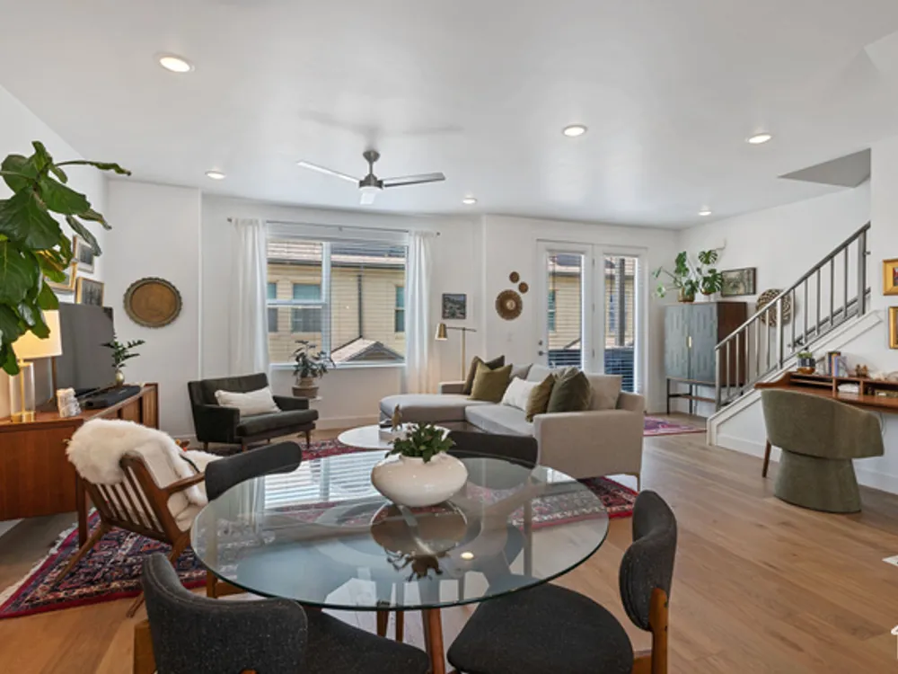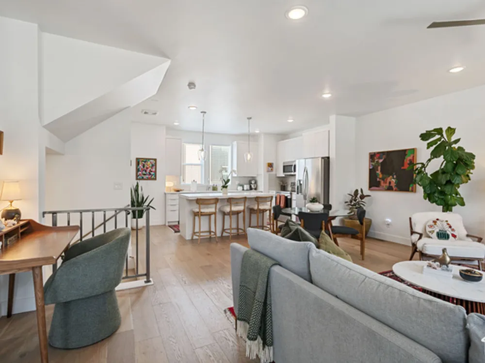Improved price.. Welcome to this beautifully maintained townhouse in a quiet corner of Daybreak! This 3-bed, 3-bath home features 9-foot ceilings, Recently upgraded oak hardwood floors, and tons of natural light. The kitchen includes soft-close European-style cabinets, quartz countertops, and stainless steel LG appliances. Enjoy uniform blinds throughout, smart home features like a Ring doorbell, Ecobee thermostat, and MyQ garage opener. The oversized finished garage includes a 220V EV outlet and tankless water heater. Located near Aspen Elementary, new Bees stadium, Megaplex and the new Watercourse, with access to parks, pools, and trails. This home offers the best of Daybreak living. Schedule a showing today!