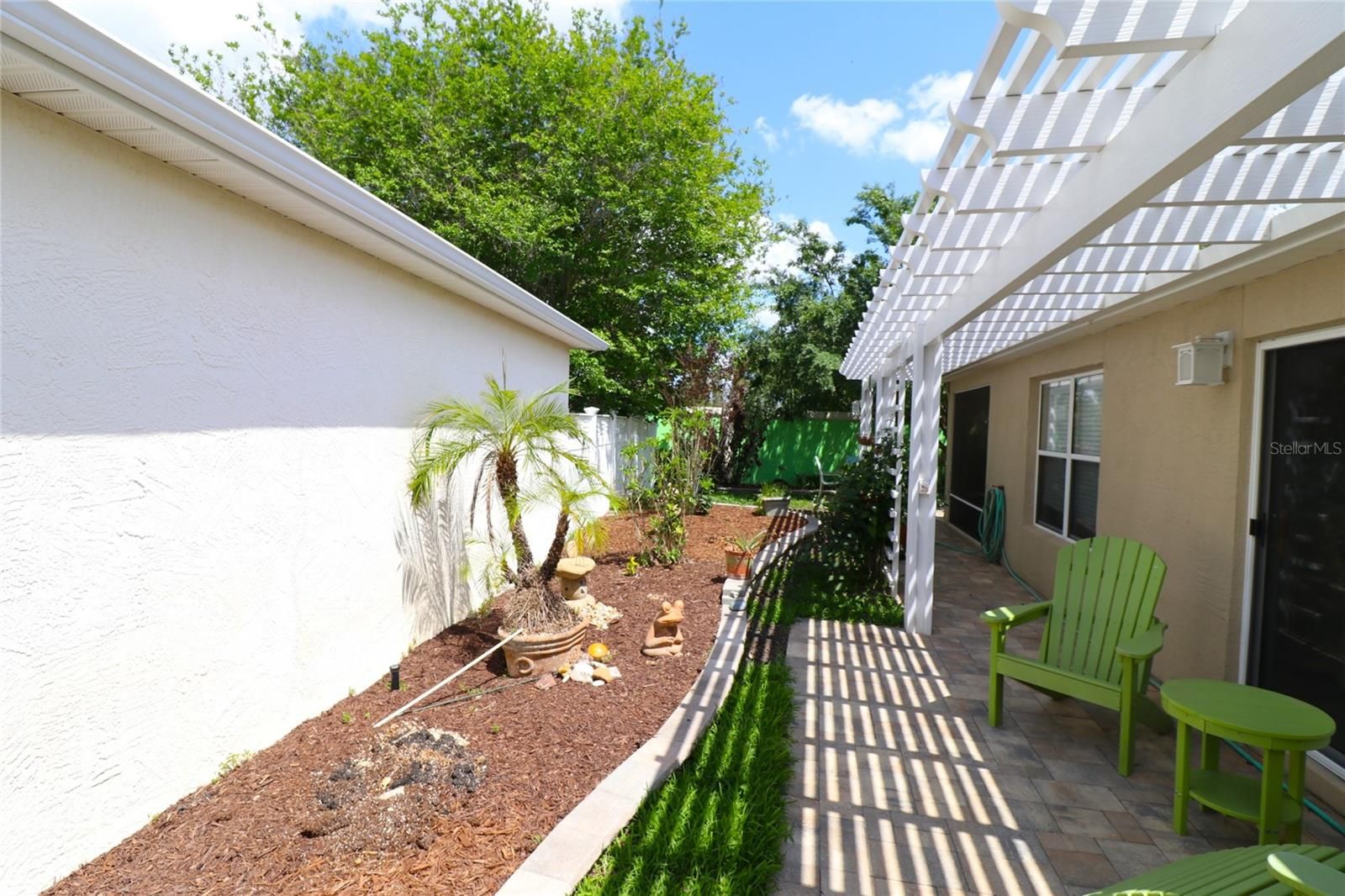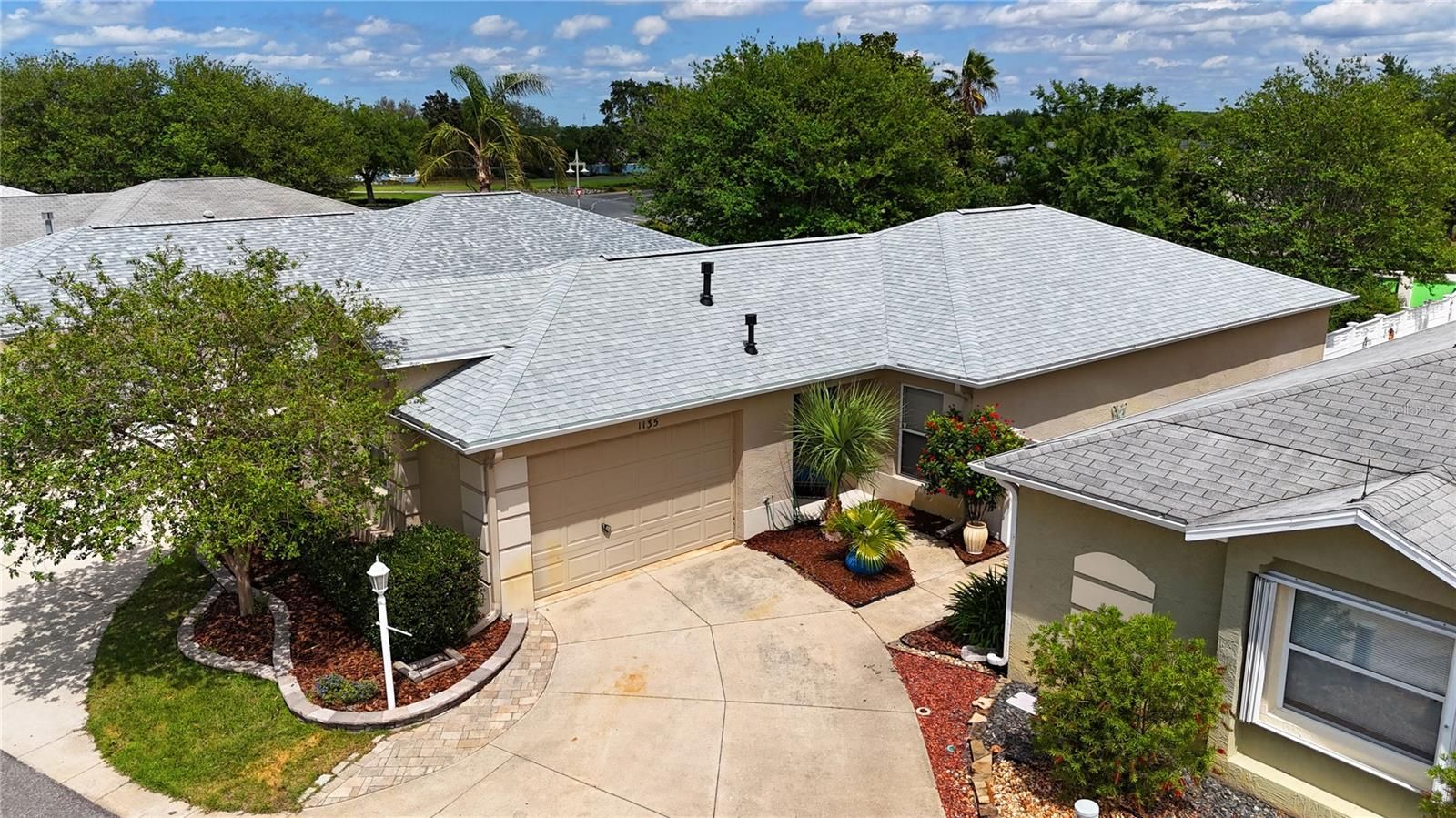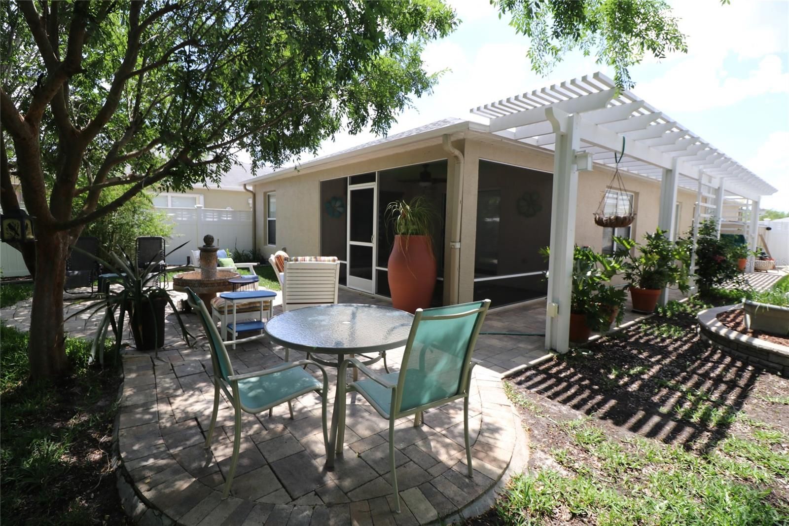 NEW. PRICE.. MOTIVATED SELLER Welcome to your perfect slice of The Villages lifestyle! This charming 2/2 Beauregard Courtyard Villa in the soughth-after Village of Virginia Trace (Stillwater Villas) is move-in ready and just waiting for you — whether you’re looking for a seasonal getaway, a smart investment, or your full-time Florida dream home. Step inside through the leaded glass front door and you’ll be greeted by a bright, open kitchen with room for a cozy breakfast table, plus a newer refrigerator and dishwasher. The entire home features light beige ceramic tile — no carpet here! The spacious Primary Suite boasts dual sinks, a walk-in tiled shower, custom closet built-ins, and sliders that open right to the enclosed lanai, so you can enjoy peaceful courtyard views every morning. Bedroom #2 is perfect for guests or a home office, with its own full bath nearby. The real showstopper? Your private courtyard oasis! Enjoy shady trees, built-in garden beds, and a lighted pergola for evening relaxation. The enclosed lanai has a freshly painted floor, and much of the furniture stays — plus, the golf cart is INCLUDED! Recent updates: Roof (2025), HVAC (2023), fresh paint in the kitchen, and a professional deep clean from top to bottom. All of this is just a short golf cart ride to Lake Sumter Landing, where shopping, dining, and nightly entertainment await. Don’t wait — homes in this location don’t last long! Annual Costs: Fire $320.71 | Maint $298.20 | Bond Pmt $487.46 | Bond Balance $4,057 | Taxes $1,691.97