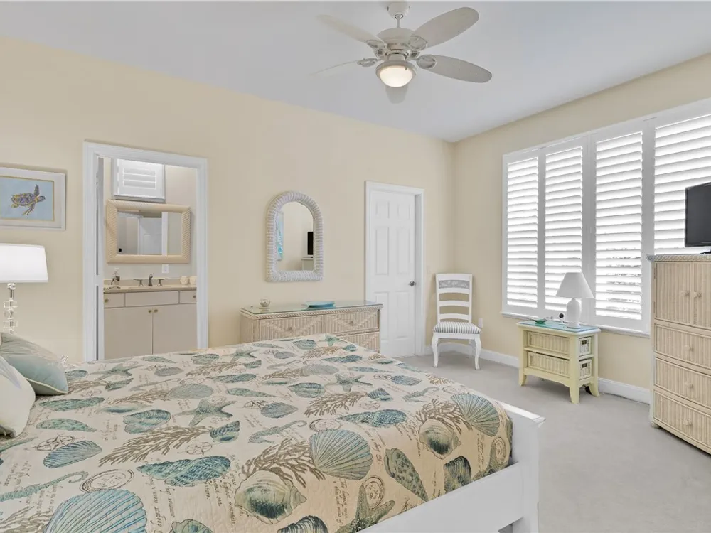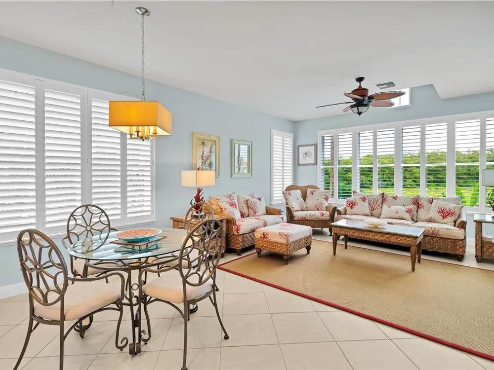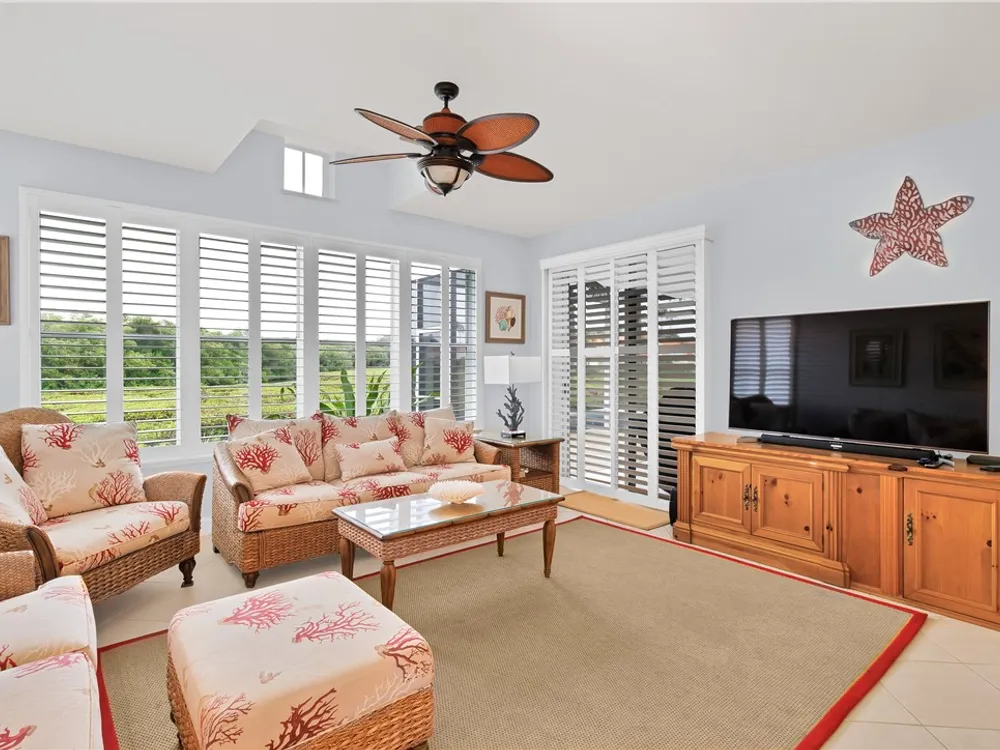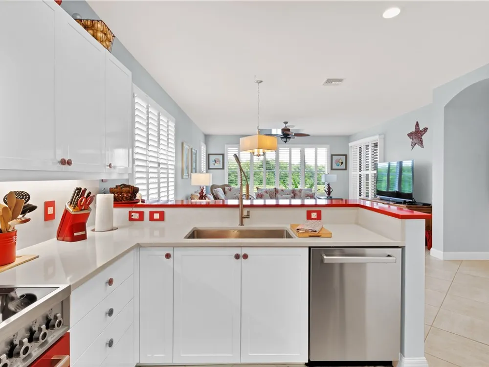 Welcome to this stunning 2-bedroom, 2.5-bathroom home with a versatile den/office and spacious family room in the sought-after Harbor Links community in Grand Harbor. Designed for comfort and style, this home boasts an open, airy layout with natural light streaming in through plantation shutters throughout. The kitchen features bold F. Bertazzoni red and stainless-steel appliances, perfect for preparing meals in style. Whether you’re relaxing in the family room, working in the den, or enjoying a quiet evening on the porch, this home offers an ideal blend of luxury and serenity.