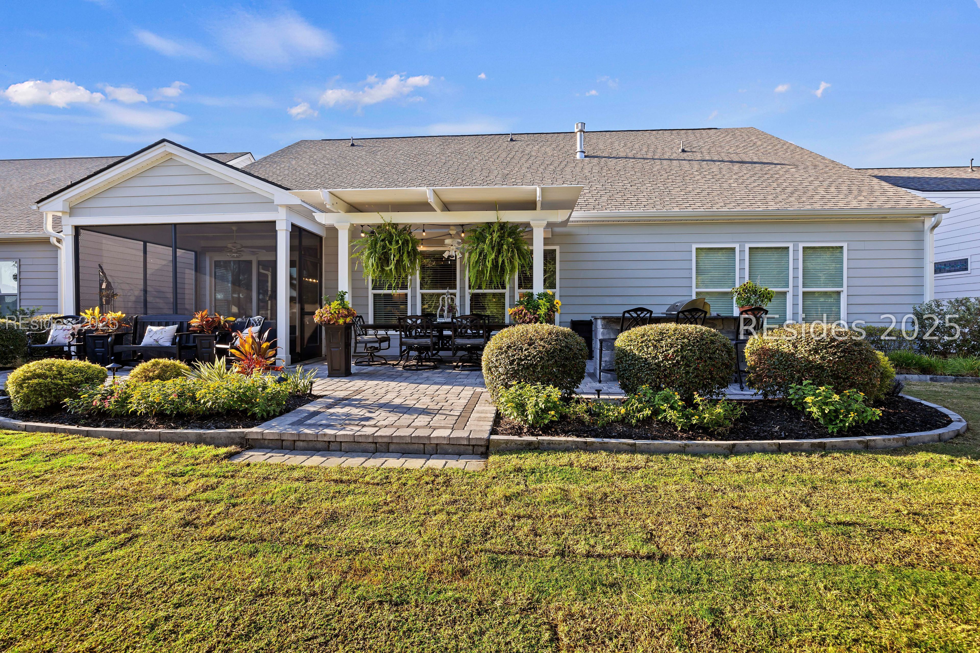 COME AND SEE WHAT EXCEPTIONAL LOOKS LIKE! This customized home is move-in ready and checks all the boxes! High-end, quality finishes with superb and interesting ideas throughout. Impossible to compare......Golf AND privacy of woods/landscape, indoor AND outdoor kitchen, 3 fabulous reception/entertainment areas AND fully integrated theater system with 6 reclining chairs and beverage center, outstanding workroom/laundry AND study/library, screened- in porch AND large outside paved patio, easy access to the many Sun City amenities AND most affordable fees, oversized garage AND golf cart bay, fantastic, huge walk-up storage AND multiple, spacious customized closets, AND, AND, AND...This 3800 plus sq ft home is in a league all of its own! This home must be viewed to appreciate the outstanding use of space, unique design features and excellent quality with unparalleled comfort and convenience.