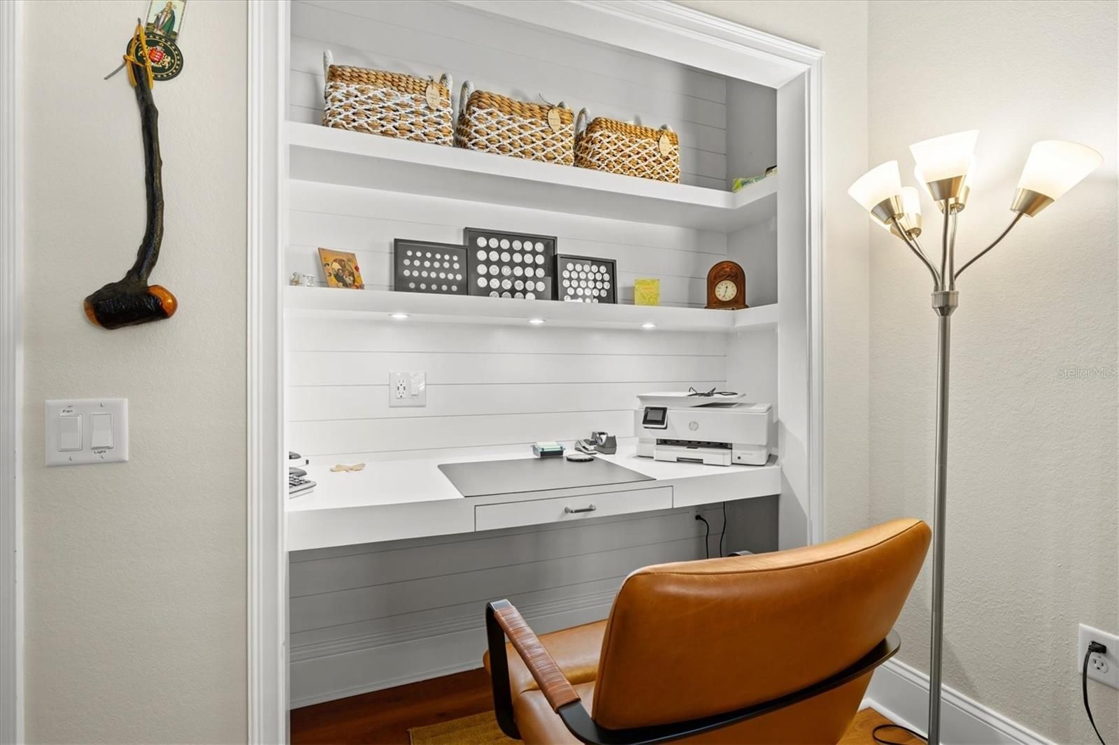 - Ceiling Fan(s), Eat-in Kitchen, High Ceilings, In-Wall Pest Control, Living/Dining Room, Open Floorplan, Main Level Primary, Solid Surface Counters, Solid-Wood Cabinets, Split Bedrooms, Thermostat, Walk-In Closet(s), Window Treatments