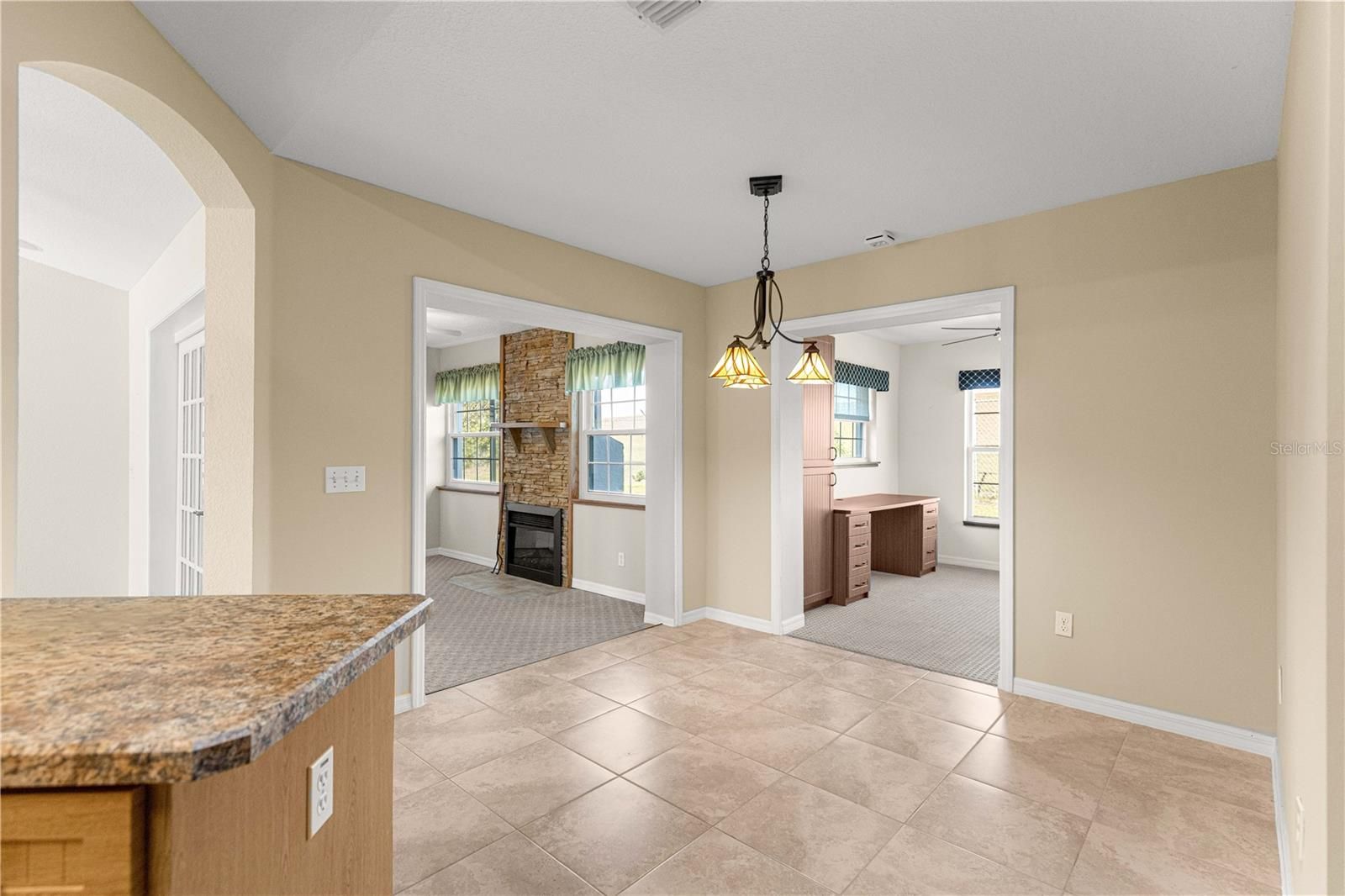 Don't miss this beautiful 3/2 with 1717 sq feet of living space. NEW roof in 2016, new 10x11 addition and a solar tube in 2015. This home has been well maintained with a private back yard and lush landscaping. There was a 12x24 screened lanai added with privacy. The master bedroom has dual sinks, beautiful walk-in shower, walk-in closets and nice carpet. There is a cozy family room with a working electric fireplace for your enjoyment. There is an additional office, 10x11 that is carpeted. Great location in Stonecrest that has 4 pools one of which is a large indoor pool. There are tennis courts, pickleball courts, softball field, and a billiard room. This home is near shopping and minutes from the Villages. Don't miss this one!