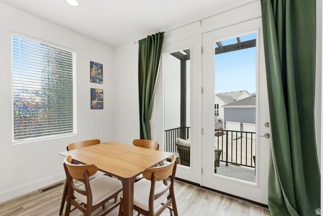 Welcome home to this bright and beautifully maintained 2020 end unit townhome, offering modern features, great natural light, and a convenient location near Daybreak. Smart home features include a smart garage door, front door lock, Nest thermostat, and smart appliances. The home also features a tankless water heater,large closets, and slow close cabinetry in both the kitchen and bathrooms for a polished and functional finish. Step out onto the balcony to enjoy views of the copper mine and surrounding landscape. You can also see the Wasatch front mountain range from the living room window. In the front, there's a large common green space with beautifully maintained landscaping perfect for to relaxing, walking pets, or gather with neighbors. Located in a quiet, clean, and pet friendly neighborhood, this home offers quick access to Downtown Daybreak, Daybreak Lake, the new Daybreak Water Course, Mountain View Corridor, and plenty of nearby parks, shopping, and restaurants. Local favorite Biscotts Cafe is even within walking distance.