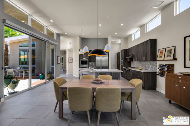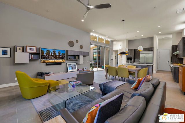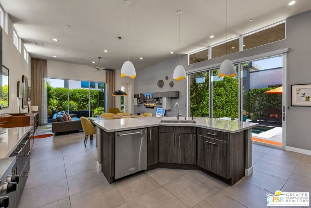 This stunning Toll Brothers "Aldea" floor plan home in Escena blends modern design with effortless indoor-outdoor living. Featuring 2 bedrooms plus a versatile den/office, 2.5 baths, and soaring ceilings with clerestory windows. The open layout showcases a chef's kitchen with quartz countertops, custom backsplash, a unique center island with breakfast bar, and built-in KitchenAid appliances that connect seamlessly to the expansive great room and dining area. Tall sliding doors flood the home with natural light and open to multiple outdoor spaces, including a South-facing patio with private Spa and barbecue area as well as a second covered patio with private gas fire pit. The spacious primary suite offers a walk-in closet, dual vanities, soaking tub, and oversized shower, while the junior ensuite provides privacy for guests. Additional highlights include a powder room, separate laundry with sink, an attached 2-car garage, custom window treatments on Low-E windows, an energy-efficient leased solar system, a whole house water softener, a reverse osmosis system for drinking water, and a tankless water heater. Best of all, this property is available turnkey furnished, per inventory list. Set within Escena's beautifully landscaped, gated community anchored by a Nicklaus-designed championship golf course, residents enjoy access to a lovely clubhouse and restaurant with a terrace that offers striking views, dog parks, and scenic walking paths all with low HOA dues.